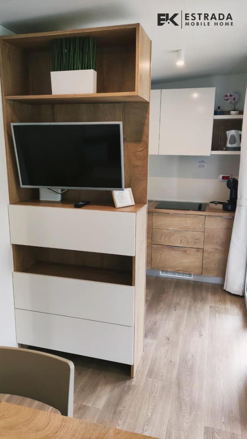 Domek holenderski. This mobile home is air-conditioned and features a seating area with a flat-screen TV, a tea and coffee maker, a dining area, a wardrobe, as well as a barbecue. The unit offers 4 beds. Domek holenderski - 4 osobowy. Powierzchnia pokoju ok.: 32 mkw.