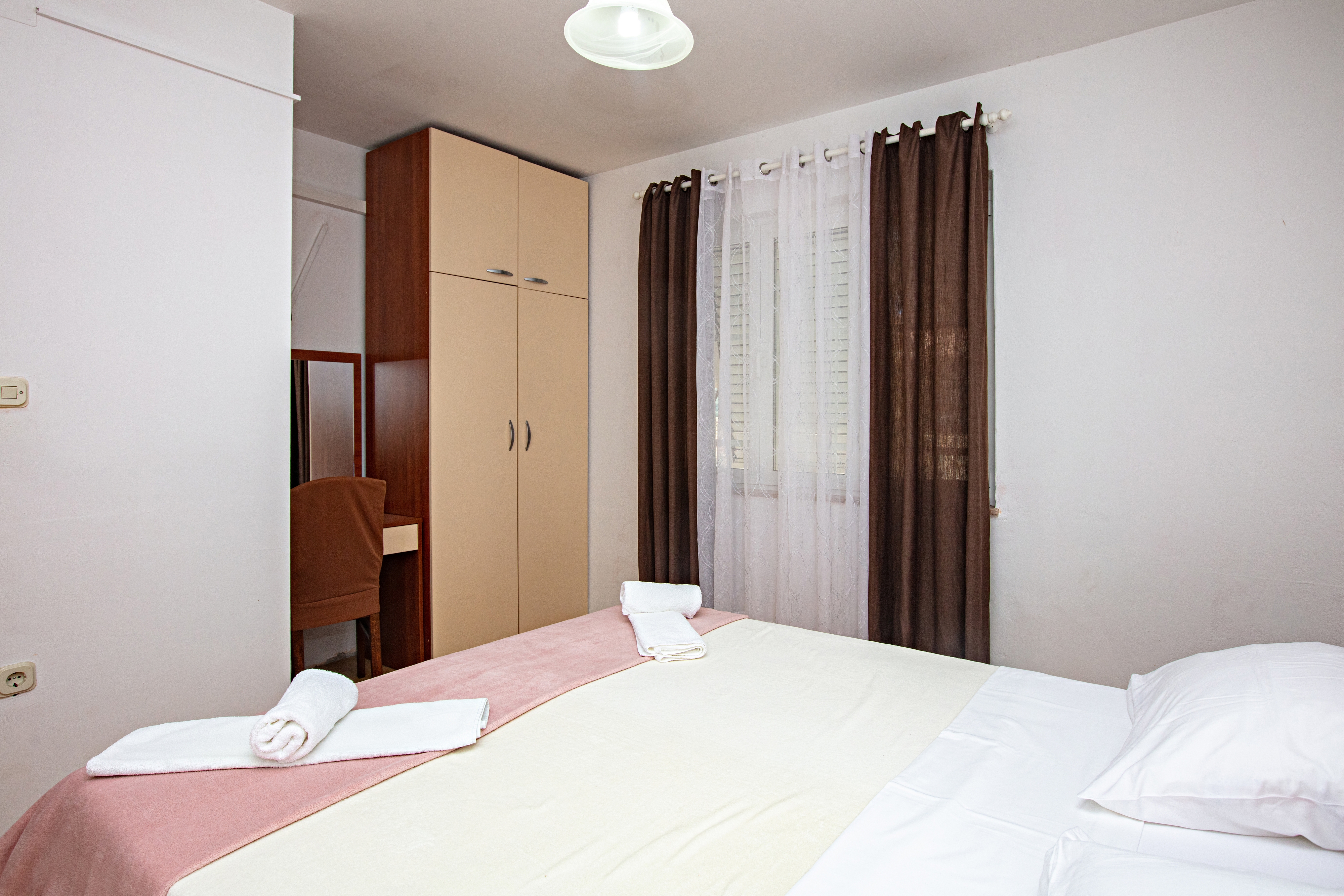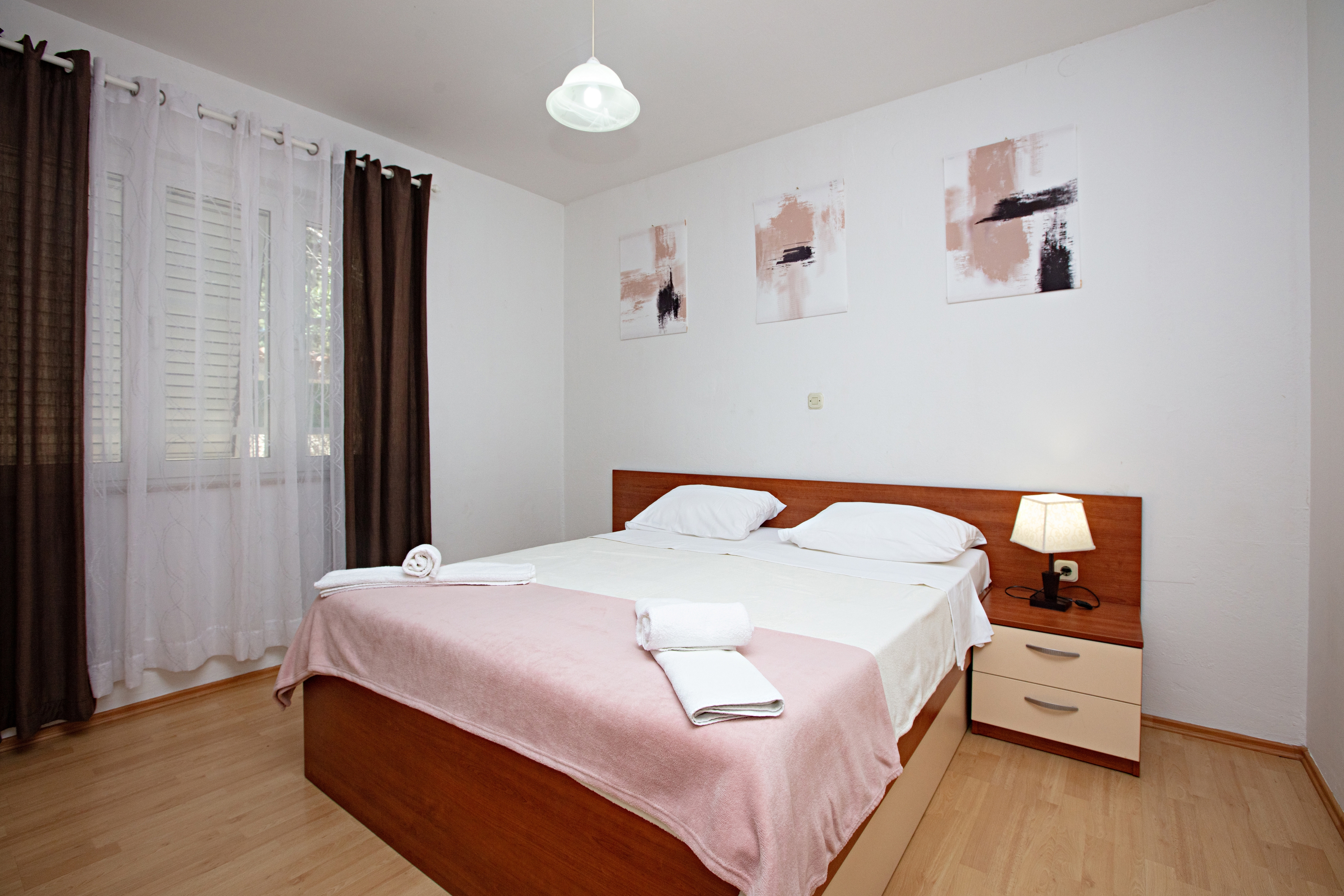 Zakwaterowanie w kwaterach typu Apartament (12) mogą Państwo znaleźć w obiekcie 22375 w miejscowości Pakoštane, Biograd - Północna Dalmacja. Obiekt jest oddalony 250 m od morza i znajduje się w kategorii "Pensjonaty". Plaża najbliższa obiektowi jest żwirowa. W czasie Państwa wakacji w pozostałych apartamentach w tym obiekcie prawdopodobnie będą przebywać inni goście. W czasie Państwa wakacji gospodarze nie będą przebywać w obiekcie. Właściciel nie ma obowiązku przyjąć dodatkowych niezgłoszonych osób ani zwierząt domowych, dlatego też trzeba je wcześniej zgłosić.ZAWARTOŚĆ Podwórko (3000m2, Przestrzeń dla dzieci, Miejsce do siedzenia), Parking (Liczba miejsc parkingowych: 15, Odległość od obiektu: Na podwórku), Grill: wspólny, Śniadanie, HB (śniadanie i kolacja), WiFi Internet LOKALIZACJA I DOSTĘP Obiekt znajduje się przy lokalnej drodze Pomiędzy obiektem i plażą znajduje się lokalna droga Możliwość dojazdu samochodem: Tak Obiekt znajduje się w relatywnie cichej okolicy Obiekt jest częściowo otoczony zielenią ODLEGŁOŚCI Morze: 250 m Plaża: 300 m Centrum: 8 km Sklep: 120 m Apteka: 400 m Kantor: 140 m Bankomat: 140 m Informacje turystyczne: 400 m Lotnisko: 34 km Stacja benzynowa: 2 km Targ: 300 m