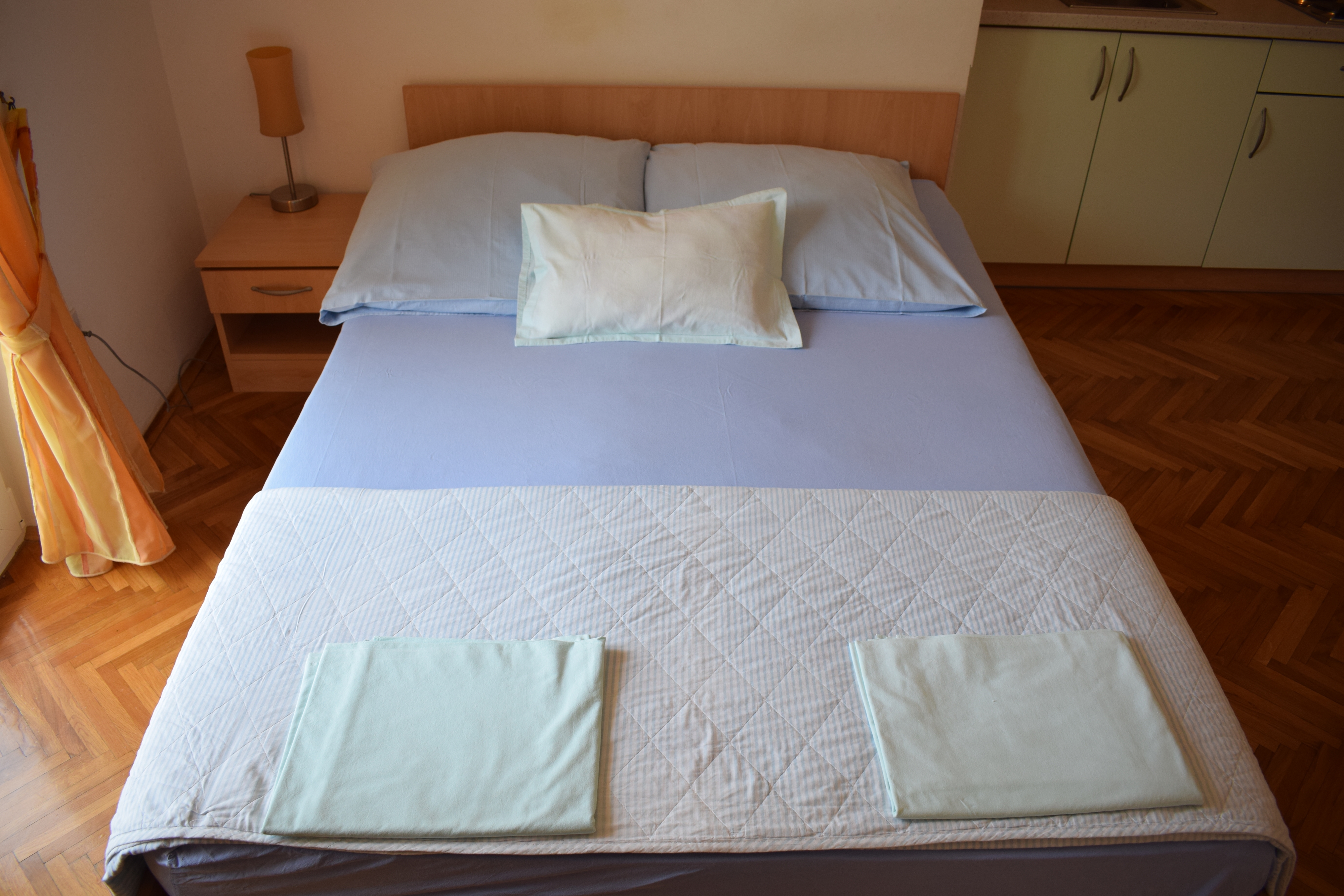 Studio może przyjąć 2 gości. Łóżka znajdują się w sypialniach, których jest 1, na powierzchni 16m2. Goście mają dostęp do balkonu, by korzystać z ciepłych, letnich wieczorów. Możliwość przygotowywania posiłków poprzez korzystanie ze wspólnego grilla. WLICZONE W CENĘ: taksa pobytowa, sprzątanie końcowe, klimatyzacja, internet. OBOWIĄZKOWE KOSZTY DODATKOWE: dopłata za krótki termin (procent dopłaty w zalezności od liczby noclegów: 30% - 1, 20% - 2, 10% - 3). Dostępność dodatkowych usług w rezerwowanym terminie oraz ich cenę (jeśli nie jest podana) należy sprawdzić wcześniej. Za dodatowe usługi, które nie zostały uwzględnione w kalkulacji ceny, płaci się bezpośrednio właścicielowi obiektu, pod warunkiem śe gość korzysta z tych usług. Zniżki od ceny podstawowej: bezpłatny dzień 14=13 (przy pobycie, trwającym co najmniej 14 dni, otrzymujecie jeden bezpłatny dzień na pobyt do 31.12.2026).