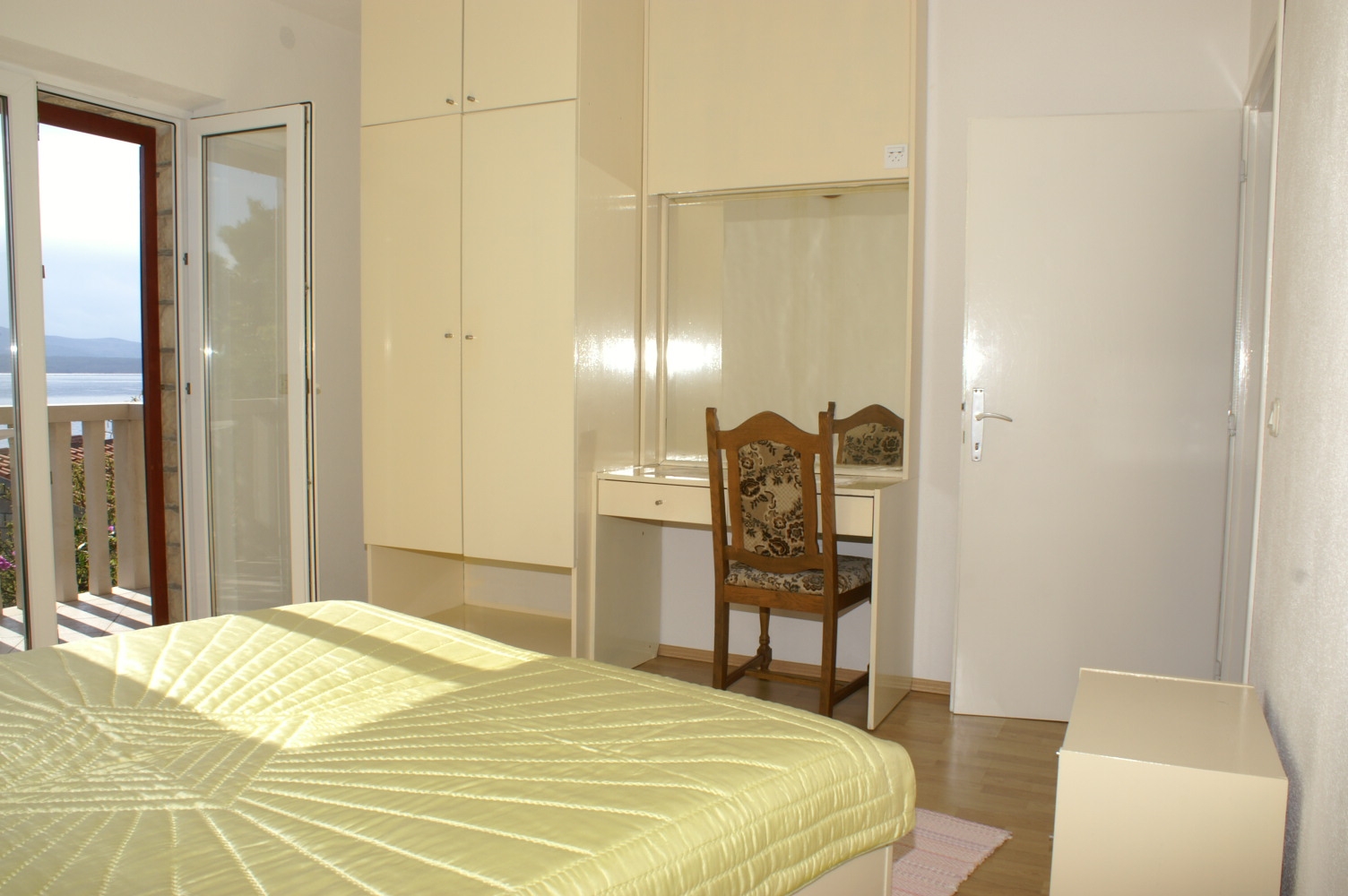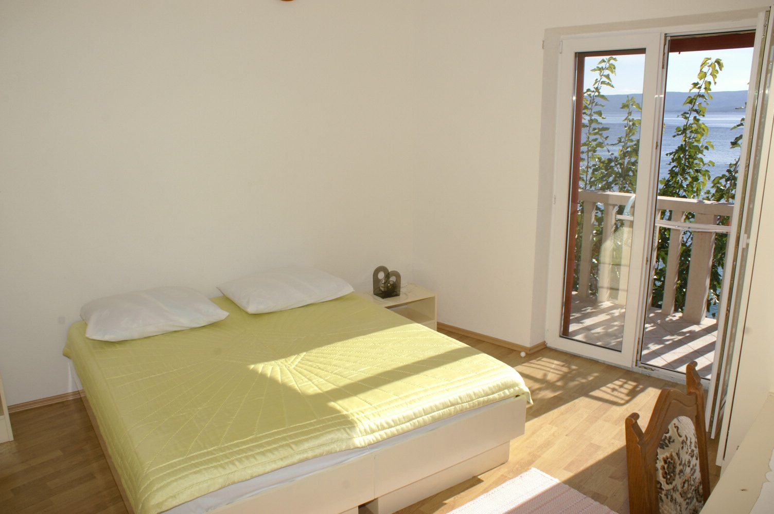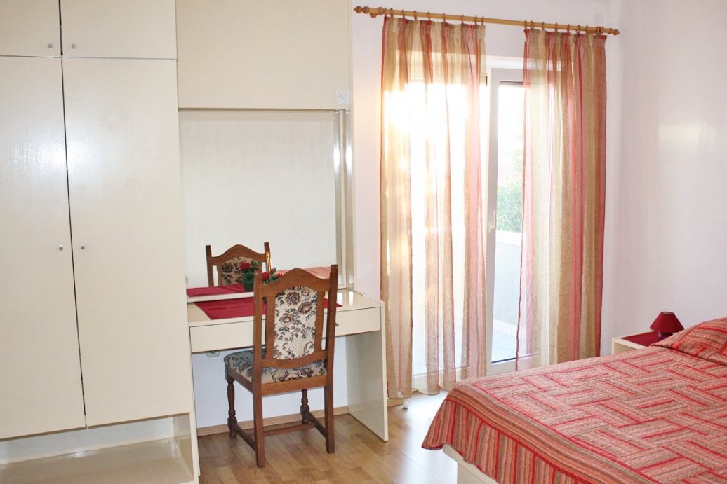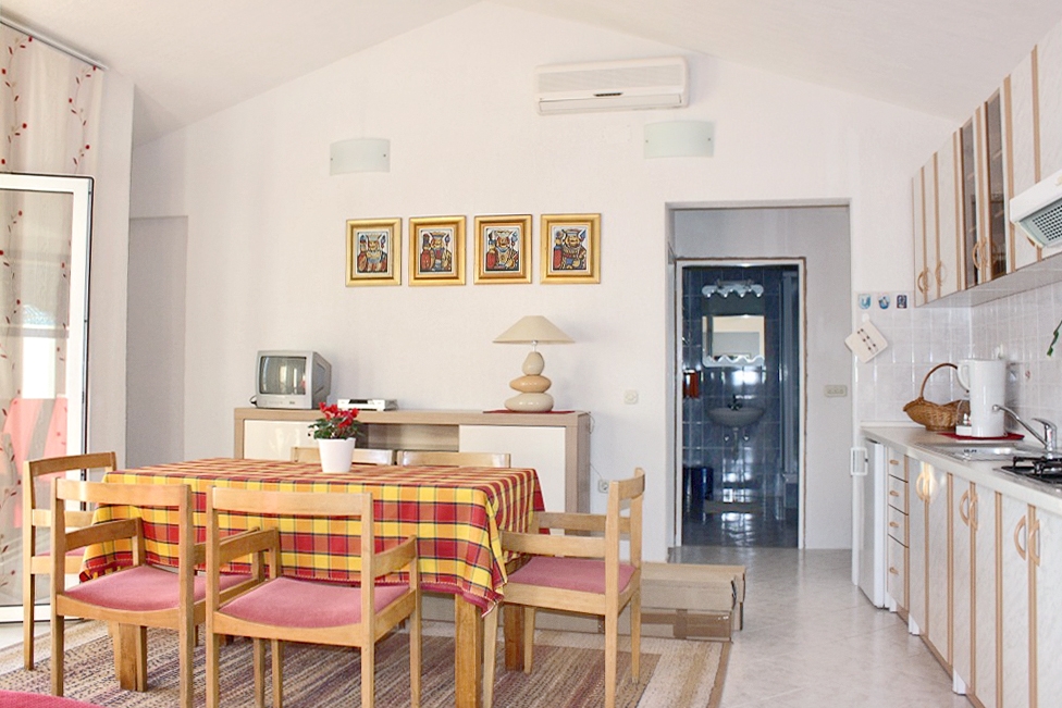 Apartament może przyjąć 4 gości. Łóżka znajdują się w sypialniach, których jest 2, na powierzchni 70m2. Goście mają dostęp do tarasu, by korzystać z ciepłych, letnich wieczorów. Z apartamentu roztacza się widok na morze. WLICZONE W CENĘ: taksa pobytowa, sprzątanie końcowe, klimatyzacja, parking, internet, łóżeczko dziecięce, żelazko, deska do prasowania, suszarka do włosów. OBOWIĄZKOWE KOSZTY DODATKOWE: dopłata za krótki termin (procent dopłaty w zalezności od liczby noclegów: 30% - 1, 20% - 2, 10% - 3). NIEOBOWIĄZKOWE KOSZTY DODATKOWE: łódź (50,00 € za nocleg). Dostępność dodatkowych usług w rezerwowanym terminie oraz ich cenę (jeśli nie jest podana) należy sprawdzić wcześniej. Za dodatowe usługi, które nie zostały uwzględnione w kalkulacji ceny, płaci się bezpośrednio właścicielowi obiektu, pod warunkiem śe gość korzysta z tych usług.