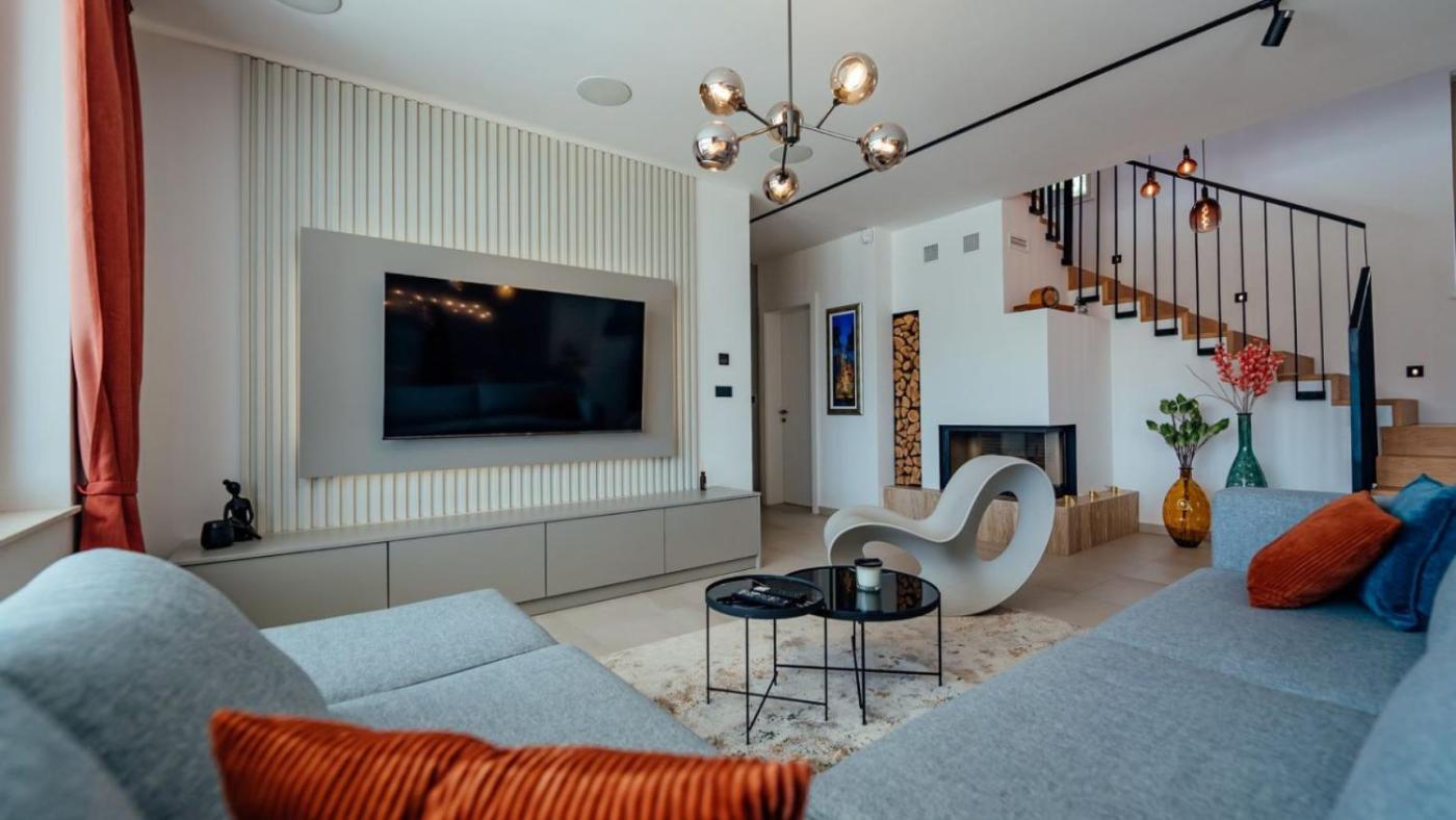 Willa z prywatnym basenem. This villas standout features are the private pool, sauna and fireplace. Boasting 3 bedrooms and 4 bathrooms with a shower, this spacious villa has a well-fitted kitchen and a terrace. Guests will find a refrigerator, a dishwasher, kitchenware and an oven in the well-equipped kitchen. The villa also features a barbecue. The air-conditioned villa offers a TV with satellite channels, a washing machine, a tea and coffee maker, tumble dryer as well as mountain views. The unit offers 3 beds. Willa - 8 osobowy. Powierzchnia pokoju ok.: 200 mkw.