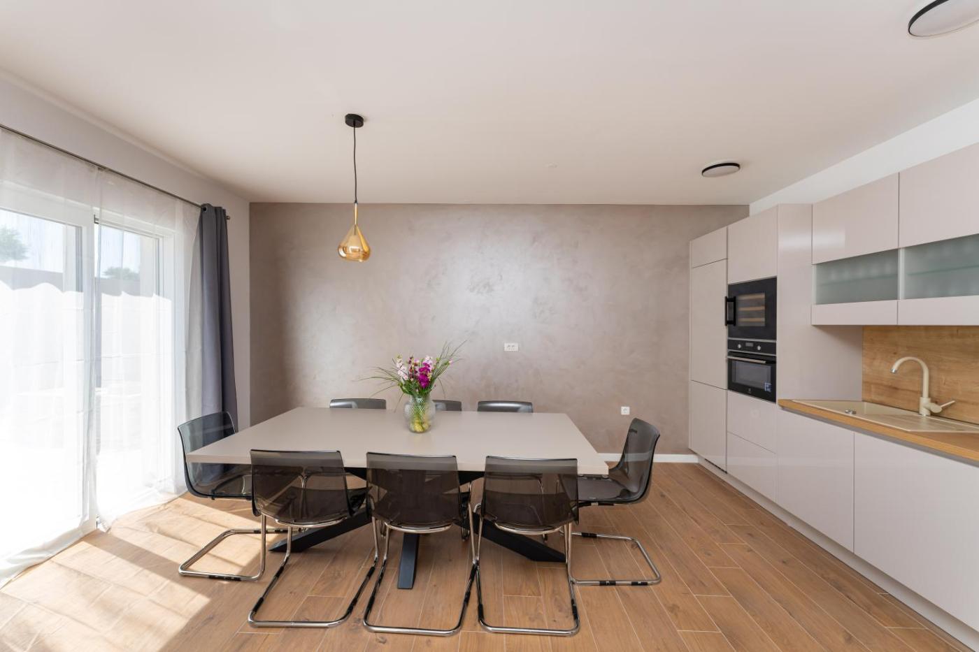 Willa. This villas standout feature is the private pool. The villas kitchen, which has kitchenware, is available for cooking and storing food. Boasting a terrace with garden views, this villa also offers air conditioning and a flat-screen TV. The unit has 5 beds. Willa - 8 osobowy. Powierzchnia pokoju ok.: 250 mkw.