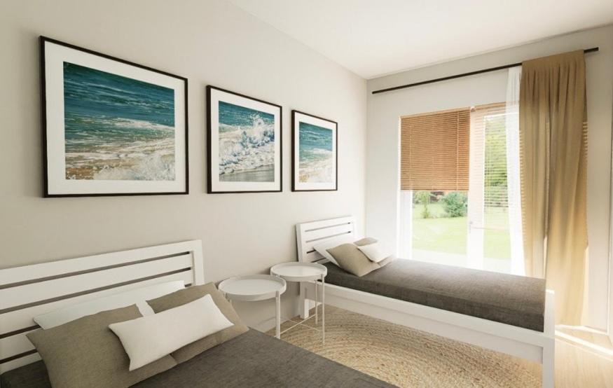 Domek z 3 sypialniami. Guests will have a special experience as the chalet provides a pool with a view. This air-conditioned chalet consists of 1 living room, 3 separate bedrooms and 2 bathrooms with a shower. Meals can be prepared in the kitchen, which is equipped with a stovetop, a refrigerator and kitchenware. The chalet features parquet floors, a seating area with a flat-screen TV, a tea and coffee maker, a dining area as well as sea views. The unit offers 6 beds. Domek - 7 osobowy. Powierzchnia pokoju ok.: 44 mkw.