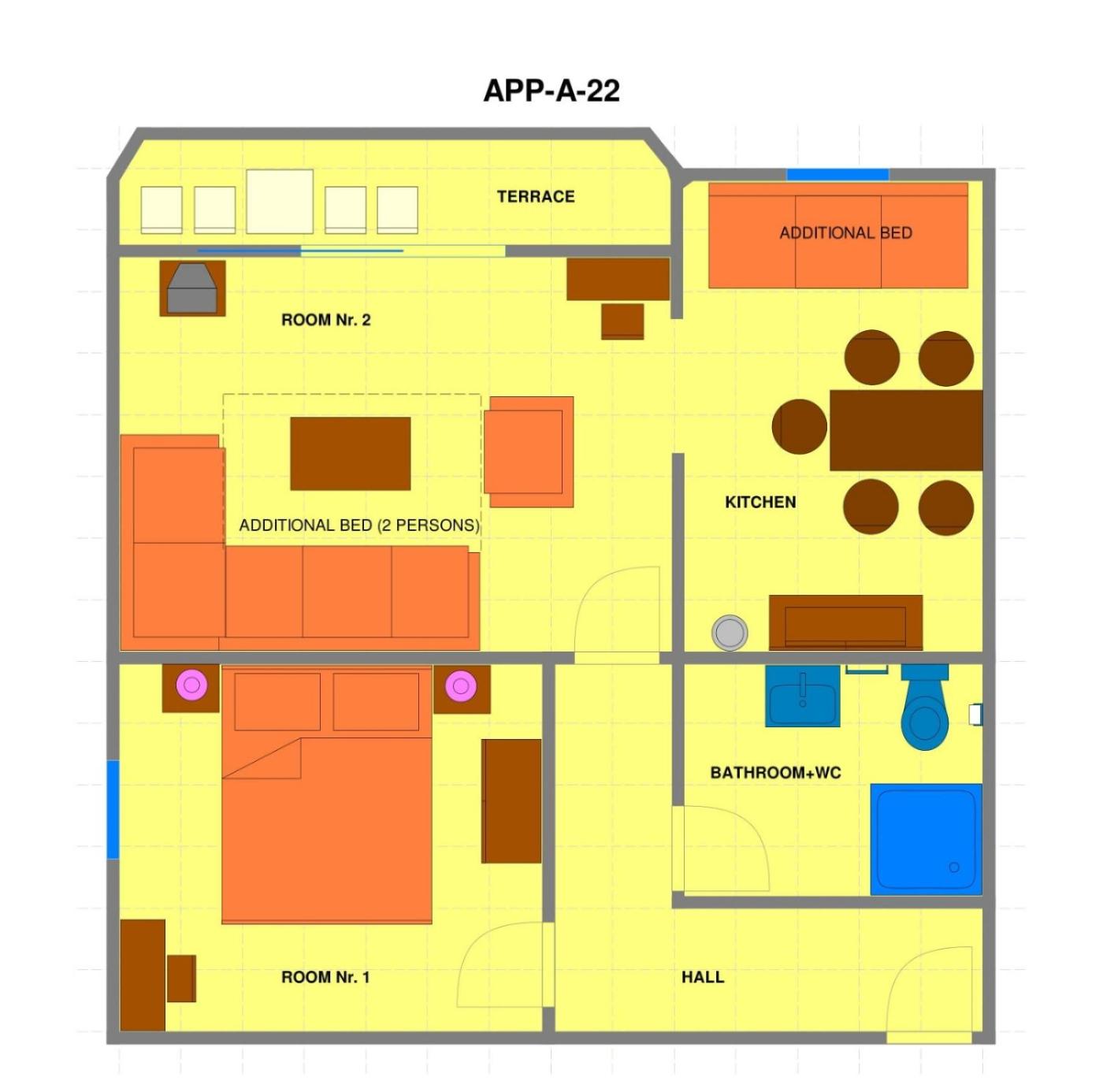 Apartament. This spacious apartment consists of 1 living room, 2 separate bedrooms and 1 bathroom with a shower and a hairdryer. Guests will find a refrigerator and kitchenware in the kitchen. The apartment also offers a barbecue. Featuring a balcony with sea views, this apartment also provides air conditioning and a TV with satellite channels. The unit offers 3 beds. Apartament - 5 osobowy. Powierzchnia pokoju ok.: 65 mkw.