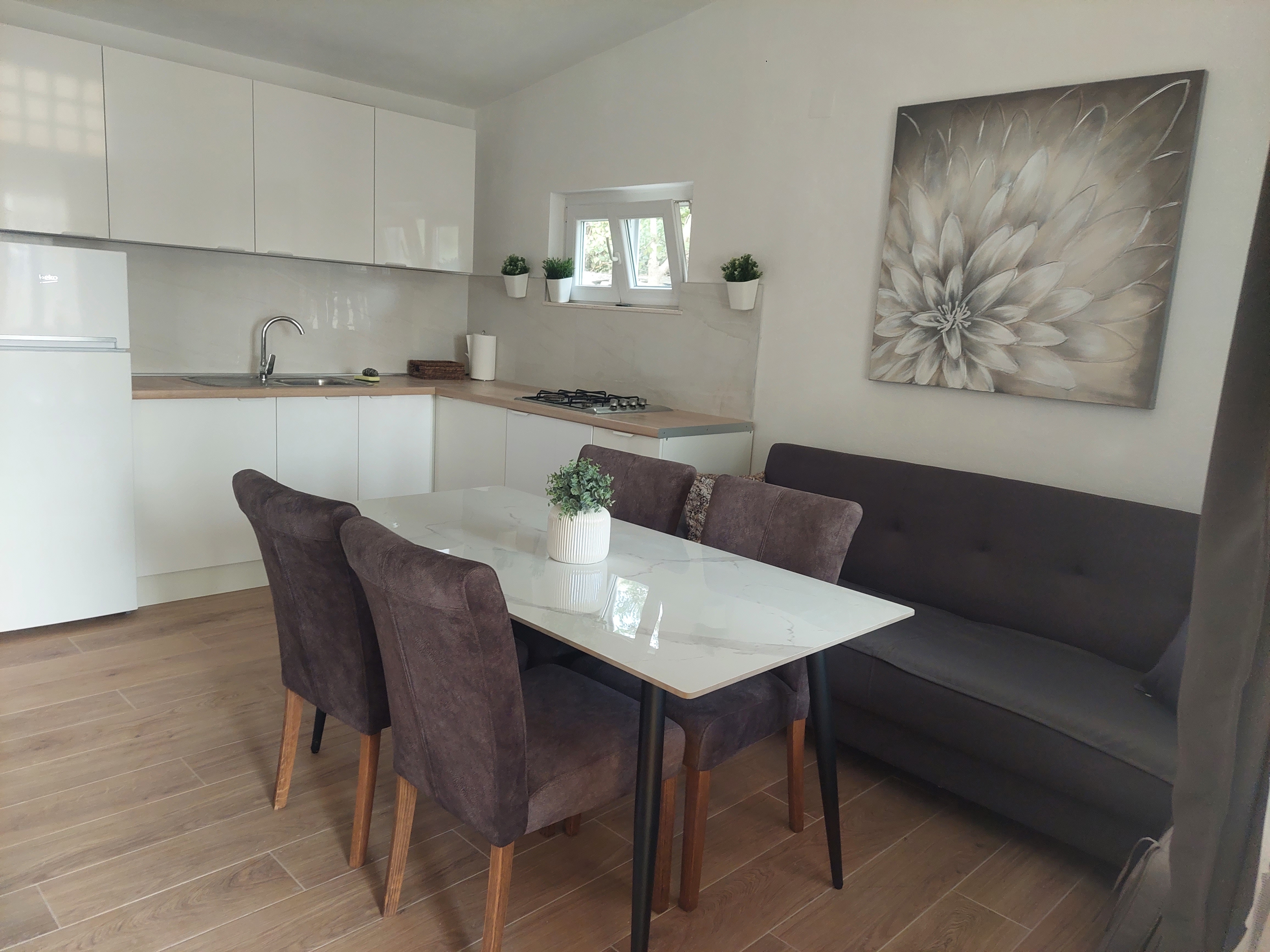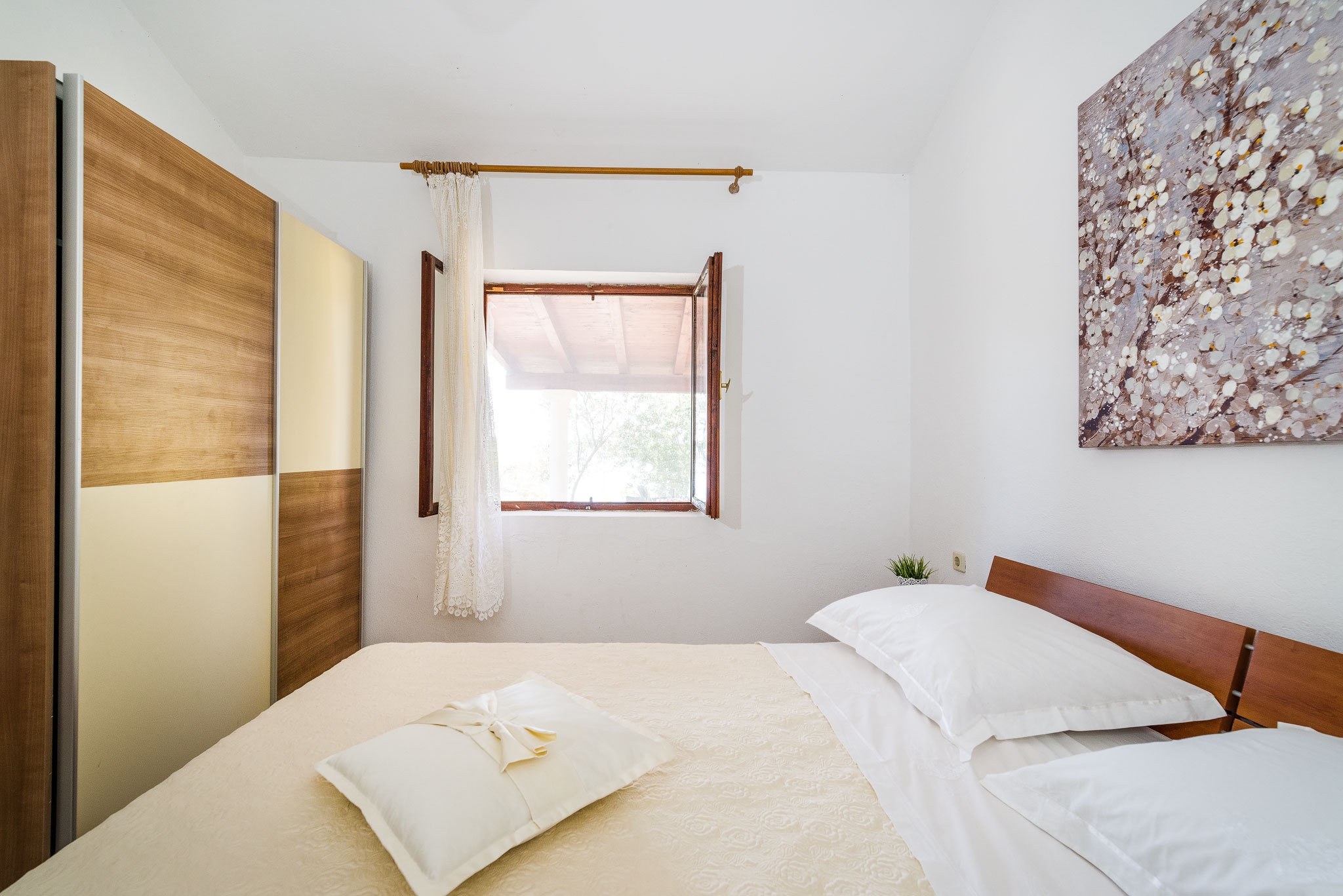 Dom może przyjąć 5 gości. Łóżka znajdują się w sypialniach, których jest 2, oraz w jadalni, na powierzchni 43m2. Goście mają dostęp do tarasu, by korzystać z ciepłych, letnich wieczorów. Z domu wakacyjnego roztacza się widok na morze. Grill jest dostępny tylko do użytku gości z tej kwatery. Do kwatery można przyjechać ze zwierzęciem domowym, a usługa jest wliczona w cenę wynajęcia kwatery. WLICZONE W CENĘ: taksa pobytowa, sprzątanie końcowe, parking, miejsce do cumowania łodzi, zwierzęta domowe, łóżeczko dziecięce, transport do obiektu (łodzią wynajmującego), parasol, leżaki. OBOWIĄZKOWE KOSZTY DODATKOWE: dopłata za krótki termin (procent dopłaty w zalezności od liczby noclegów: 30% - 1, 20% - 2, 10% - 3). NIEOBOWIĄZKOWE KOSZTY DODATKOWE: łódź (30,00 € za nocleg). Dostępność dodatkowych usług w rezerwowanym terminie oraz ich cenę (jeśli nie jest podana) należy sprawdzić wcześniej. Za dodatowe usługi, które nie zostały uwzględnione w kalkulacji ceny, płaci się bezpośrednio właścicielowi obiektu, pod warunkiem śe gość korzysta z tych usług.