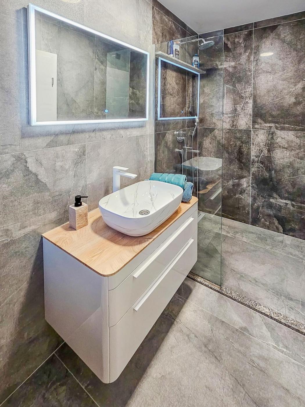 W apartamencie zapewniono kilka sypialni (3), kilka łazienek (2), pościel, ręczniki, jadalnię oraz kuchnię z pełnym wyposażeniem. Do dyspozycji Gości jest także telewizor z płaskim ekranem z dostępem do kanałów satelitarnych oraz taras z widokiem na morze.