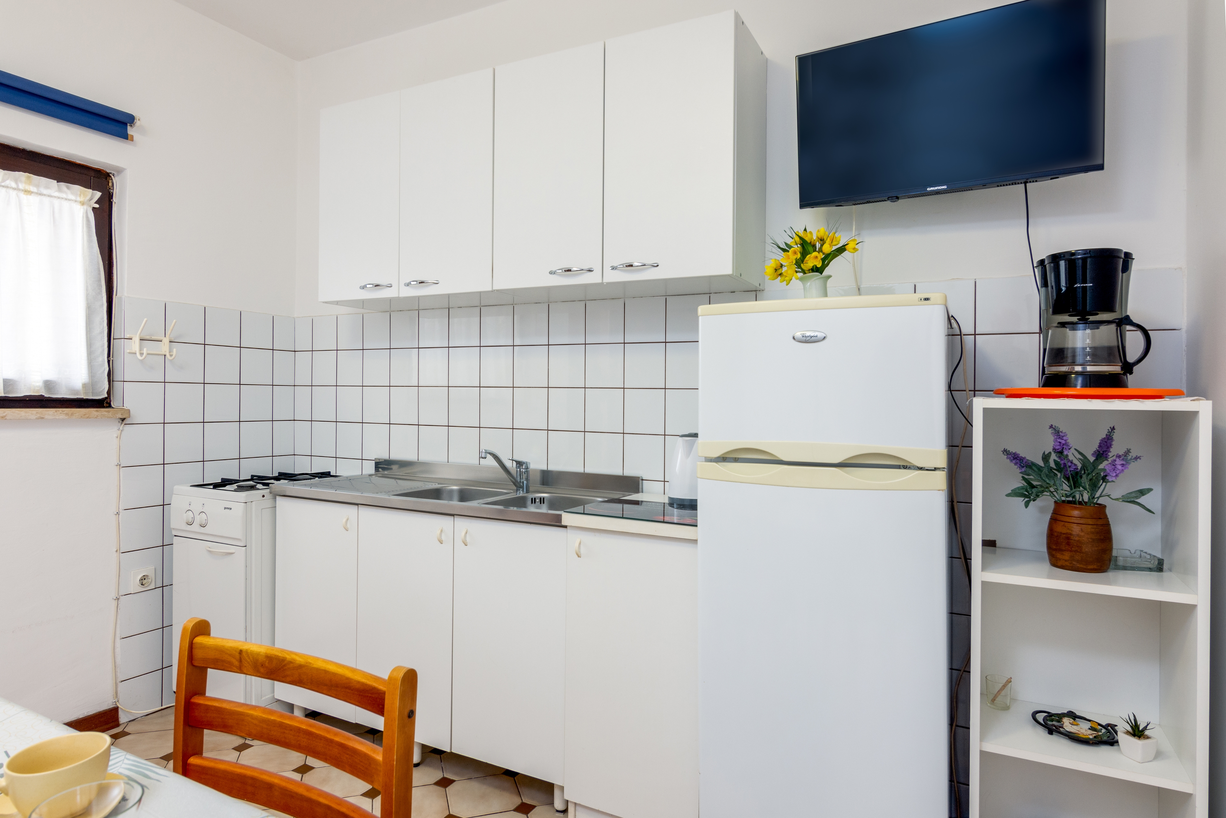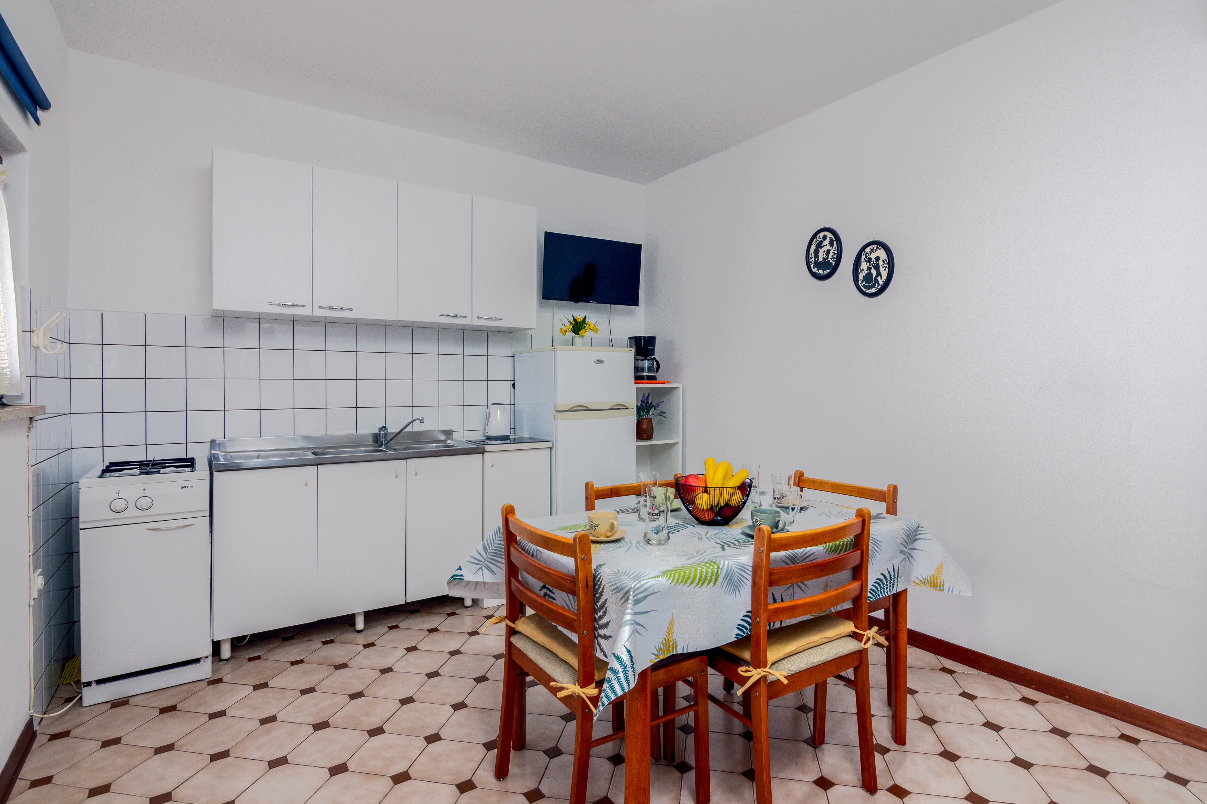 Apartament może przyjąć 4 gości. Łóżka znajdują się w sypialniach, których jest 2, na powierzchni 45m2. Goście mają dostęp do tarasu, by korzystać z ciepłych, letnich wieczorów. Możliwość przygotowywania posiłków poprzez korzystanie ze wspólnego grilla. W trakcie swojego pobytu goście mogą korzystać ze wspólnego basenu. W kwaterze dozwolony jest pobyt zwierzęcia domowego, za dopłatą. Przez taras rezerwowanej kwatery przechodzą także inni goście lub gospodarze. WLICZONE W CENĘ: taksa pobytowa, sprzątanie końcowe, basen, parking, internet, łóżeczko dziecięce, żelazko, deska do prasowania, suszarka do włosów. OBOWIĄZKOWE KOSZTY DODATKOWE: dopłata za krótki termin (procent dopłaty w zalezności od liczby noclegów: 30% - 1, 20% - 2, 10% - 3). NIEOBOWIĄZKOWE KOSZTY DODATKOWE: klimatyzacja (5,00 € za nocleg), pranie bielizny (10,00 € pranie), zwierzęta domowe (10,00 € za nocleg). Dostępność dodatkowych usług w rezerwowanym terminie oraz ich cenę (jeśli nie jest podana) należy sprawdzić wcześniej. Za dodatowe usługi, które nie zostały uwzględnione w kalkulacji ceny, płaci się bezpośrednio właścicielowi obiektu, pod warunkiem śe gość korzysta z tych usług.