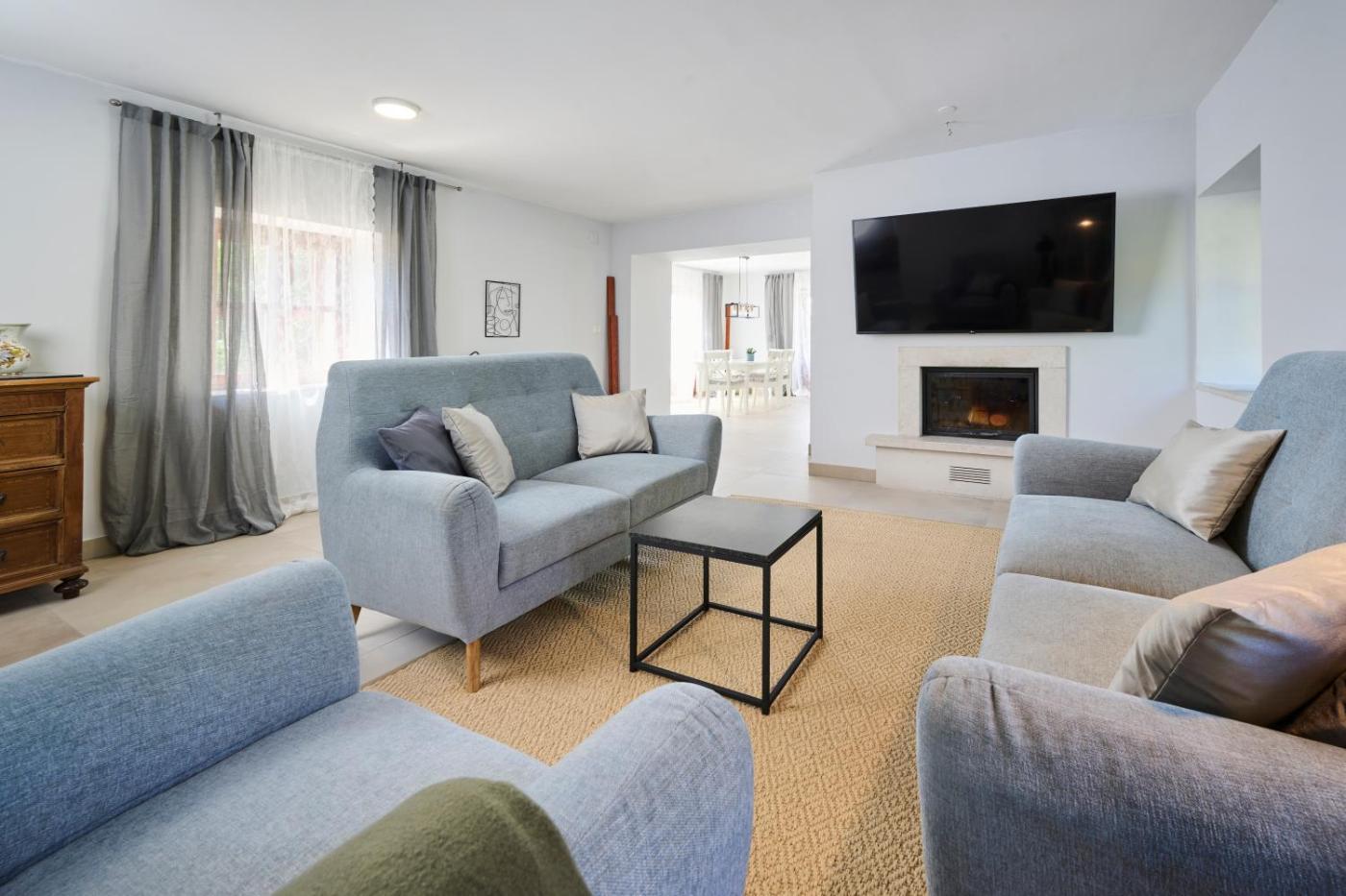 Willa z widokiem na ogród. The fireplace is the standout feature of this villa. This spacious villa features 1 living room, 2 separate bedrooms and 2 bathrooms with a walk-in shower and free toiletries. Guests will find a stovetop, a refrigerator, a dishwasher and kitchenware in the fully equipped kitchen. The villa also comes with a barbecue. The air-conditioned villa features a flat-screen TV with streaming services, a washing machine, a private entrance, soundproof walls as well as garden views. The unit has 4 beds. Willa - 4 osobowy. Powierzchnia pokoju ok.: 200 mkw.