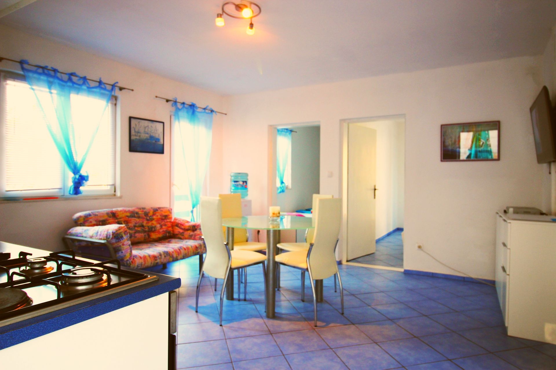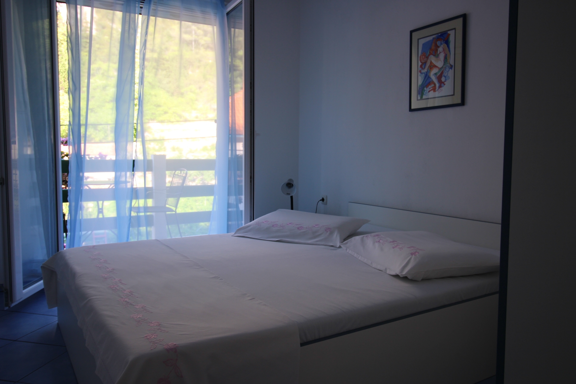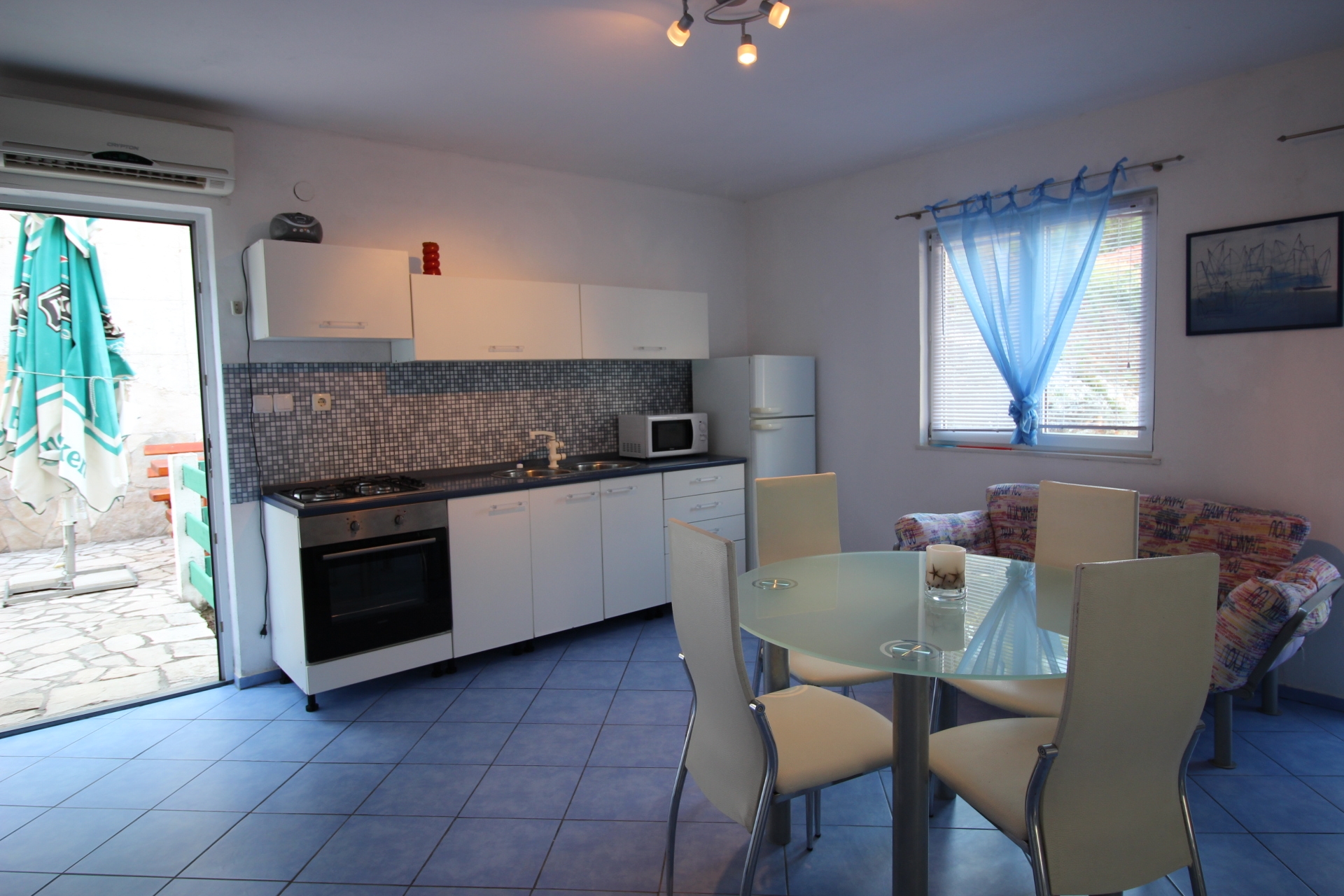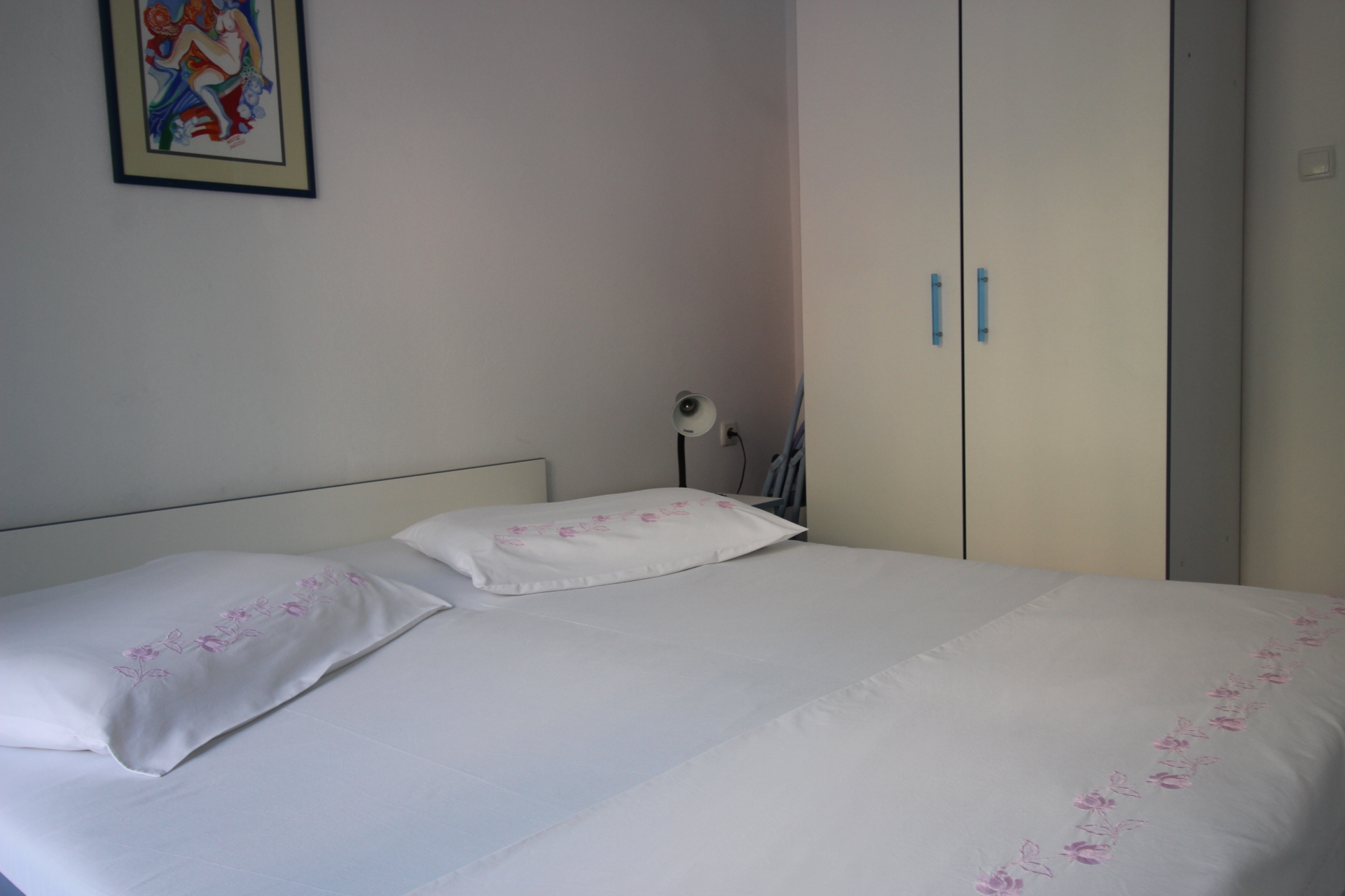 Apartament może przyjąć 4 gości. Łóżka znajdują się w sypialniach, których jest 2, na powierzchni 41m2. Goście mają dostęp do balkonu, by korzystać z ciepłych, letnich wieczorów. Z apartamentu roztacza się widok na morze. Grill jest dostępny tylko do użytku gości z tej kwatery. W kwaterze dozwolony jest pobyt zwierzęcia domowego, za dopłatą. Rezerwowana kwatera ma taras wspólny z inną kwaterą. WLICZONE W CENĘ: taksa pobytowa, sprzątanie końcowe, klimatyzacja, parking, internet, żelazko, suszarka do włosów. NIEOBOWIĄZKOWE KOSZTY DODATKOWE: pranie bielizny (10,00 € pranie), zwierzęta domowe (10,00 € za nocleg), dostawka (10,00 € za nocleg). Dostępność dodatkowych usług w rezerwowanym terminie oraz ich cenę (jeśli nie jest podana) należy sprawdzić wcześniej. Za dodatowe usługi, które nie zostały uwzględnione w kalkulacji ceny, płaci się bezpośrednio właścicielowi obiektu, pod warunkiem śe gość korzysta z tych usług. Zniżki od ceny podstawowej: bezpłatny dzień 21=19 (przy pobycie, trwającym co najmniej 21 dni, trzymujecie dwa bezpłatne dni na pobyt do 31.12.2026).