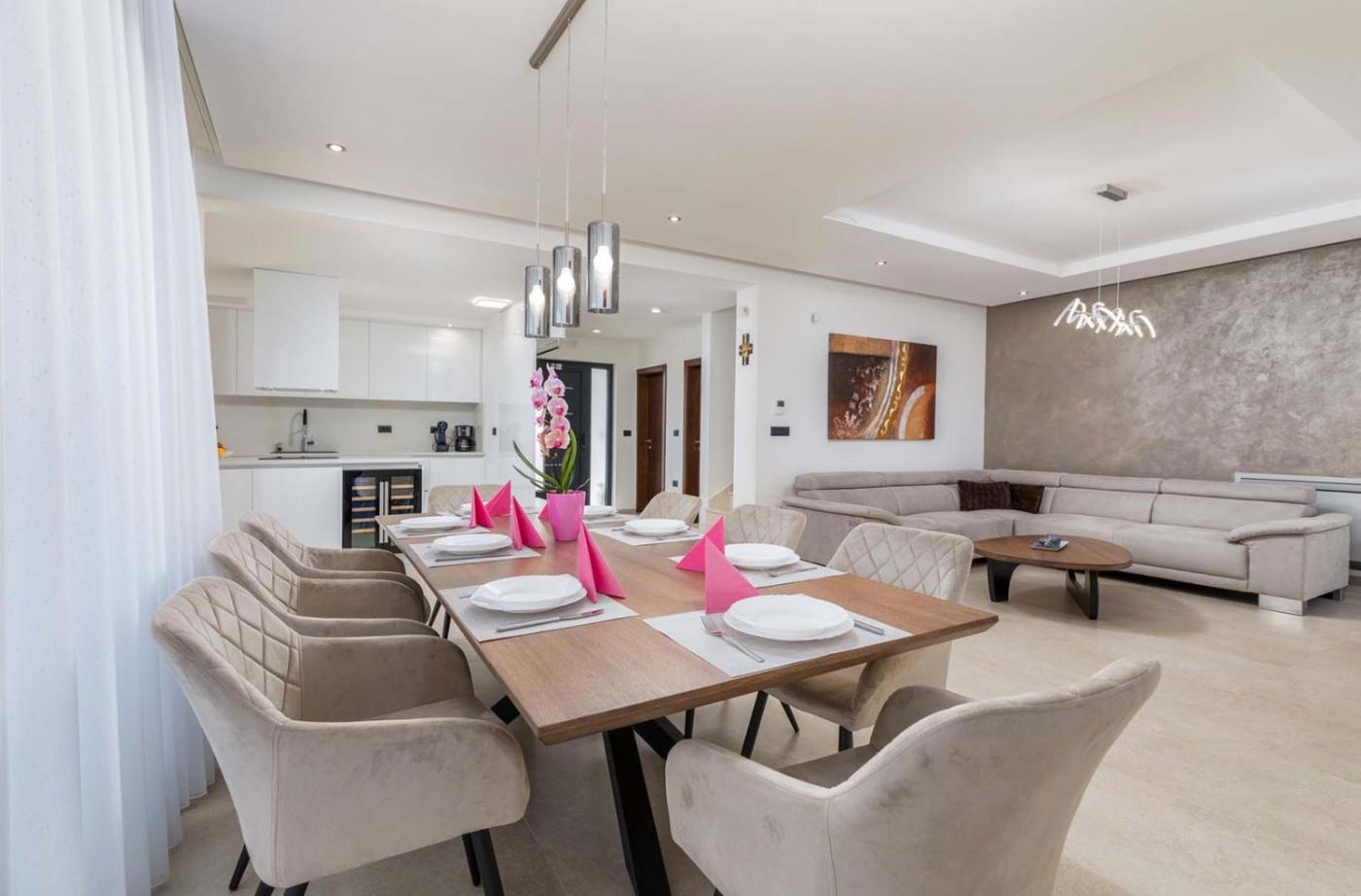W willi z 4 sypialniami zapewniono salon z telewizorem z dostępem do kanałów satelitarnych, kuchnię z pełnym wyposażeniem, w tym lodówką i zmywarką, a także kilka łazienek (5) z prysznicem. W willi zapewniono ręczniki i pościel.