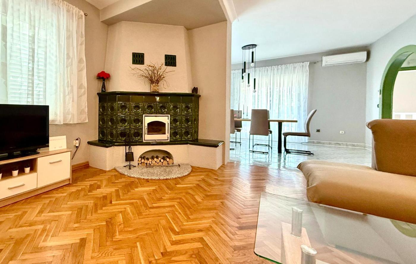 Apartament z 3 sypialniami. The private pool is a top feature of this apartment. Boasting a private entrance, this air-conditioned apartment comes with 1 living room, 3 separate bedrooms and 1 bathroom with a bath and a shower. In the well-equipped kitchen, guests will find a stovetop, a refrigerator, a dishwasher and kitchenware. The spacious apartment features a washing machine, a tea and coffee maker, a dining area, a barbecue, as well as a TV. The unit has 3 beds and 2 futons. Apartament - 7 osobowy. Powierzchnia pokoju ok.: 120 mkw.