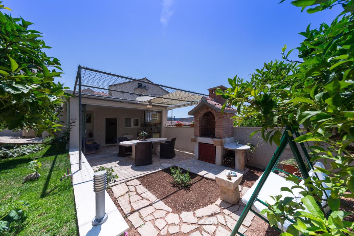 Apartament typu Studio z tarasem. Featuring a furnished terrace with a hot tub and spacious garden with barbecue facilities, this studio also has an open space kitchen with a dining area and a sofa. It is equipped with air conditioning, satellite TV, and a safety box. Studio - 2 osobowy. Powierzchnia pokoju ok.: 40 mkw.