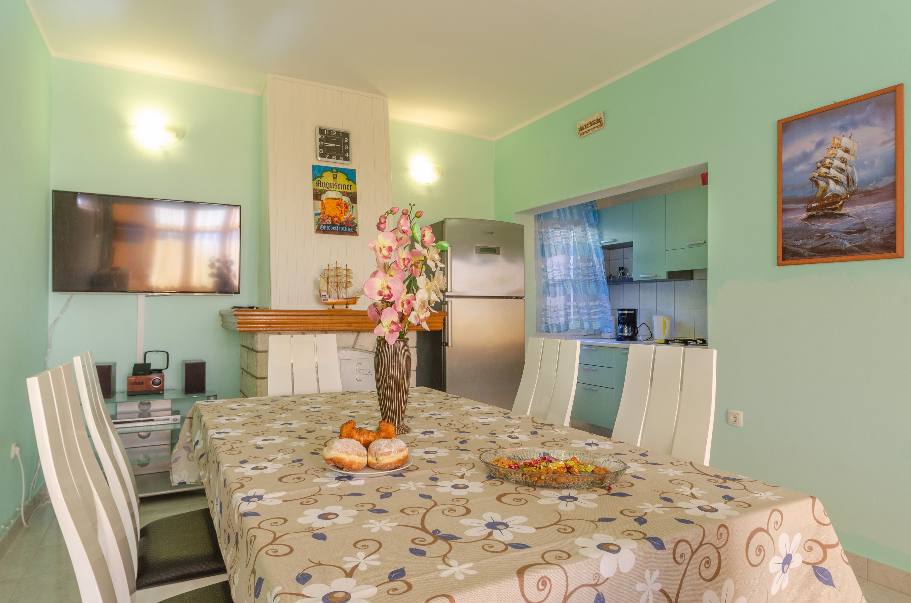 Dom może przyjąć 9 gości. Łóżka znajdują się w sypialniach, których jest 4, na powierzchni 115m2. Goście mają dostęp do tarasu, by korzystać z ciepłych, letnich wieczorów. Z domu wakacyjnego roztacza się widok na morze. Grill jest dostępny tylko do użytku gości z tej kwatery. W trakcie swojego pobytu goście mogą zrelakswować się w prywatnym basenie. W kwaterze dozwolony jest pobyt zwierzęcia domowego, za dopłatą. WLICZONE W CENĘ: taksa pobytowa, sprzątanie końcowe, klimatyzacja, basen, parking, internet, miejsce do cumowania łodzi, łóżeczko dziecięce, żelazko, deska do prasowania, suszarka do włosów, leżaki. OBOWIĄZKOWE KOSZTY DODATKOWE: dopłata za krótki termin (procent dopłaty w zalezności od liczby noclegów: 30% - 1, 20% - 2, 10% - 3). NIEOBOWIĄZKOWE KOSZTY DODATKOWE: zwierzęta domowe (5,00 € za nocleg). Dostępność dodatkowych usług w rezerwowanym terminie oraz ich cenę (jeśli nie jest podana) należy sprawdzić wcześniej. Za dodatowe usługi, które nie zostały uwzględnione w kalkulacji ceny, płaci się bezpośrednio właścicielowi obiektu, pod warunkiem śe gość korzysta z tych usług. Zniżki od ceny podstawowej: bezpłatny dzień 28=25 (na pobyt na 28 dni lub więcej otrzymują Państwo 3 dni gratis na pobyt do 31.12.2026).