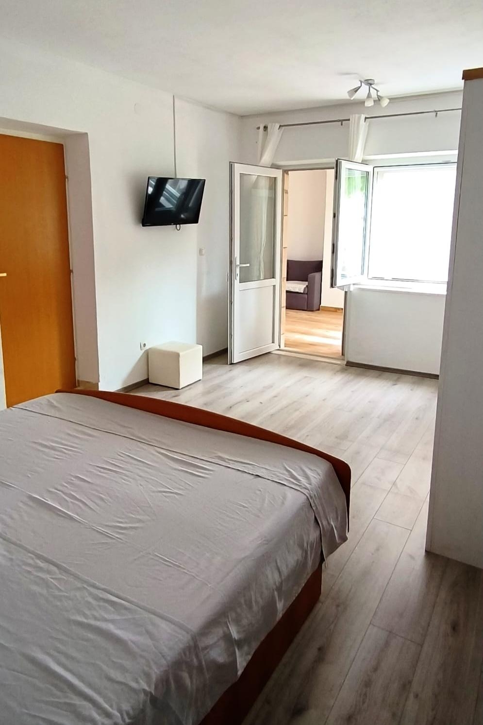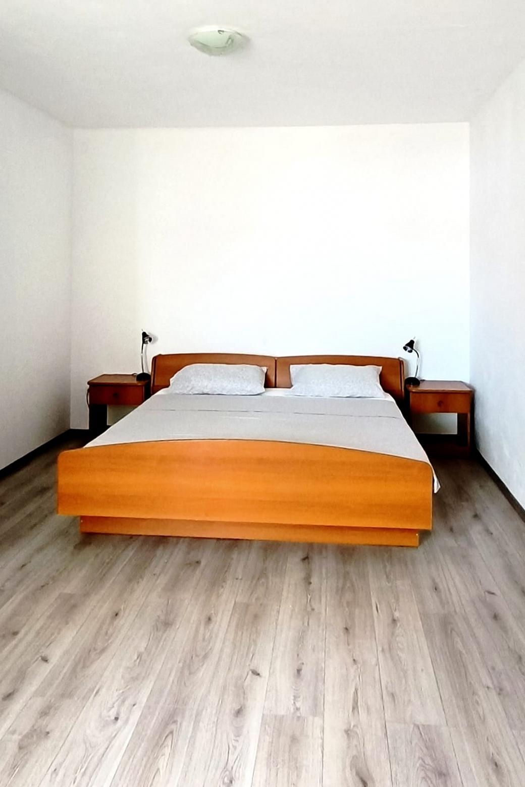 Apartament może przyjąć 4 gości. Łóżka znajdują się w sypialniach, których jest 1, oraz w jadalni, na powierzchni 26m2. Goście mają dostęp do tarasu, by korzystać z ciepłych, letnich wieczorów. Z apartamentu roztacza się widok na morze. Możliwość przygotowywania posiłków poprzez korzystanie ze wspólnego grilla. WLICZONE W CENĘ: taksa pobytowa, sprzątanie końcowe, parking, internet, miejsce do cumowania łodzi, łóżeczko dziecięce, żelazko, suszarka do włosów, przenośny grill. OBOWIĄZKOWE KOSZTY DODATKOWE: dopłata za krótki termin (procent dopłaty w zalezności od liczby noclegów: 30% - 1, 20% - 2, 10% - 3). NIEOBOWIĄZKOWE KOSZTY DODATKOWE: pranie bielizny (6,00 € pranie). Dostępność dodatkowych usług w rezerwowanym terminie oraz ich cenę (jeśli nie jest podana) należy sprawdzić wcześniej. Za dodatowe usługi, które nie zostały uwzględnione w kalkulacji ceny, płaci się bezpośrednio właścicielowi obiektu, pod warunkiem śe gość korzysta z tych usług.