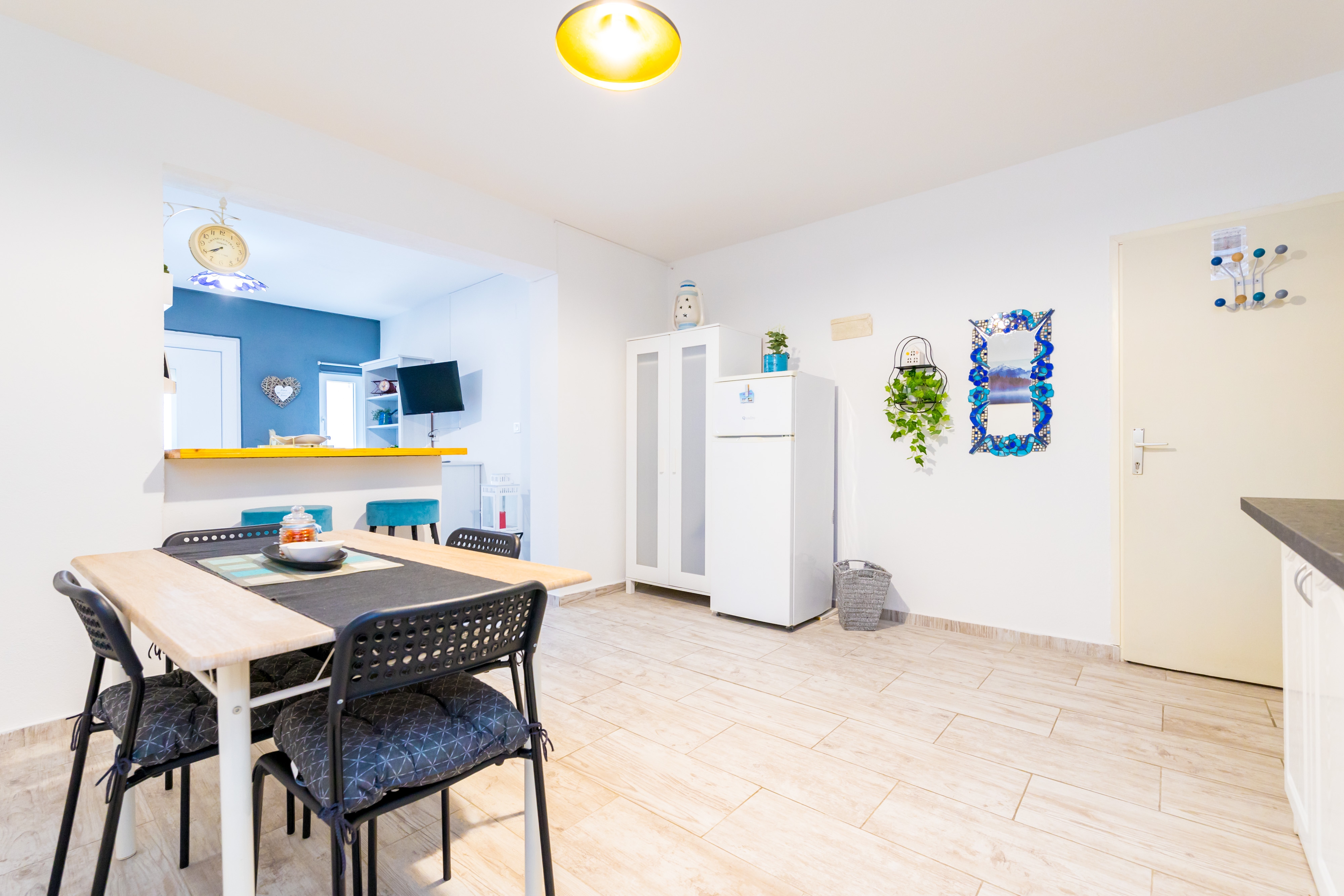 Apartament może przyjąć 4 gości. Łóżka znajdują się w sypialniach, których jest 1, oraz w pokoju dziennym, na powierzchni 36m2. Goście mają dostęp do tarasu, by korzystać z ciepłych, letnich wieczorów. Grill jest dostępny tylko do użytku gości z tej kwatery. W kwaterze dozwolony jest pobyt zwierzęcia domowego, za dopłatą. WLICZONE W CENĘ: taksa pobytowa, sprzątanie końcowe, klimatyzacja, parking, internet. OBOWIĄZKOWE KOSZTY DODATKOWE: dopłata za krótki termin (procent dopłaty w zalezności od liczby noclegów: 30% - 1, 20% - 2, 10% - 3). NIEOBOWIĄZKOWE KOSZTY DODATKOWE: zwierzęta domowe (17,00 € za nocleg). Dostępność dodatkowych usług w rezerwowanym terminie oraz ich cenę (jeśli nie jest podana) należy sprawdzić wcześniej. Za dodatowe usługi, które nie zostały uwzględnione w kalkulacji ceny, płaci się bezpośrednio właścicielowi obiektu, pod warunkiem śe gość korzysta z tych usług.