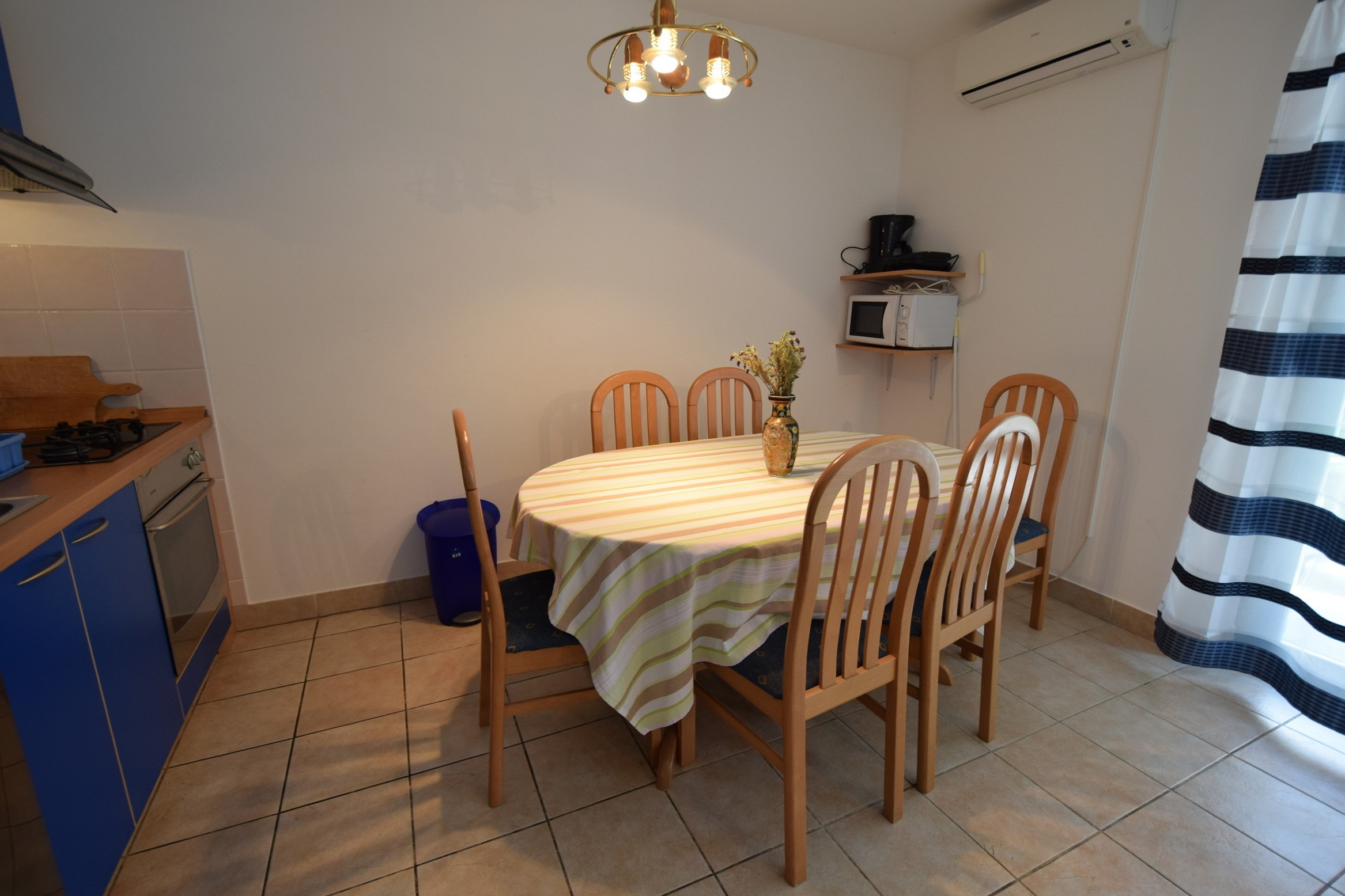 Apartament może przyjąć 4 gości. Łóżka znajdują się w sypialniach, których jest 1, oraz w pokoju dziennym, na powierzchni 43m2. Goście mają dostęp do tarasu, by korzystać z ciepłych, letnich wieczorów. W kwaterze dozwolony jest pobyt zwierzęcia domowego, za dopłatą. WLICZONE W CENĘ: taksa pobytowa, sprzątanie końcowe, klimatyzacja, parking, internet. OBOWIĄZKOWE KOSZTY DODATKOWE: dopłata za krótki termin (procent dopłaty w zalezności od liczby noclegów: 30% - 1, 20% - 2, 10% - 3). NIEOBOWIĄZKOWE KOSZTY DODATKOWE: zwierzęta domowe (5,00 € za nocleg). Dostępność dodatkowych usług w rezerwowanym terminie oraz ich cenę (jeśli nie jest podana) należy sprawdzić wcześniej. Za dodatowe usługi, które nie zostały uwzględnione w kalkulacji ceny, płaci się bezpośrednio właścicielowi obiektu, pod warunkiem śe gość korzysta z tych usług.