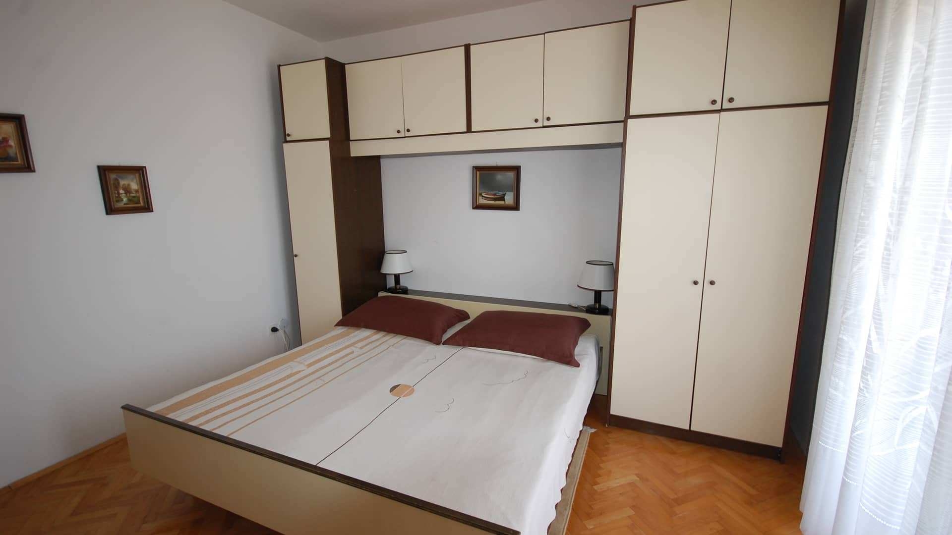Apartament może przyjąć 6 gości. Łóżka znajdują się w sypialniach, których jest 3, na powierzchni 62m2. Goście mają dostęp do tarasu, by korzystać z ciepłych, letnich wieczorów. Możliwość przygotowywania posiłków poprzez korzystanie ze wspólnego grilla. W kwaterze dozwolony jest pobyt zwierzęcia domowego, za dopłatą. WLICZONE W CENĘ: taksa pobytowa, sprzątanie końcowe, klimatyzacja, parking, internet. NIEOBOWIĄZKOWE KOSZTY DODATKOWE: zwierzęta domowe (7,00 € za nocleg). Dostępność dodatkowych usług w rezerwowanym terminie oraz ich cenę (jeśli nie jest podana) należy sprawdzić wcześniej. Za dodatowe usługi, które nie zostały uwzględnione w kalkulacji ceny, płaci się bezpośrednio właścicielowi obiektu, pod warunkiem śe gość korzysta z tych usług.