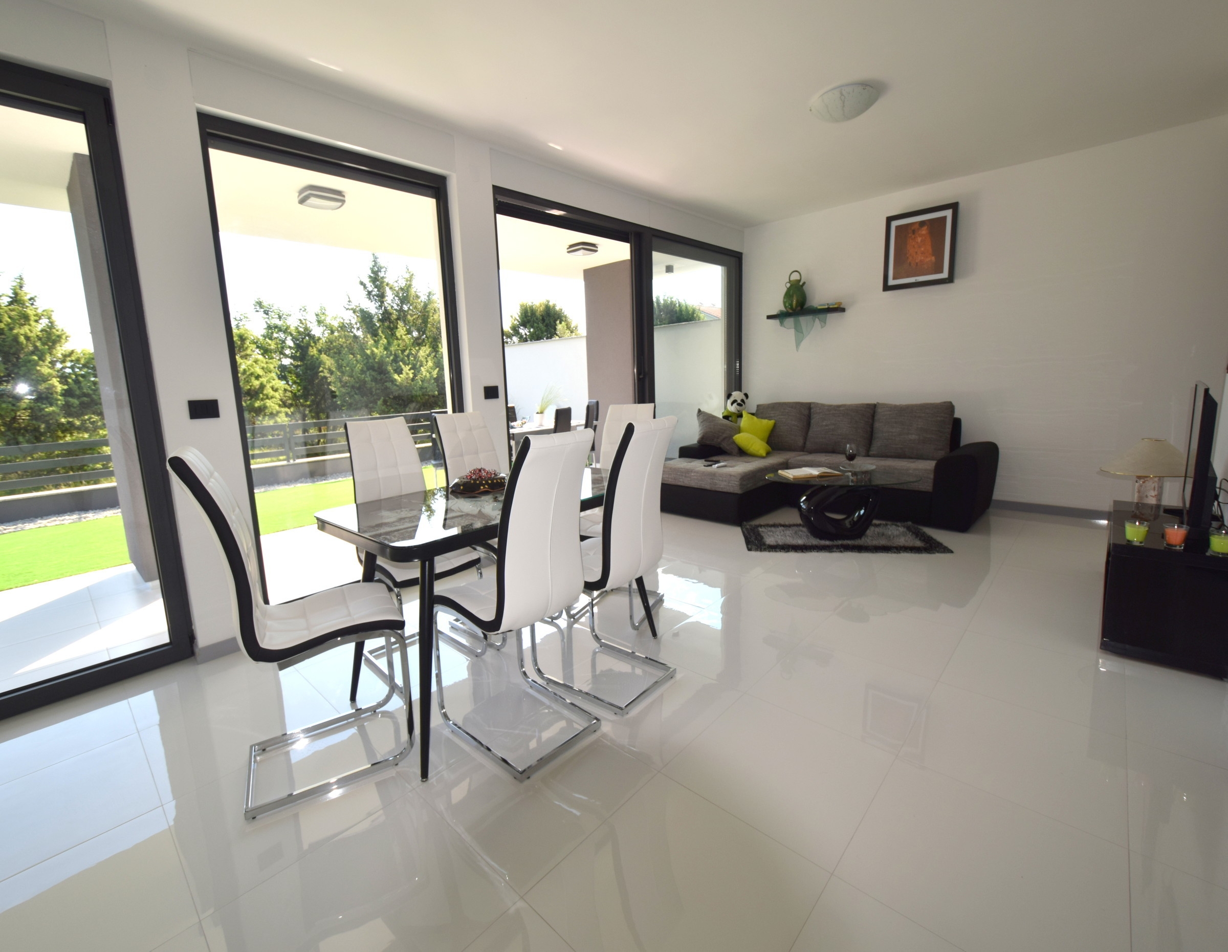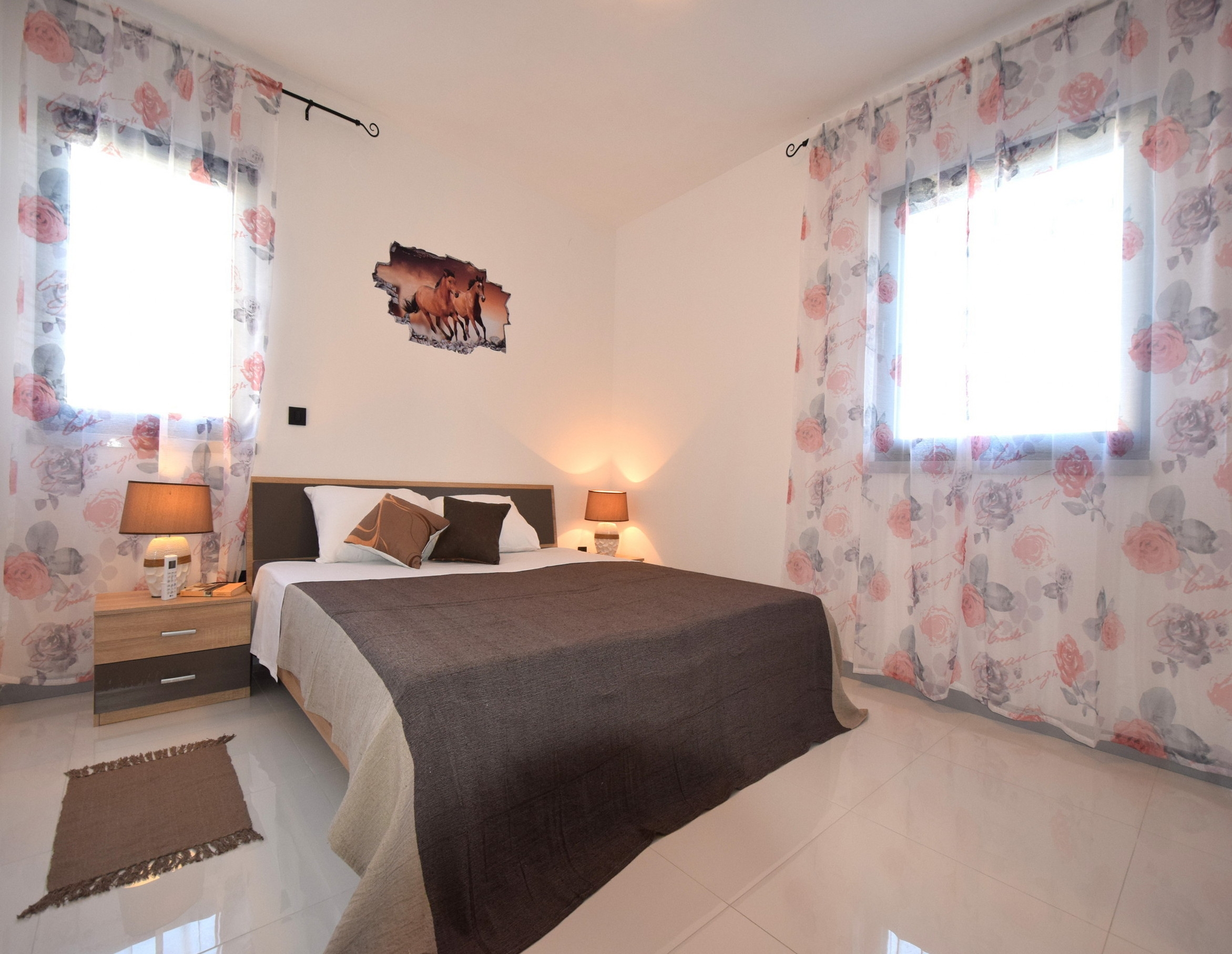Apartament może przyjąć 5 gości. Łóżka znajdują się w sypialniach, których jest 2, oraz w pokoju dziennym, na powierzchni 80m2. Goście mają dostęp do tarasu, by korzystać z ciepłych, letnich wieczorów. Grill jest dostępny tylko do użytku gości z tej kwatery. W kwaterze dozwolony jest pobyt zwierzęcia domowego, za dopłatą. WLICZONE W CENĘ: taksa pobytowa, sprzątanie końcowe, klimatyzacja, parking, internet, żelazko, deska do prasowania, suszarka do włosów, przenośny grill. OBOWIĄZKOWE KOSZTY DODATKOWE: dopłata za krótki termin (procent dopłaty w zalezności od liczby noclegów: 30% - 1, 20% - 2, 10% - 3). NIEOBOWIĄZKOWE KOSZTY DODATKOWE: zwierzęta domowe (15,00 € za nocleg). Dostępność dodatkowych usług w rezerwowanym terminie oraz ich cenę (jeśli nie jest podana) należy sprawdzić wcześniej. Za dodatowe usługi, które nie zostały uwzględnione w kalkulacji ceny, płaci się bezpośrednio właścicielowi obiektu, pod warunkiem śe gość korzysta z tych usług.