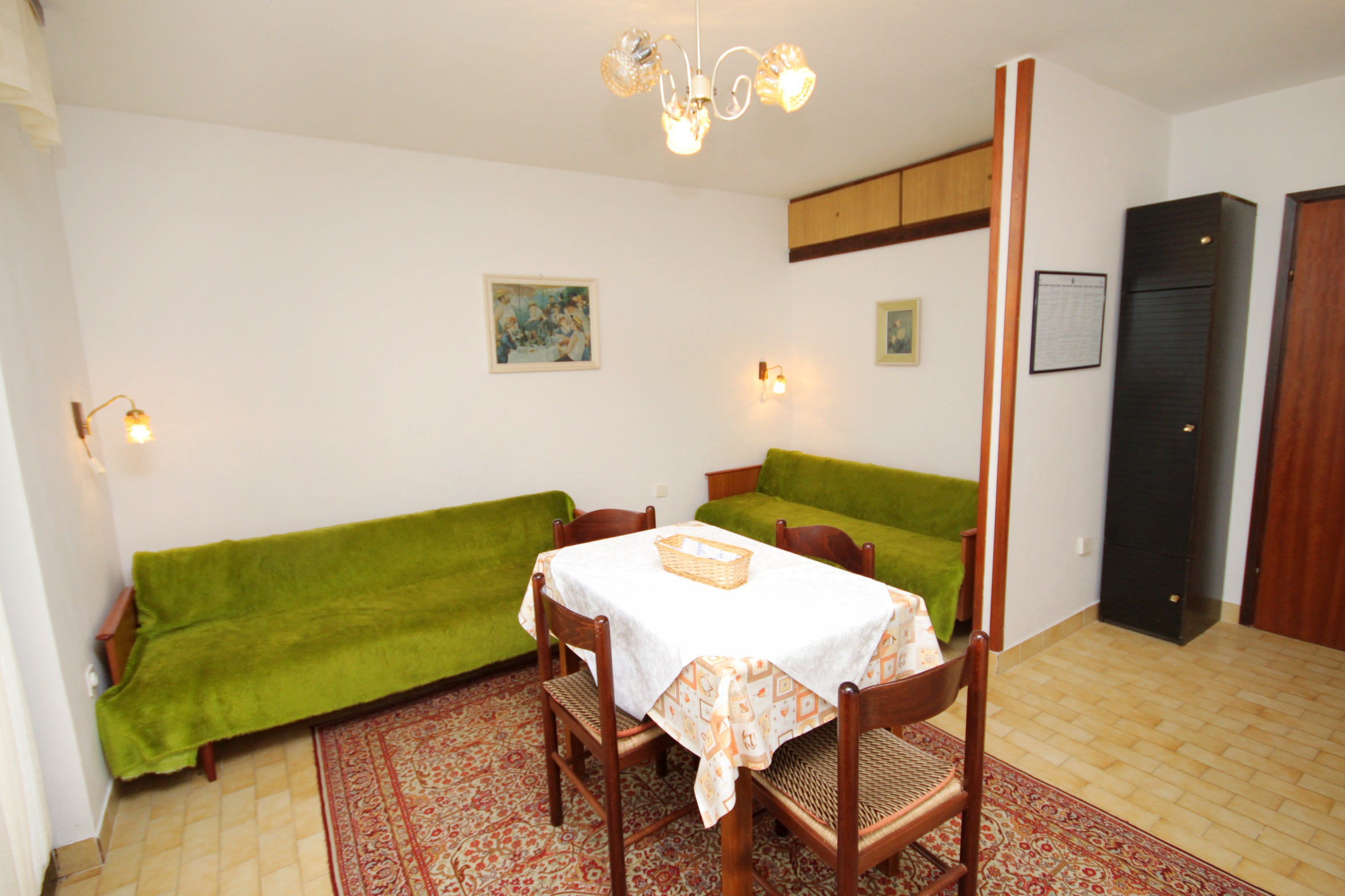Apartament może przyjąć 4 gości. Łóżka znajdują się w sypialniach, których jest 1, oraz w jadalni, na powierzchni 31m2. Goście mają dostęp do tarasu, by korzystać z ciepłych, letnich wieczorów. Z apartamentu roztacza się widok na morze. Możliwość przygotowywania posiłków poprzez korzystanie ze wspólnego grilla. Do kwatery można przyjechać ze zwierzęciem domowym, a usługa jest wliczona w cenę wynajęcia kwatery. WLICZONE W CENĘ: taksa pobytowa, sprzątanie końcowe, klimatyzacja, parking, internet, zwierzęta domowe, łóżeczko dziecięce. OBOWIĄZKOWE KOSZTY DODATKOWE: dopłata za krótki termin (procent dopłaty w zalezności od liczby noclegów: 30% - 1, 20% - 2, 10% - 3). NIEOBOWIĄZKOWE KOSZTY DODATKOWE: pranie bielizny (5,00 € pranie). Dostępność dodatkowych usług w rezerwowanym terminie oraz ich cenę (jeśli nie jest podana) należy sprawdzić wcześniej. Za dodatowe usługi, które nie zostały uwzględnione w kalkulacji ceny, płaci się bezpośrednio właścicielowi obiektu, pod warunkiem śe gość korzysta z tych usług.