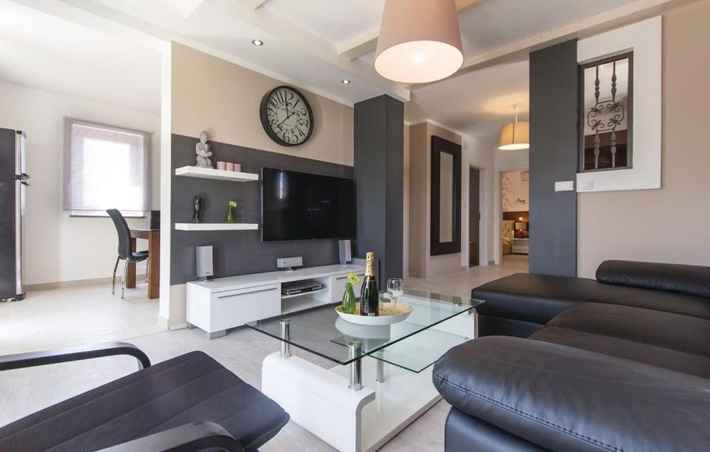 Apartament z 3 sypialniami, tarasem i widokiem na morze. This apartments standout feature is the private pool. This spacious apartment includes 1 living room, 3 separate bedrooms and 2 bathrooms with a bath and a shower. Guests will find a stovetop, a refrigerator, a dishwasher and kitchenware in the fully equipped kitchen. The apartment also features a barbecue. The air-conditioned apartment offers a TV with satellite channels, a washing machine, a seating area, a dining area as well as sea views. The unit has 5 beds. Apartament - 8 osobowy. Powierzchnia pokoju ok.: 99 mkw.