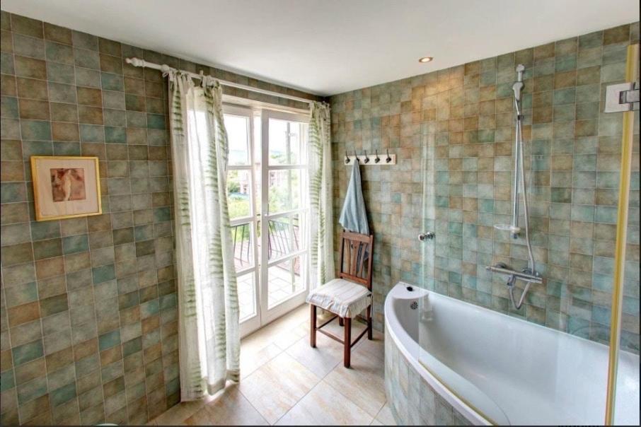 The holiday home with a terrace and sea views features 2 bedrooms, a living room, a flat-screen TV, an equipped kitchen with a dishwasher and an oven, and 2 bathrooms with a hot tub. Towels and bed linen are featured in the holiday home. The property has an outdoor dining area.