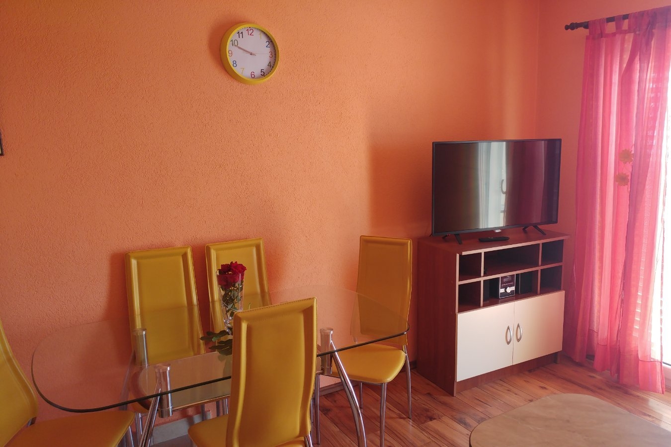 Apartament może przyjąć 5 gości. Łóżka znajdują się w sypialniach, których jest 2, oraz w pokoju dziennym, na powierzchni 56m2. Goście mają dostęp do balkonu, by korzystać z ciepłych, letnich wieczorów. Z apartamentu roztacza się widok na morze. WLICZONE W CENĘ: taksa pobytowa, sprzątanie końcowe, klimatyzacja, parking, internet, suszarka do włosów. OBOWIĄZKOWE KOSZTY DODATKOWE: dopłata za krótki termin (procent dopłaty w zalezności od liczby noclegów: 30% - 1, 20% - 2, 10% - 3). Dostępność dodatkowych usług w rezerwowanym terminie oraz ich cenę (jeśli nie jest podana) należy sprawdzić wcześniej. Za dodatowe usługi, które nie zostały uwzględnione w kalkulacji ceny, płaci się bezpośrednio właścicielowi obiektu, pod warunkiem śe gość korzysta z tych usług.