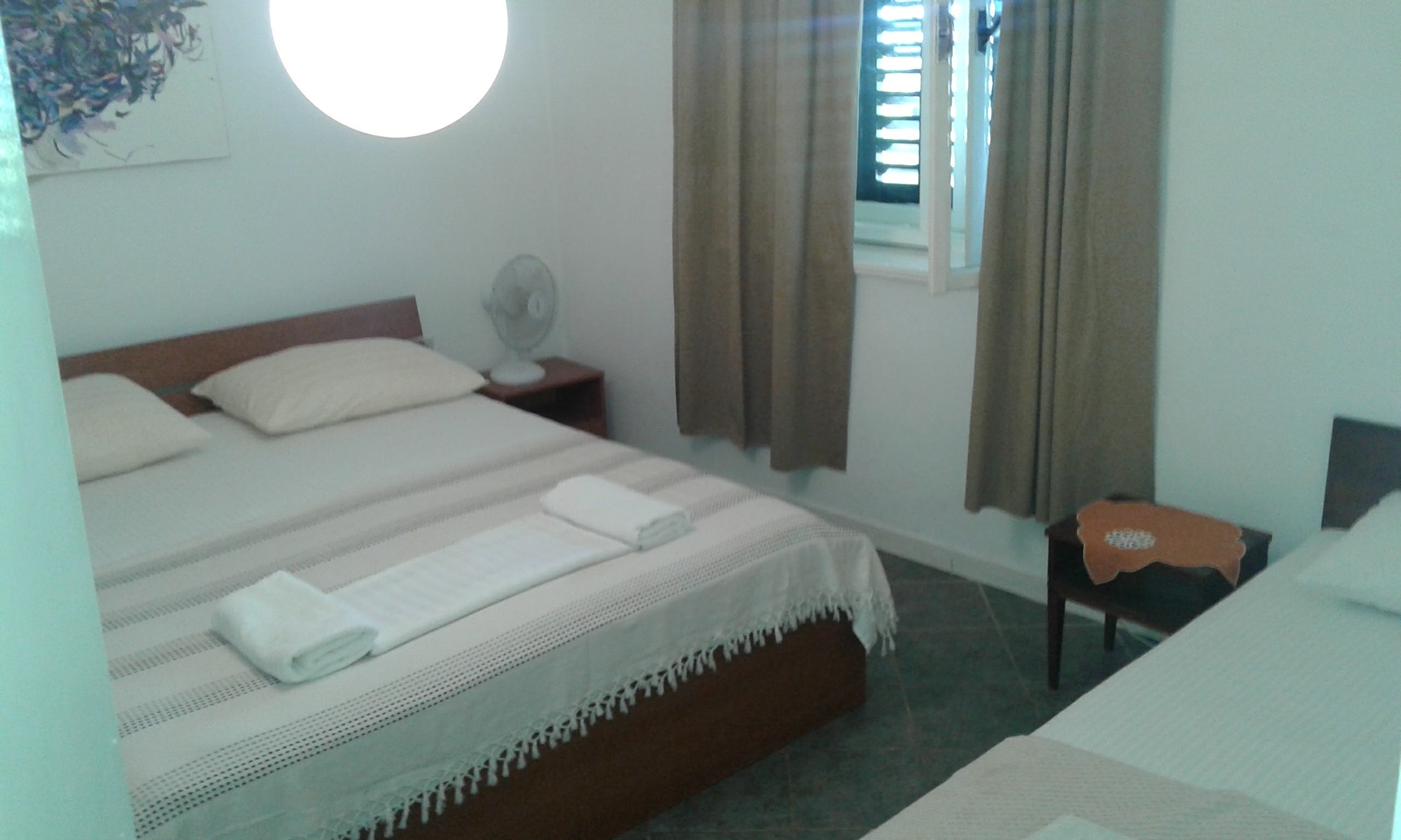 Apartament może przyjąć 6 gości. Łóżka znajdują się w sypialniach, których jest 3, na powierzchni 65m2. Goście mają dostęp do tarasu, by korzystać z ciepłych, letnich wieczorów. Z apartamentu roztacza się widok na morze. Możliwość przygotowywania posiłków poprzez korzystanie ze wspólnego grilla. Pomieszczenia rezerwowanej kwatery nie są połączone w jedną całość. Kwatera ma pomieszczenia, które są oddzielone od reszty tej kwatery. WLICZONE W CENĘ: taksa pobytowa, sprzątanie końcowe, klimatyzacja, parking, internet, żelazko, deska do prasowania, suszarka do włosów, przenośny grill, parasol, leżaki, 2 łóżka dla dzieci (zawarte w cenie). NIEOBOWIĄZKOWE KOSZTY DODATKOWE: miejsce do cumowania łodzi (12,00 € za nocleg). Dostępność dodatkowych usług w rezerwowanym terminie oraz ich cenę (jeśli nie jest podana) należy sprawdzić wcześniej. Za dodatowe usługi, które nie zostały uwzględnione w kalkulacji ceny, płaci się bezpośrednio właścicielowi obiektu, pod warunkiem śe gość korzysta z tych usług.