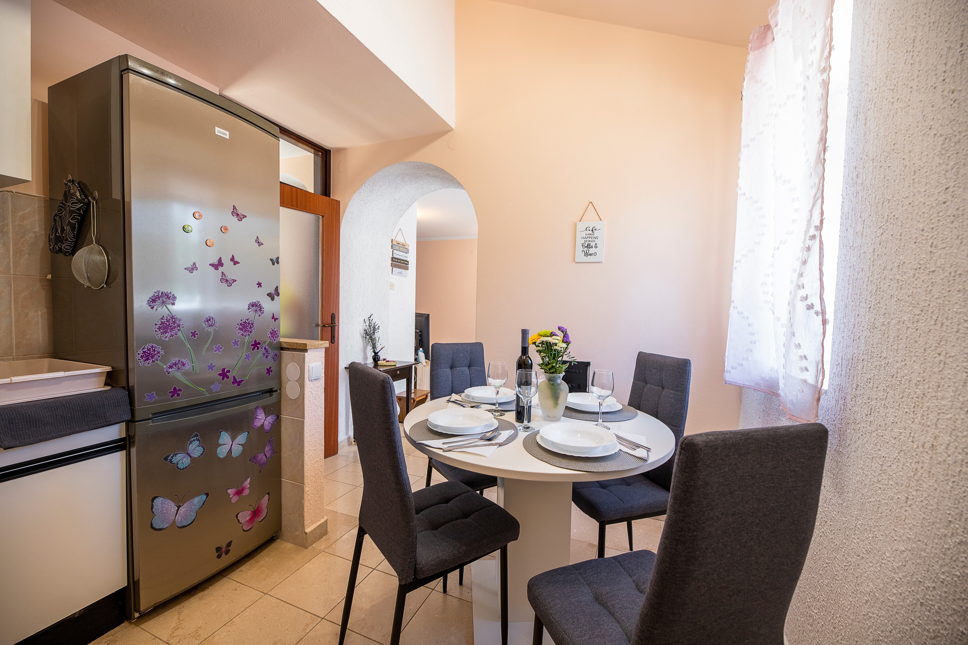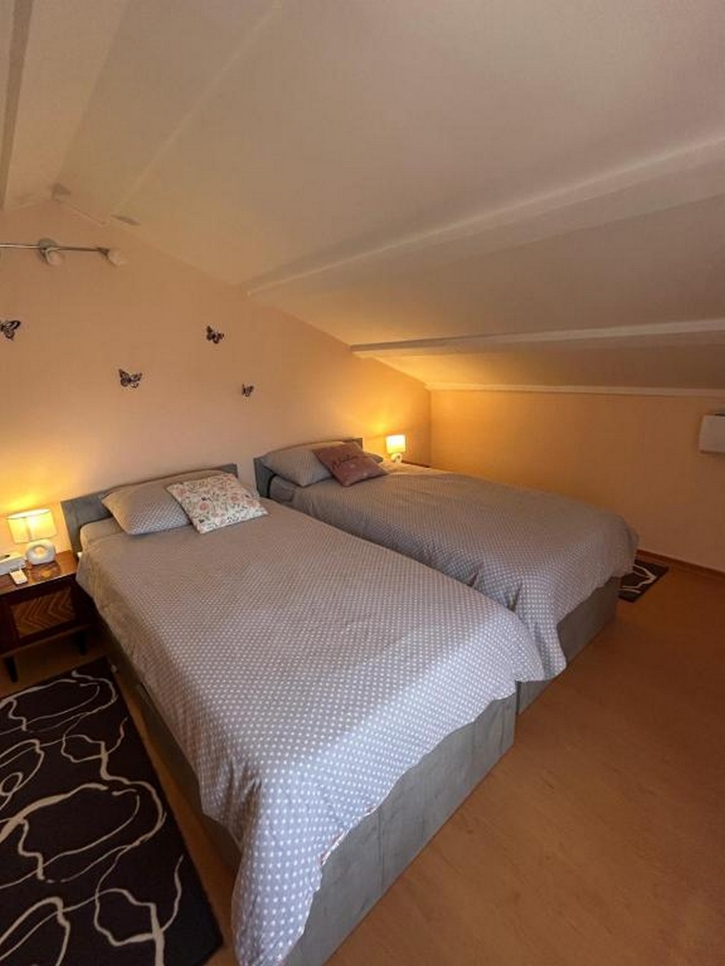 Apartament może przyjąć 4 gości. Łóżka znajdują się w sypialniach, których jest 2, na powierzchni 74m2. Goście mają dostęp do tarasu, by korzystać z ciepłych, letnich wieczorów. W kwaterze dozwolony jest pobyt zwierzęcia domowego, za dopłatą. WLICZONE W CENĘ: taksa pobytowa, sprzątanie końcowe, klimatyzacja, parking, internet, żelazko, suszarka do włosów. NIEOBOWIĄZKOWE KOSZTY DODATKOWE: zwierzęta domowe (10,00 € za nocleg). Dostępność dodatkowych usług w rezerwowanym terminie oraz ich cenę (jeśli nie jest podana) należy sprawdzić wcześniej. Za dodatowe usługi, które nie zostały uwzględnione w kalkulacji ceny, płaci się bezpośrednio właścicielowi obiektu, pod warunkiem śe gość korzysta z tych usług. Zniżki od ceny podstawowej: bezpłatny dzień 14=13 (przy pobycie, trwającym co najmniej 14 dni, otrzymujecie jeden bezpłatny dzień na pobyt do 31.12.2026).