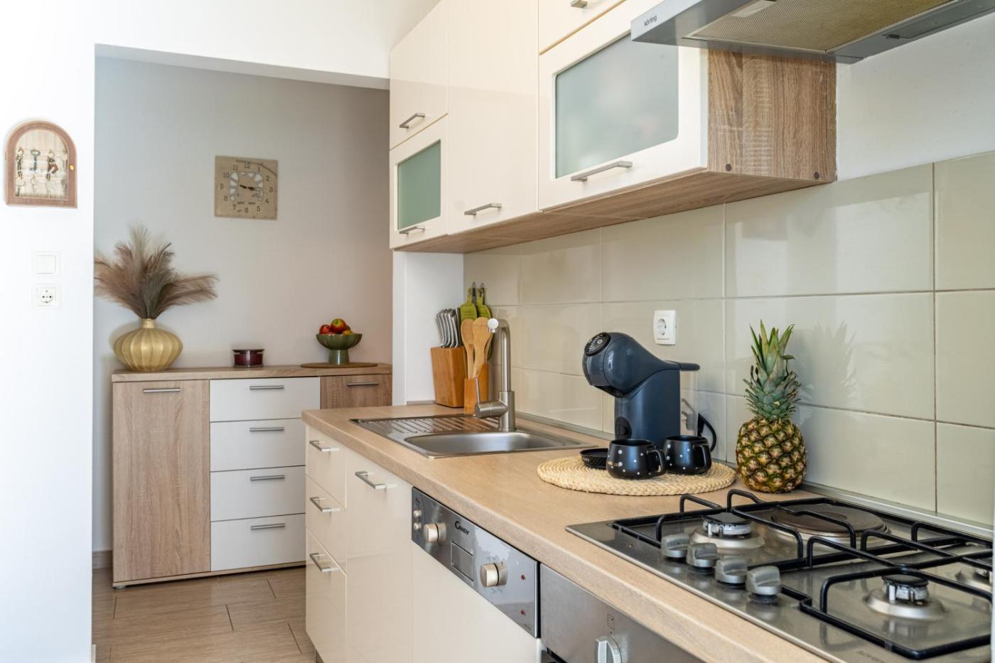 W apartamencie zapewniono kilka sypialni (2), kilka łazienek (2), pościel, ręczniki, jadalnię oraz kuchnię z pełnym wyposażeniem. Do dyspozycji Gości jest także telewizor z płaskim ekranem oraz taras z widokiem na ogród.