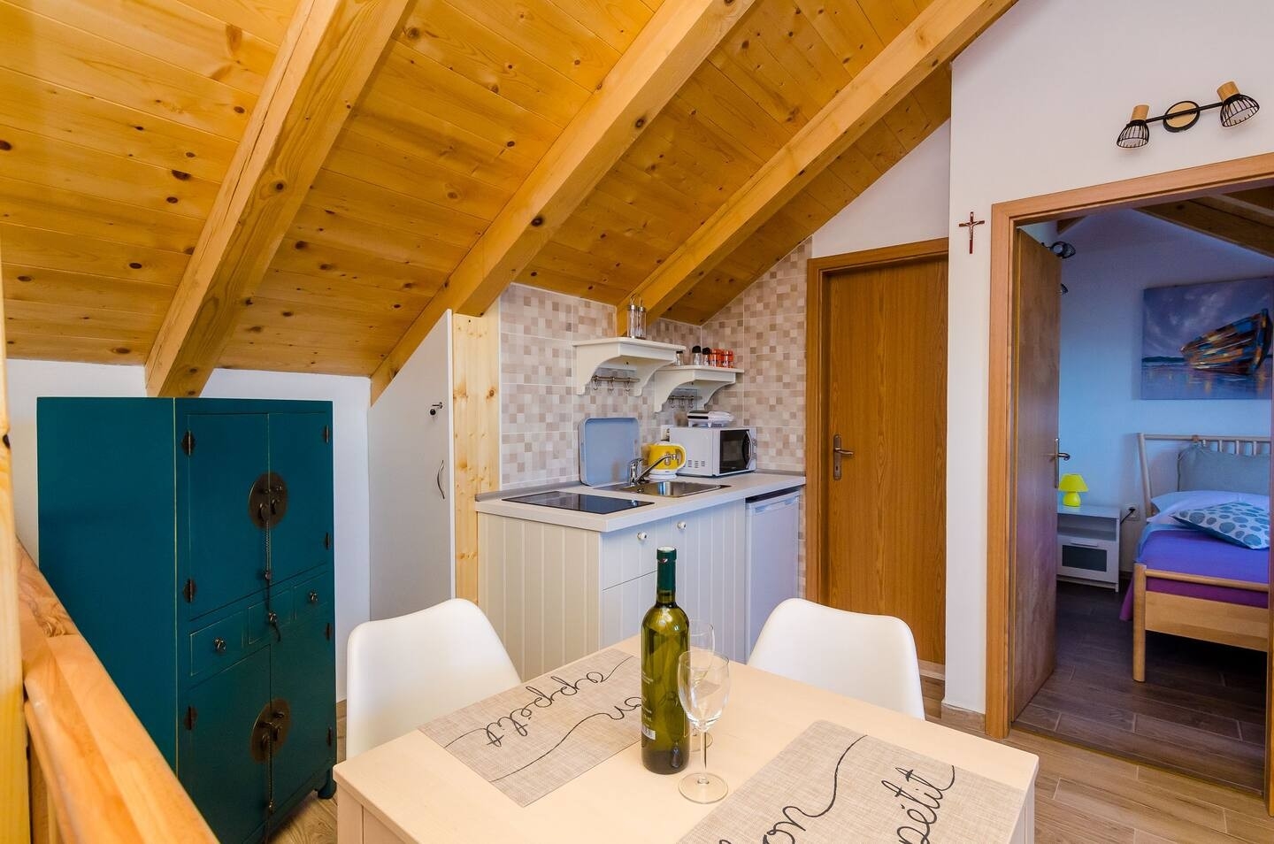 Zakwaterowanie w kwaterach typu Apartament (3) mogą Państwo znaleźć w obiekcie 22342 w miejscowości Korita, Mljet - Południowa Dalmacja. Obiekt jest oddalony 3 km od morza i znajduje się w kategorii "Obiekty na spokojny wypoczynek". Plaża najbliższa obiektowi jest piaszczysta. W obiekcie istnieje więcej apartamentów, w których prawdopodobnie będą przebywać także inni goście w czasie Państwa wakacji. W czasie Państwa pobytu gospodarze będą przebywać w obiekcie. Właściciel nie ma obowiązku przyjąć dodatkowych niezgłoszonych osób ani zwierząt domowych, dlatego też trzeba je wcześniej zgłosić.ZAWARTOŚĆ Teren wokół domu (Uporządkowane), Podwórko (25m2, Przestrzeń dla dzieci, Miejsce do siedzenia), Parking (Liczba miejsc parkingowych: 3, Odległość od obiektu: Na podwórku), Grill: wspólny, WiFi Internet, Suszarka do włosów, Żelazko, Deska do prasowania, Łóżeczko dziecięce LOKALIZACJA I DOSTĘP Obiekt nie znajduje się przy drodze Pomiędzy obiektem i plażą znajduje się lokalna droga Możliwość dojazdu samochodem: Tak Obiekt znajduje się w cichym otoczeniu Obiekt jest otoczony zielenią ODLEGŁOŚCI Morze: 3 km Plaża: 4 km Sklep: 4 km Apteka: 19 km Port: 11 km Stacja benzynowa: 11 km