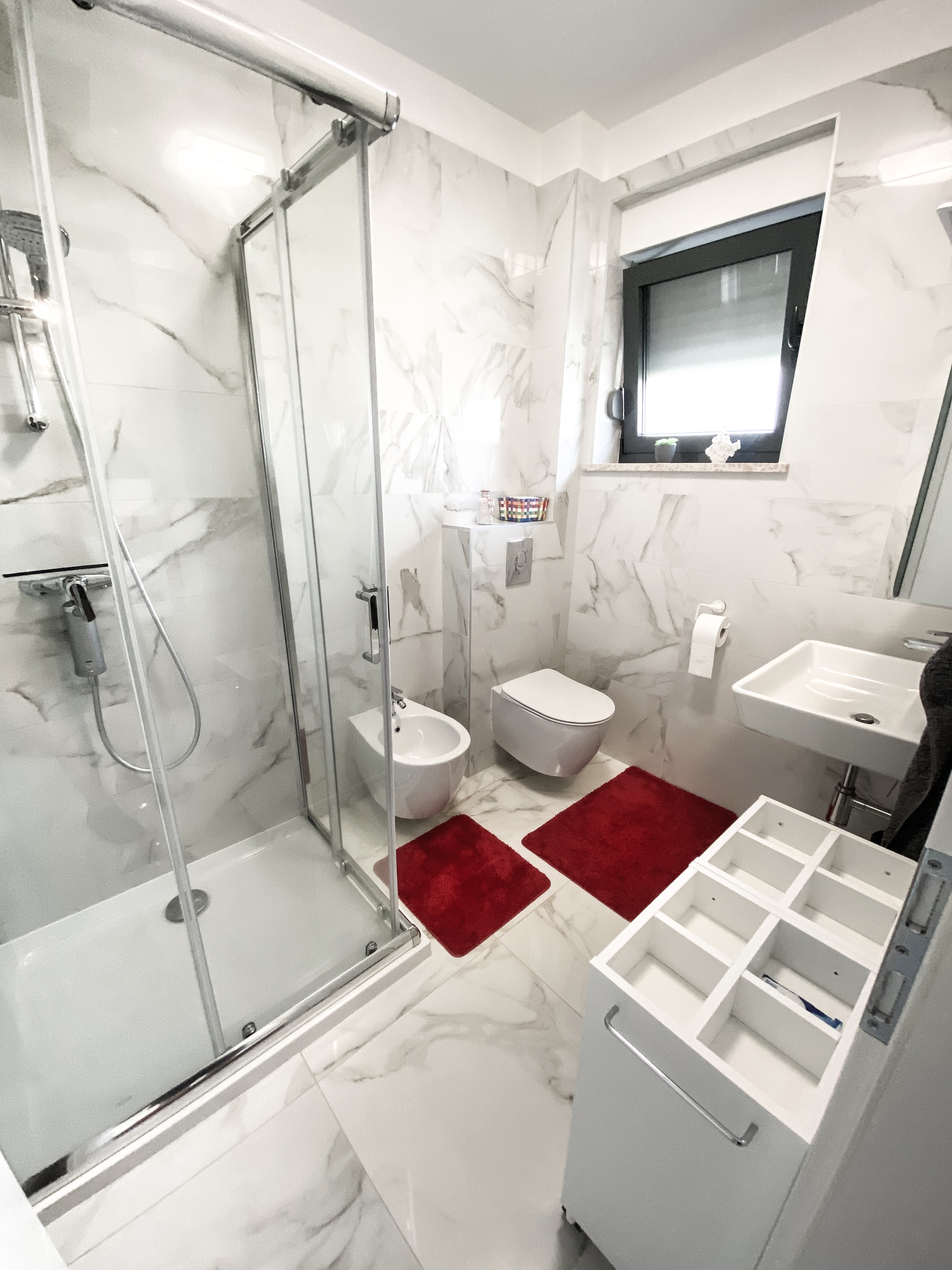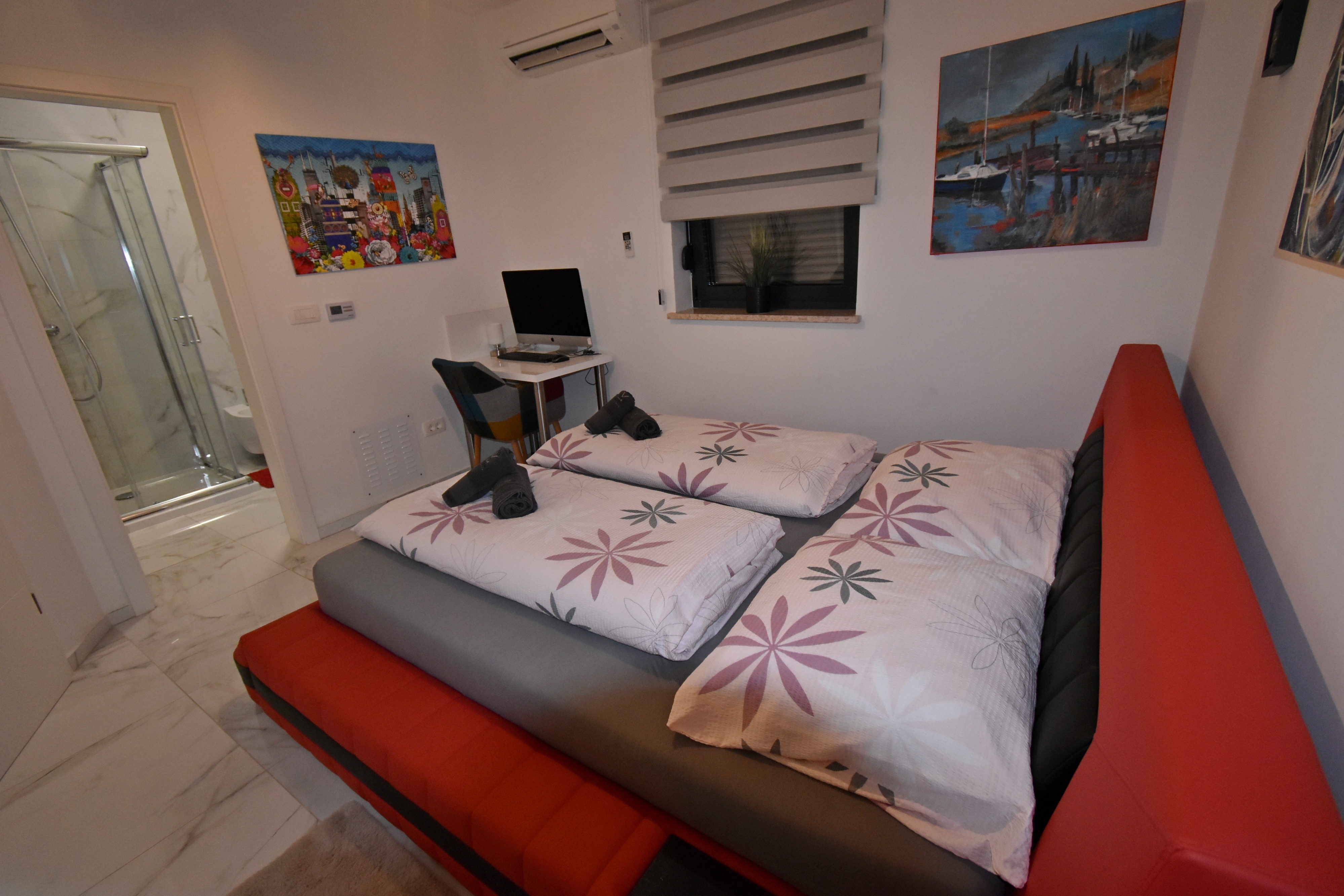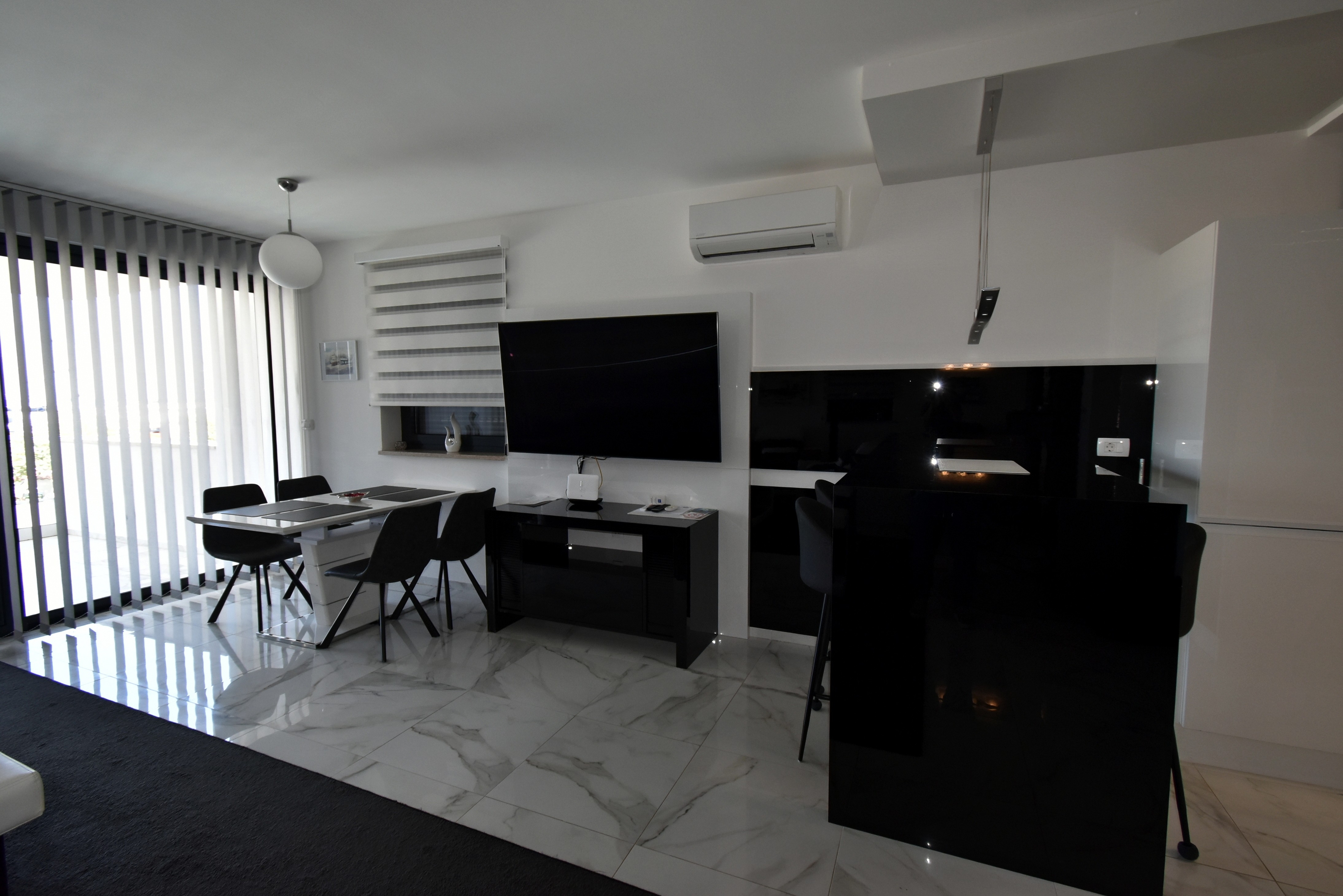 Apartament może przyjąć 6 gości. Łóżka znajdują się w sypialniach, których jest 3, na powierzchni 110m2. Goście mają dostęp do tarasu, by korzystać z ciepłych, letnich wieczorów. Z apartamentu roztacza się widok na morze. Możliwość przygotowywania posiłków poprzez korzystanie ze wspólnego grilla. W trakcie swojego pobytu goście mogą korzystać ze wspólnego basenu. Do kwatery można przyjechać ze zwierzęciem domowym, a usługa jest wliczona w cenę wynajęcia kwatery. WLICZONE W CENĘ: taksa pobytowa, sprzątanie końcowe, klimatyzacja, centralne ogrzewanie, basen, parking, internet, zwierzęta domowe, rower, łóżeczko dziecięce, żelazko, deska do prasowania, suszarka do włosów, przenośny grill, parasol, leżaki, 2 łóżka dla dzieci (zawarte w cenie). Dostępność dodatkowych usług w rezerwowanym terminie oraz ich cenę (jeśli nie jest podana) należy sprawdzić wcześniej. Za dodatowe usługi, które nie zostały uwzględnione w kalkulacji ceny, płaci się bezpośrednio właścicielowi obiektu, pod warunkiem śe gość korzysta z tych usług.