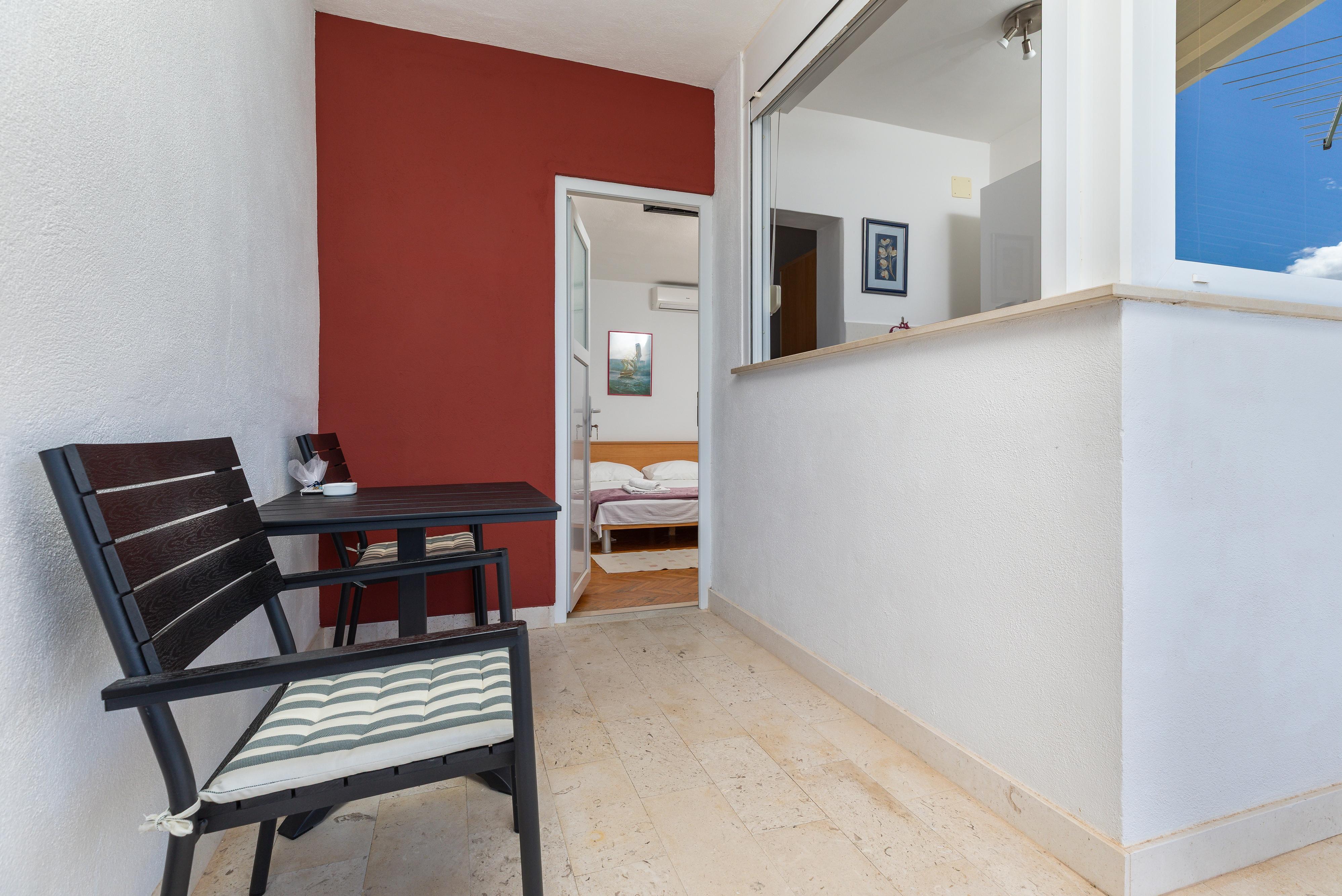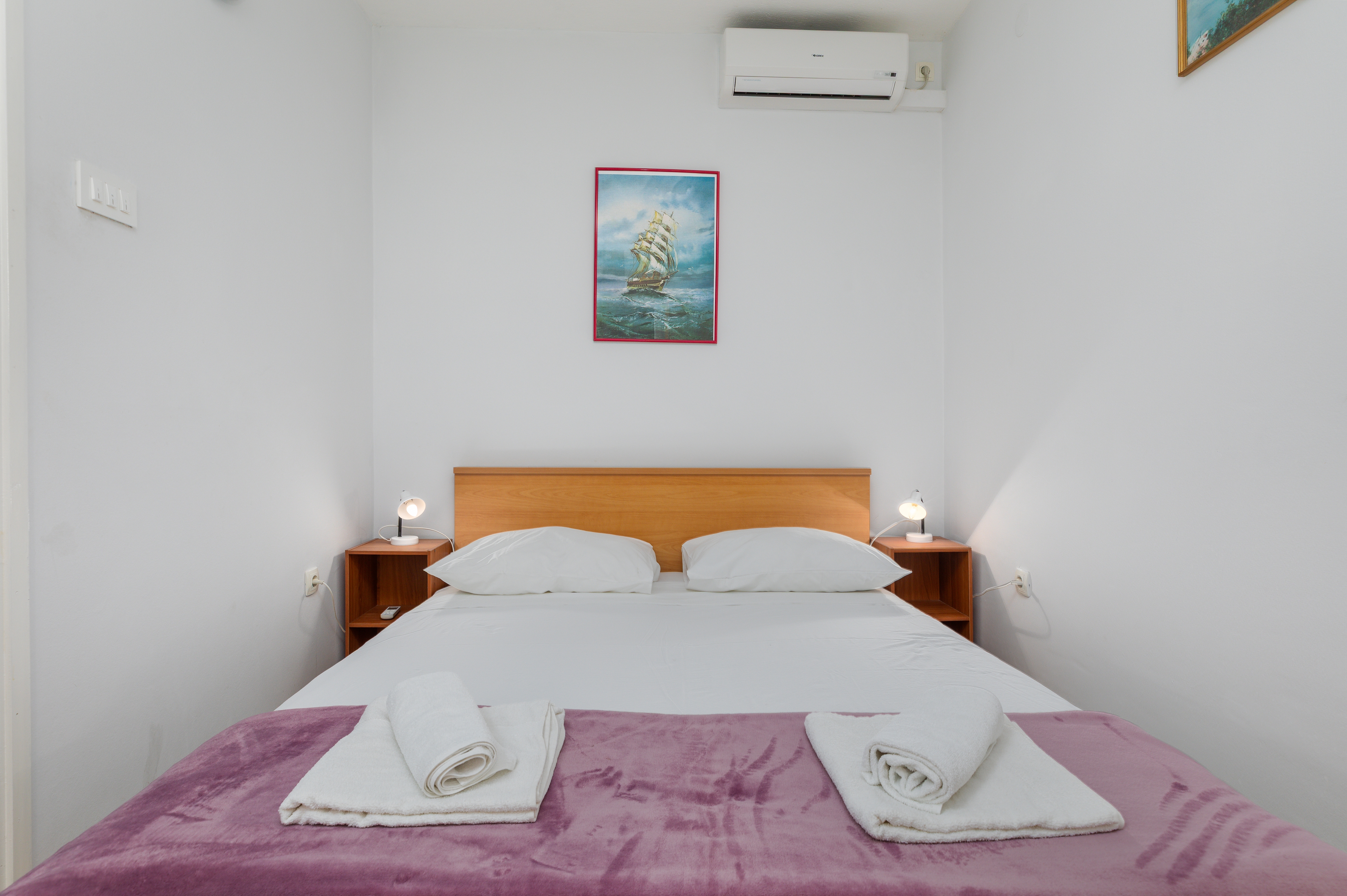 Studio może przyjąć 2 gości. Łóżka znajdują się w sypialniach, których jest 1, na powierzchni 14m2. Goście mają dostęp do tarasu, by korzystać z ciepłych, letnich wieczorów. Z apartamentu typu studio roztacza się widok na morze. Możliwość przygotowywania posiłków poprzez korzystanie ze wspólnego grilla. WLICZONE W CENĘ: taksa pobytowa, sprzątanie końcowe, klimatyzacja, parking, internet, przenośny grill. OBOWIĄZKOWE KOSZTY DODATKOWE: dopłata za krótki termin (procent dopłaty w zalezności od liczby noclegów: 30% - 1, 20% - 2, 10% - 3). Dostępność dodatkowych usług w rezerwowanym terminie oraz ich cenę (jeśli nie jest podana) należy sprawdzić wcześniej. Za dodatowe usługi, które nie zostały uwzględnione w kalkulacji ceny, płaci się bezpośrednio właścicielowi obiektu, pod warunkiem śe gość korzysta z tych usług. Zniżki od ceny podstawowej: bezpłatny dzień 14=13 (przy pobycie, trwającym co najmniej 14 dni, otrzymujecie jeden bezpłatny dzień na pobyt do 31.12.2026).