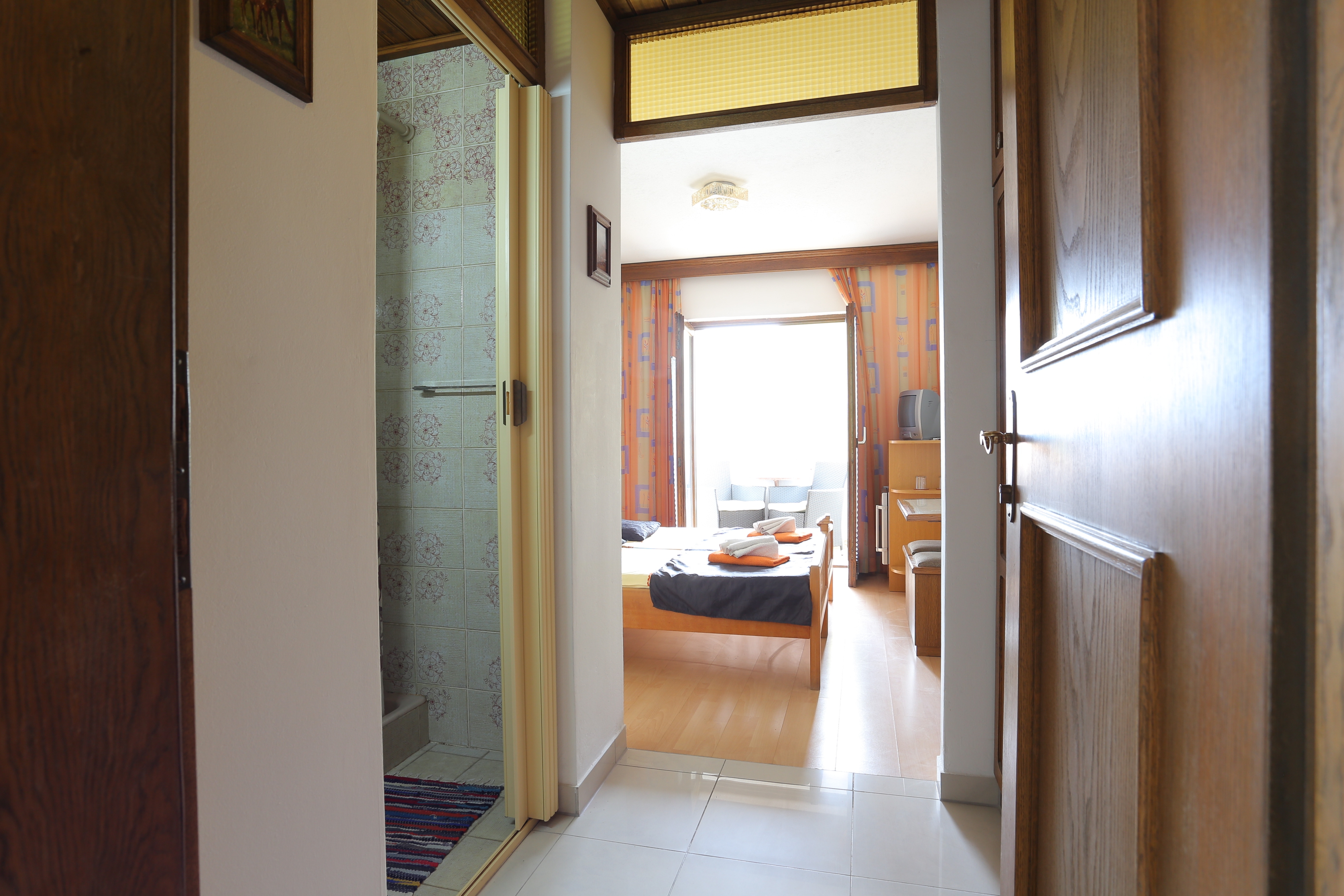 Pokój może przyjąć 2 gości. Łóżka znajdują się w sypialniach, których jest 1, na powierzchni 13m2. Goście mają dostęp do balkonu, by korzystać z ciepłych, letnich wieczorów. Rezerwowana kwatera to pokój z własną łazienką, bez możliwości korzystania z kuchni. WLICZONE W CENĘ: taksa pobytowa, sprzątanie końcowe, parking, internet, łóżeczko dziecięce, żelazko, deska do prasowania, suszarka do włosów. OBOWIĄZKOWE KOSZTY DODATKOWE: dopłata za krótki termin (procent dopłaty w zalezności od liczby noclegów: 30% - 1, 20% - 2, 10% - 3). NIEOBOWIĄZKOWE KOSZTY DODATKOWE: śniadanie (8,00 €, 50% zniżki dla dzieci od 4 do 12 lat, Bezpłatne dla dzieci do 4 lat). Dostępność dodatkowych usług w rezerwowanym terminie oraz ich cenę (jeśli nie jest podana) należy sprawdzić wcześniej. Za dodatowe usługi, które nie zostały uwzględnione w kalkulacji ceny, płaci się bezpośrednio właścicielowi obiektu, pod warunkiem śe gość korzysta z tych usług.