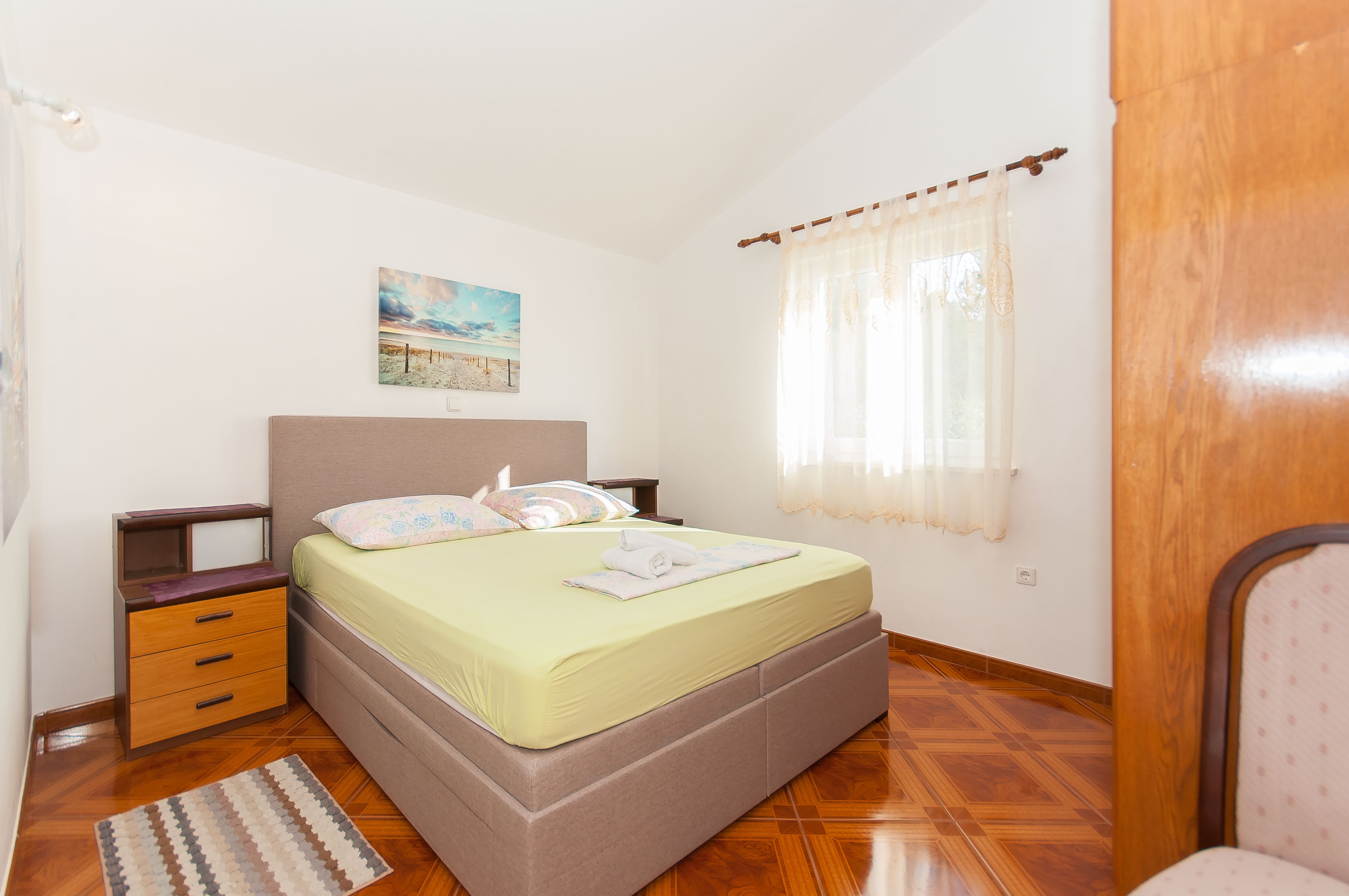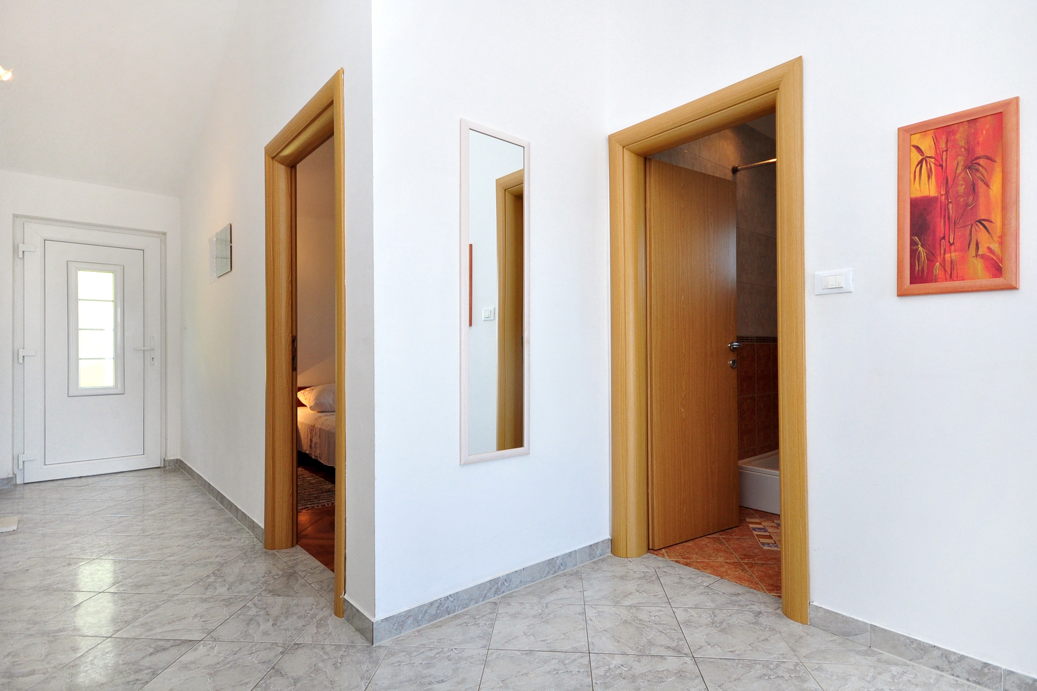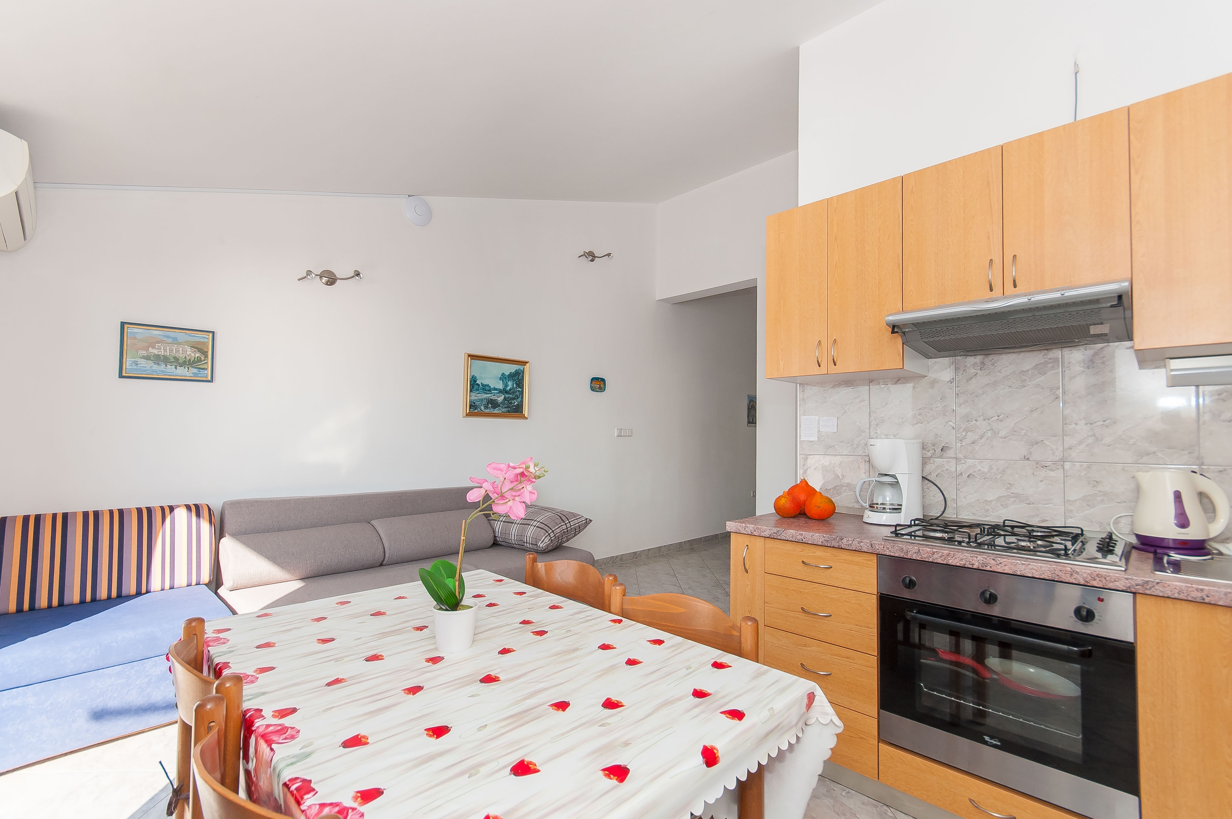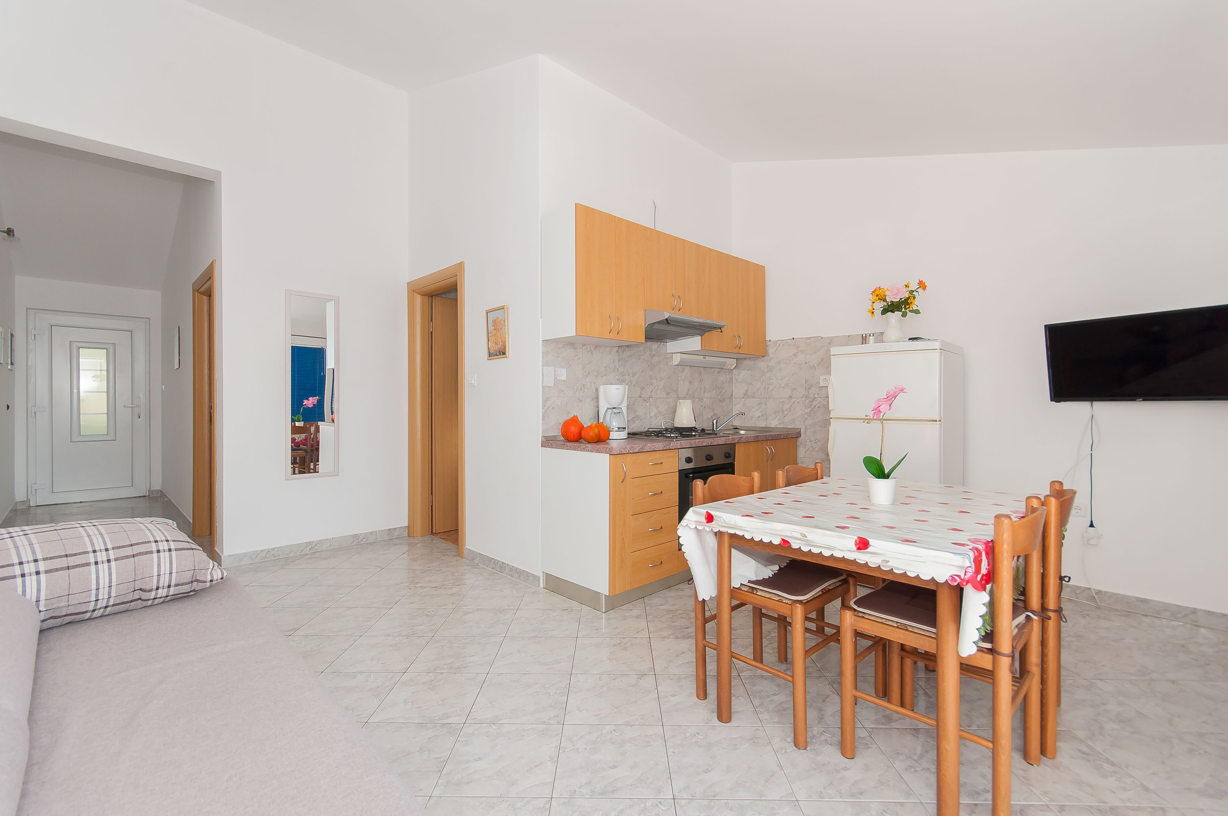Apartament może przyjąć 4 gości. Łóżka znajdują się w sypialniach, których jest 1, oraz w jadalni, na powierzchni 38m2. Goście mają dostęp do tarasu, by korzystać z ciepłych, letnich wieczorów. Z apartamentu roztacza się widok na morze. Możliwość przygotowywania posiłków poprzez korzystanie ze wspólnego grilla. W kwaterze dozwolony jest pobyt zwierzęcia domowego, za dopłatą. WLICZONE W CENĘ: taksa pobytowa, sprzątanie końcowe, klimatyzacja, parking, internet. OBOWIĄZKOWE KOSZTY DODATKOWE: dopłata za krótki termin (procent dopłaty w zalezności od liczby noclegów: 30% - 1, 20% - 2, 10% - 3). NIEOBOWIĄZKOWE KOSZTY DODATKOWE: zwierzęta domowe (5,00 € za nocleg). Dostępność dodatkowych usług w rezerwowanym terminie oraz ich cenę (jeśli nie jest podana) należy sprawdzić wcześniej. Za dodatowe usługi, które nie zostały uwzględnione w kalkulacji ceny, płaci się bezpośrednio właścicielowi obiektu, pod warunkiem śe gość korzysta z tych usług.