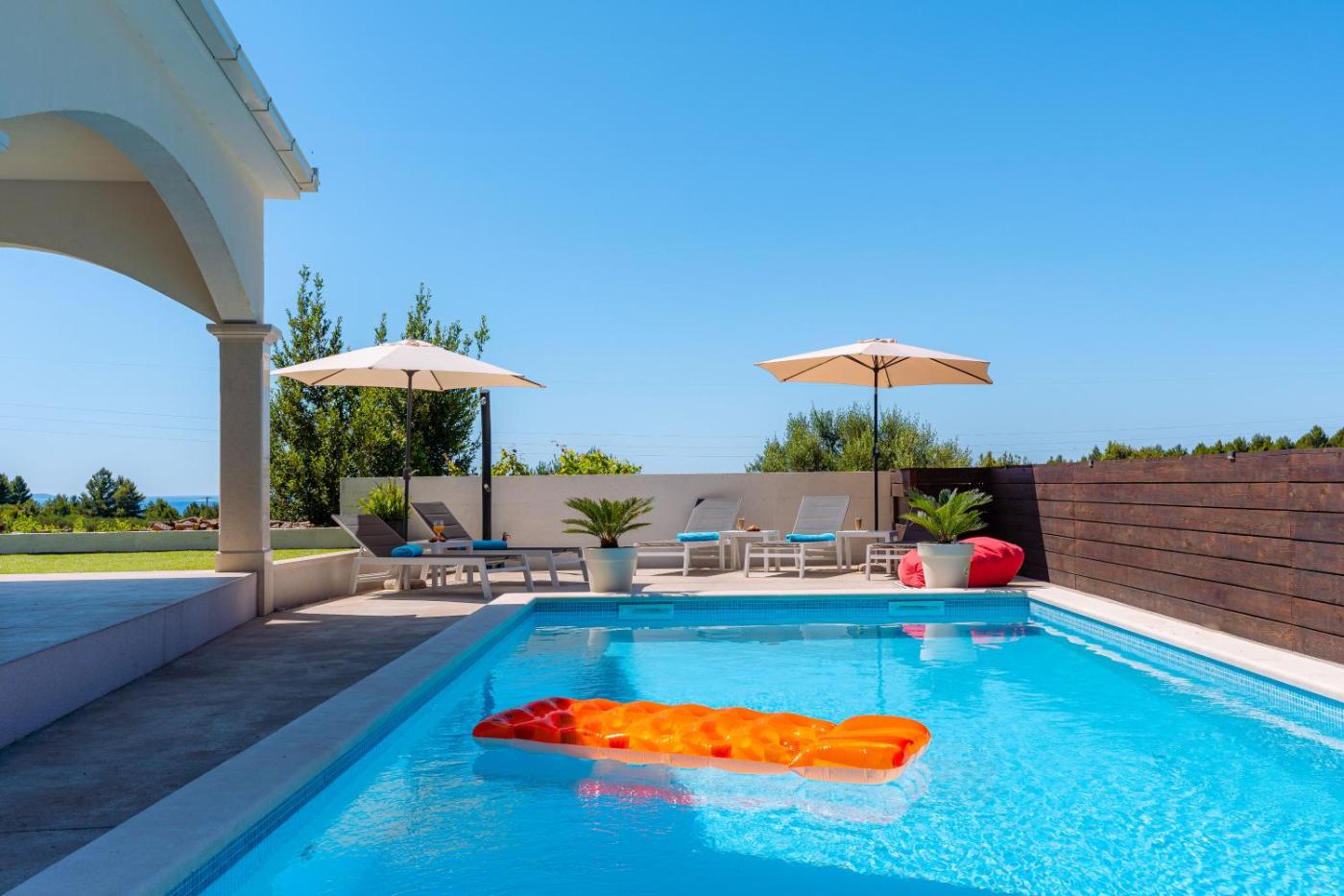 Willa z 3 sypialniami. The pool with a view and fireplace are the special features of this villa. Featuring a private entrance, this air-conditioned villa is comprised of 1 living room, 3 separate bedrooms and 4 bathrooms with a walk-in shower and a bath. Guests will find a stovetop, a refrigerator, a dishwasher and kitchenware in the kitchen. The villa also has a barbecue. Boasting a terrace with sea views, this villa also offers a washing machine and a flat-screen TV with streaming services. The unit offers 4 beds. Willa - 6 osobowy. Powierzchnia pokoju ok.: 155 mkw.