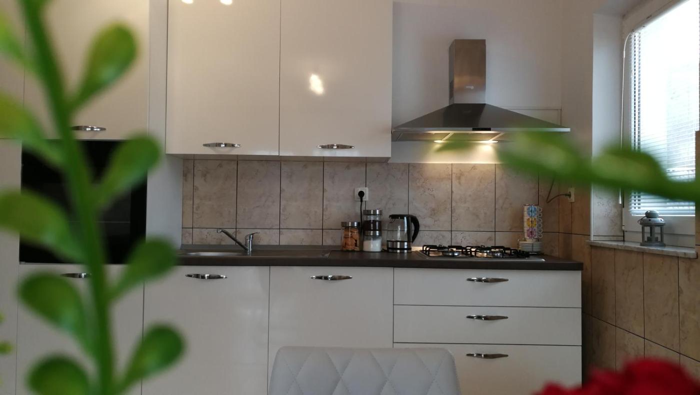 Apartament. Featuring a private entrance, this air-conditioned apartment consists of 1 living room, 2 separate bedrooms and 1 bathroom with a shower and a bidet. Guests will find a stovetop, a refrigerator, a dishwasher and kitchenware in the well-fitted kitchen. The apartment also offers a barbecue. Boasting a terrace with garden views, this apartment also provides a washing machine and a flat-screen TV. The unit offers 4 beds. Apartament - 7 osobowy. Powierzchnia pokoju ok.: 60 mkw.