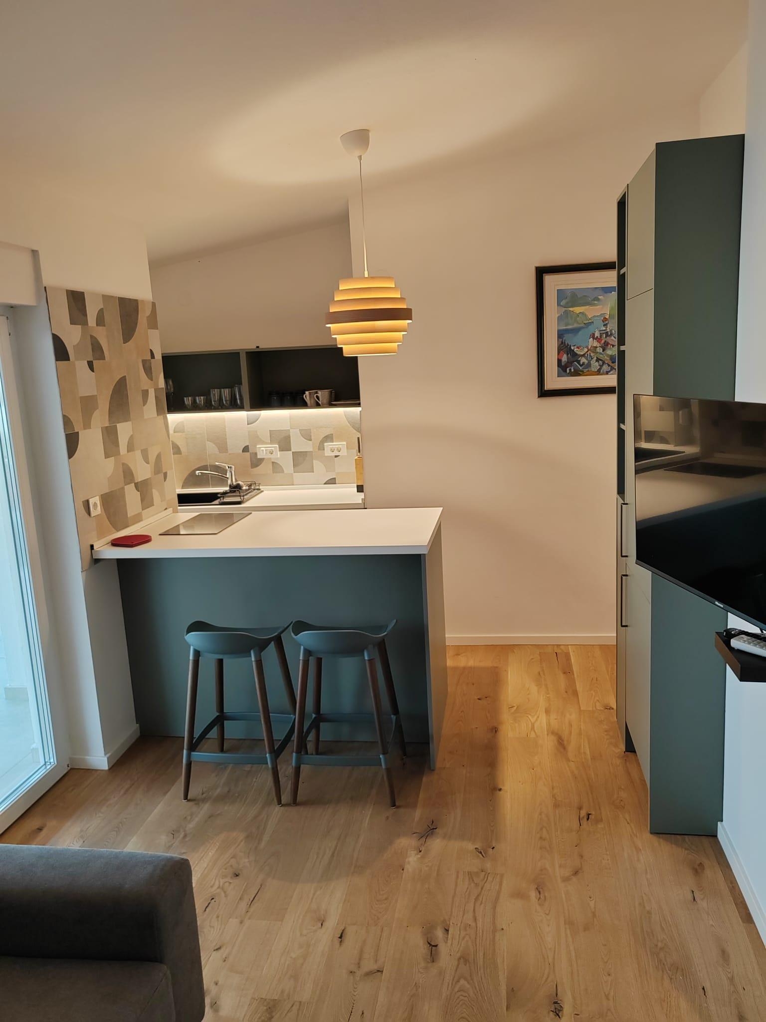 Apartament może przyjąć 3 gości. Łóżka znajdują się w sypialniach, których jest 1, oraz w pokoju dziennym, na powierzchni 22m2. Goście mają dostęp do tarasu, by korzystać z ciepłych, letnich wieczorów. Z apartamentu roztacza się widok na morze. Możliwość przygotowywania posiłków poprzez korzystanie ze wspólnego grilla. WLICZONE W CENĘ: taksa pobytowa, sprzątanie końcowe, klimatyzacja, parking, internet. OBOWIĄZKOWE KOSZTY DODATKOWE: dopłata za krótki termin (procent dopłaty w zalezności od liczby noclegów: 30% - 1, 20% - 2, 10% - 3). Dostępność dodatkowych usług w rezerwowanym terminie oraz ich cenę (jeśli nie jest podana) należy sprawdzić wcześniej. Za dodatowe usługi, które nie zostały uwzględnione w kalkulacji ceny, płaci się bezpośrednio właścicielowi obiektu, pod warunkiem śe gość korzysta z tych usług.