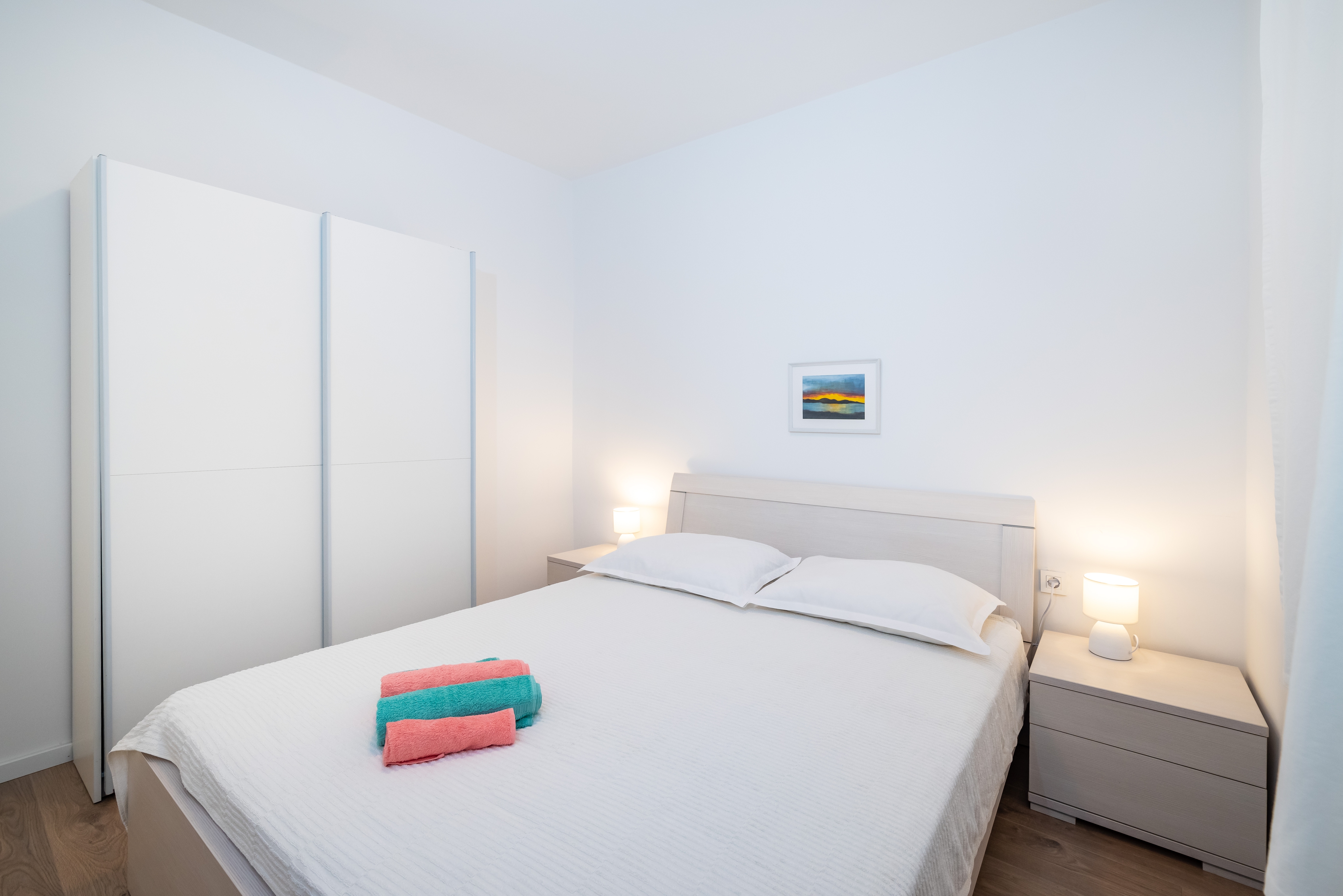 Apartament może przyjąć 5 gości. Łóżka znajdują się w sypialniach, których jest 2, oraz w pokoju dziennym, na powierzchni 45m2. Goście mają dostęp do tarasu, by korzystać z ciepłych, letnich wieczorów. Możliwość przygotowywania posiłków poprzez korzystanie ze wspólnego grilla. WLICZONE W CENĘ: taksa pobytowa, sprzątanie końcowe, klimatyzacja, parking, internet, łóżeczko dziecięce, żelazko, deska do prasowania, suszarka do włosów, przenośny grill. OBOWIĄZKOWE KOSZTY DODATKOWE: dopłata za krótki termin (procent dopłaty w zalezności od liczby noclegów: 30% - 1, 20% - 2, 10% - 3). Dostępność dodatkowych usług w rezerwowanym terminie oraz ich cenę (jeśli nie jest podana) należy sprawdzić wcześniej. Za dodatowe usługi, które nie zostały uwzględnione w kalkulacji ceny, płaci się bezpośrednio właścicielowi obiektu, pod warunkiem śe gość korzysta z tych usług.