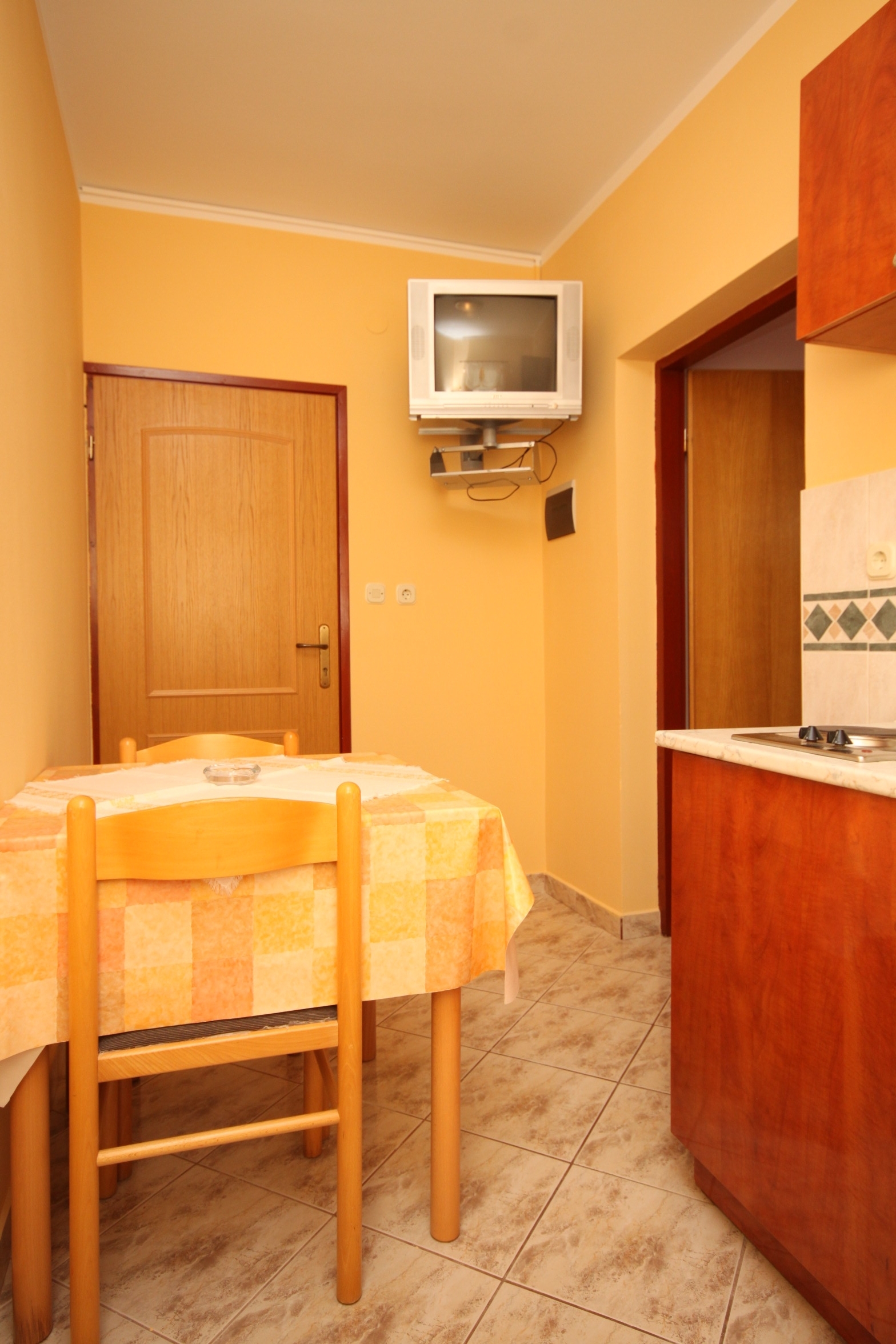 Apartament może przyjąć 2 gości. Łóżka znajdują się w sypialniach, których jest 1, na powierzchni 18m2. Goście mają dostęp do tarasu, by korzystać z ciepłych, letnich wieczorów. Z apartamentu roztacza się widok na morze. Możliwość przygotowywania posiłków poprzez korzystanie ze wspólnego grilla. W rezerwowanej kwaterze na miejscu jest pobierana kaucja (jej wysokość jest podana na stronie). WLICZONE W CENĘ: taksa pobytowa, sprzątanie końcowe, klimatyzacja, parking, internet. OBOWIĄZKOWE KOSZTY DODATKOWE: depozyt (150,00 € jednorazowo), dopłata za krótki termin (procent dopłaty w zalezności od liczby noclegów: 30% - 1, 20% - 2, 10% - 3). NIEOBOWIĄZKOWE KOSZTY DODATKOWE: pranie bielizny (10,00 € pranie), dostawka (10,00 € za nocleg). Dostępność dodatkowych usług w rezerwowanym terminie oraz ich cenę (jeśli nie jest podana) należy sprawdzić wcześniej. Za dodatowe usługi, które nie zostały uwzględnione w kalkulacji ceny, płaci się bezpośrednio właścicielowi obiektu, pod warunkiem śe gość korzysta z tych usług.