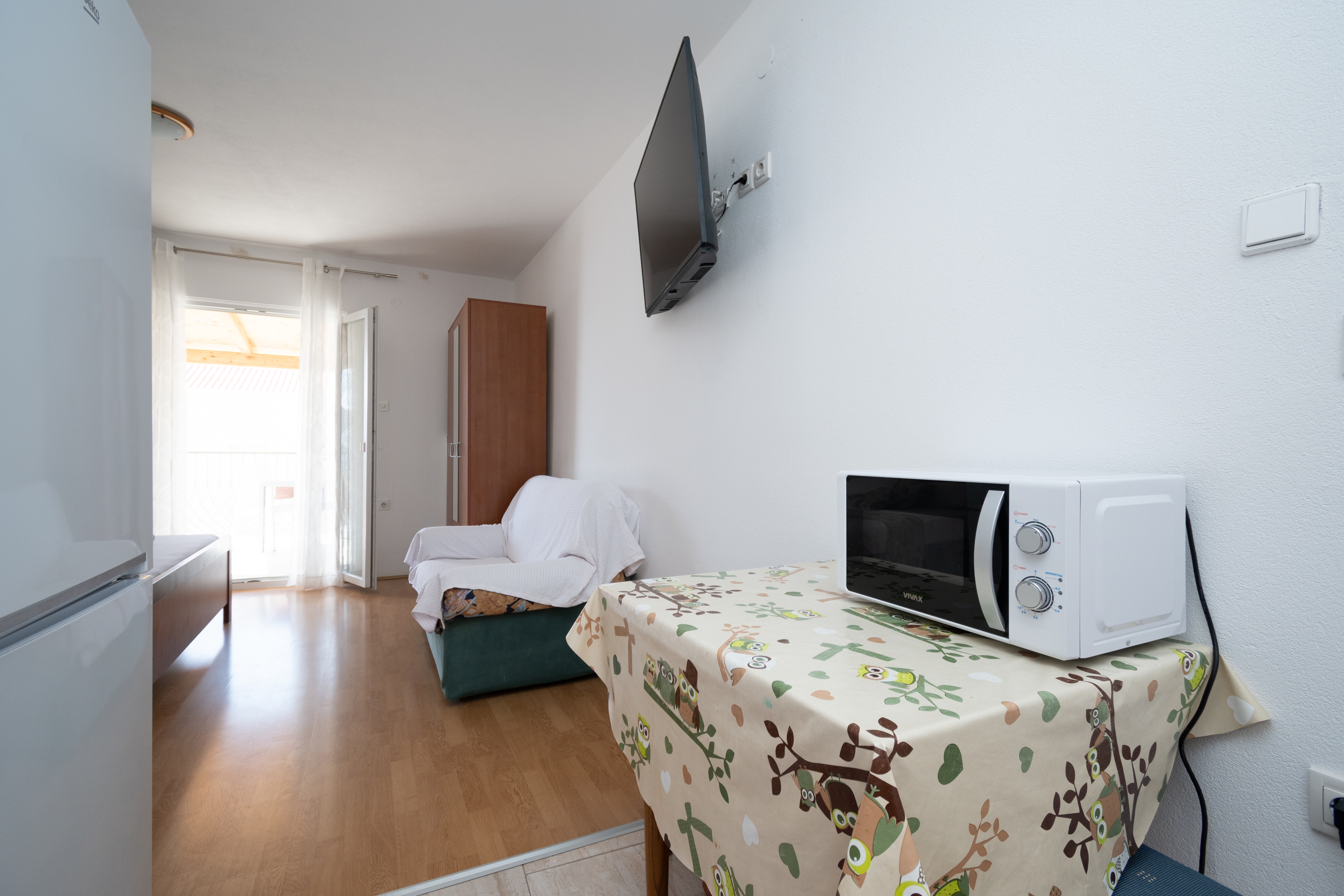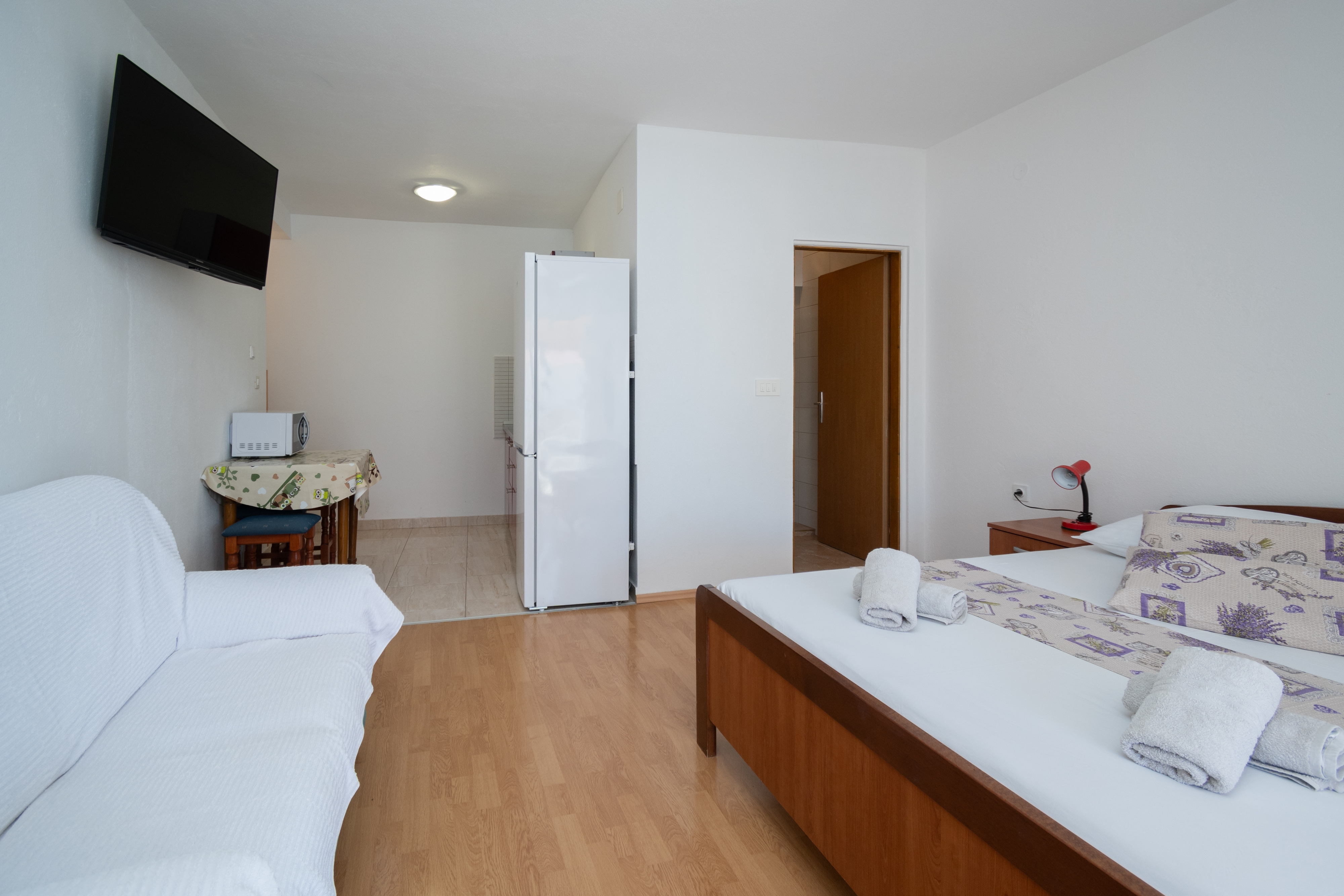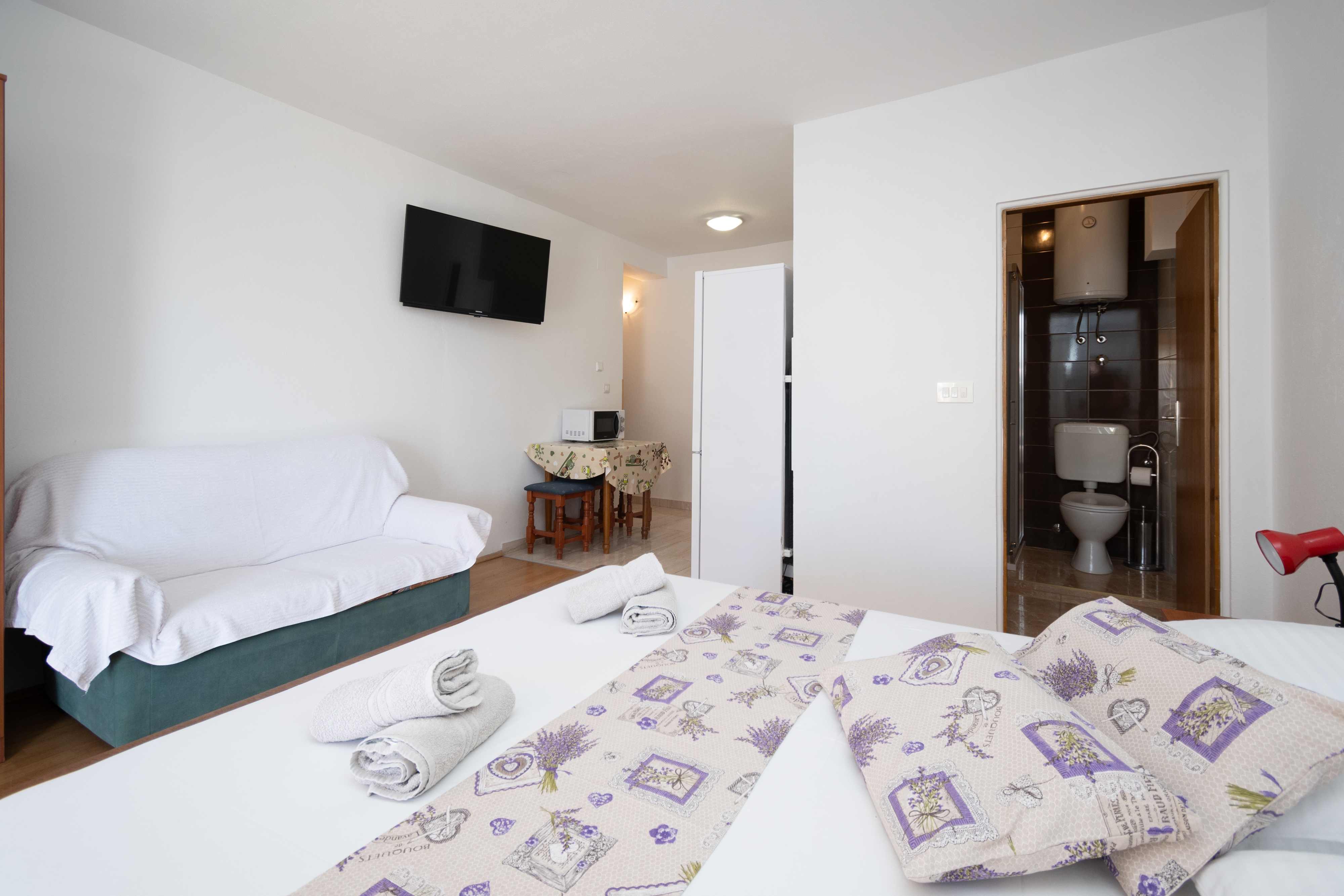 Studio może przyjąć 2 gości. Łóżka znajdują się w sypialniach, których jest 1, na powierzchni 26m2. Goście mają dostęp do tarasu, by korzystać z ciepłych, letnich wieczorów. Z apartamentu typu studio roztacza się widok na morze. WLICZONE W CENĘ: taksa pobytowa, sprzątanie końcowe, klimatyzacja, parking, internet. OBOWIĄZKOWE KOSZTY DODATKOWE: dopłata za krótki termin (procent dopłaty w zalezności od liczby noclegów: 30% - 1, 20% - 2, 10% - 3). Dostępność dodatkowych usług w rezerwowanym terminie oraz ich cenę (jeśli nie jest podana) należy sprawdzić wcześniej. Za dodatowe usługi, które nie zostały uwzględnione w kalkulacji ceny, płaci się bezpośrednio właścicielowi obiektu, pod warunkiem śe gość korzysta z tych usług.