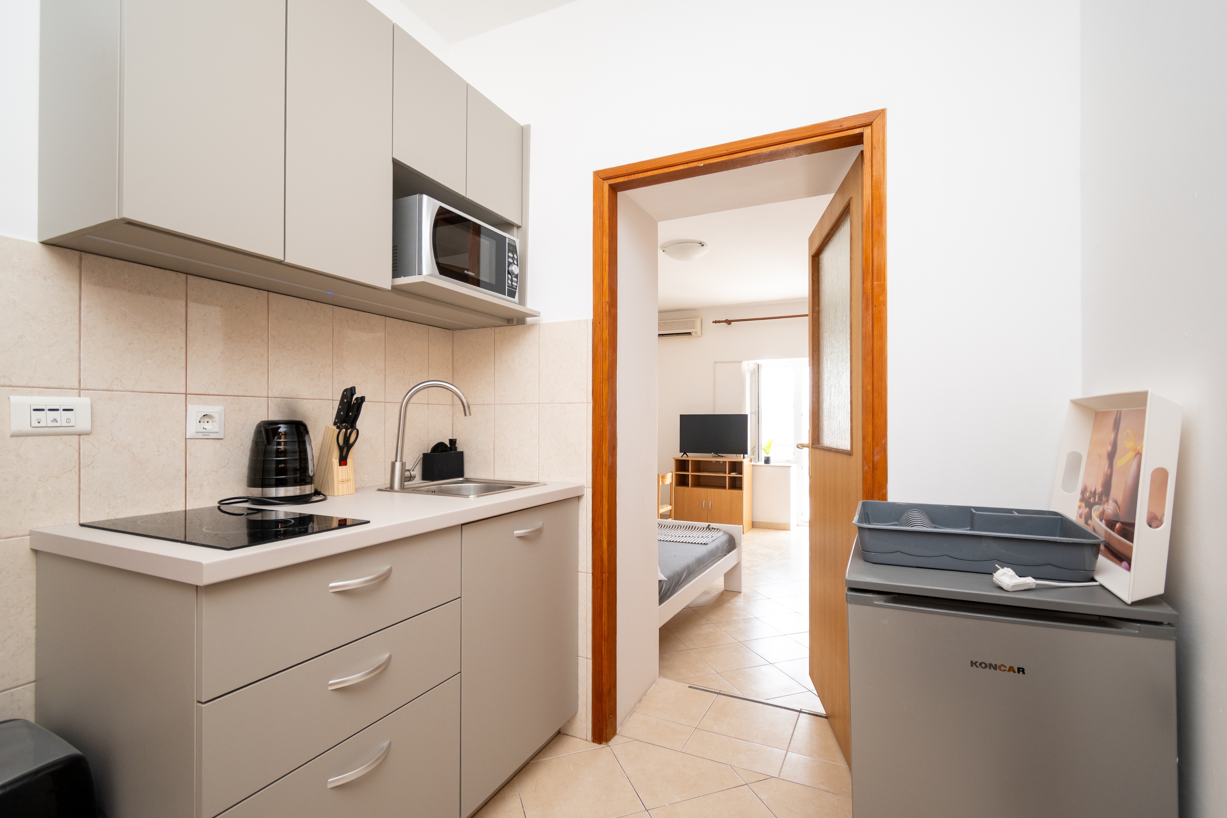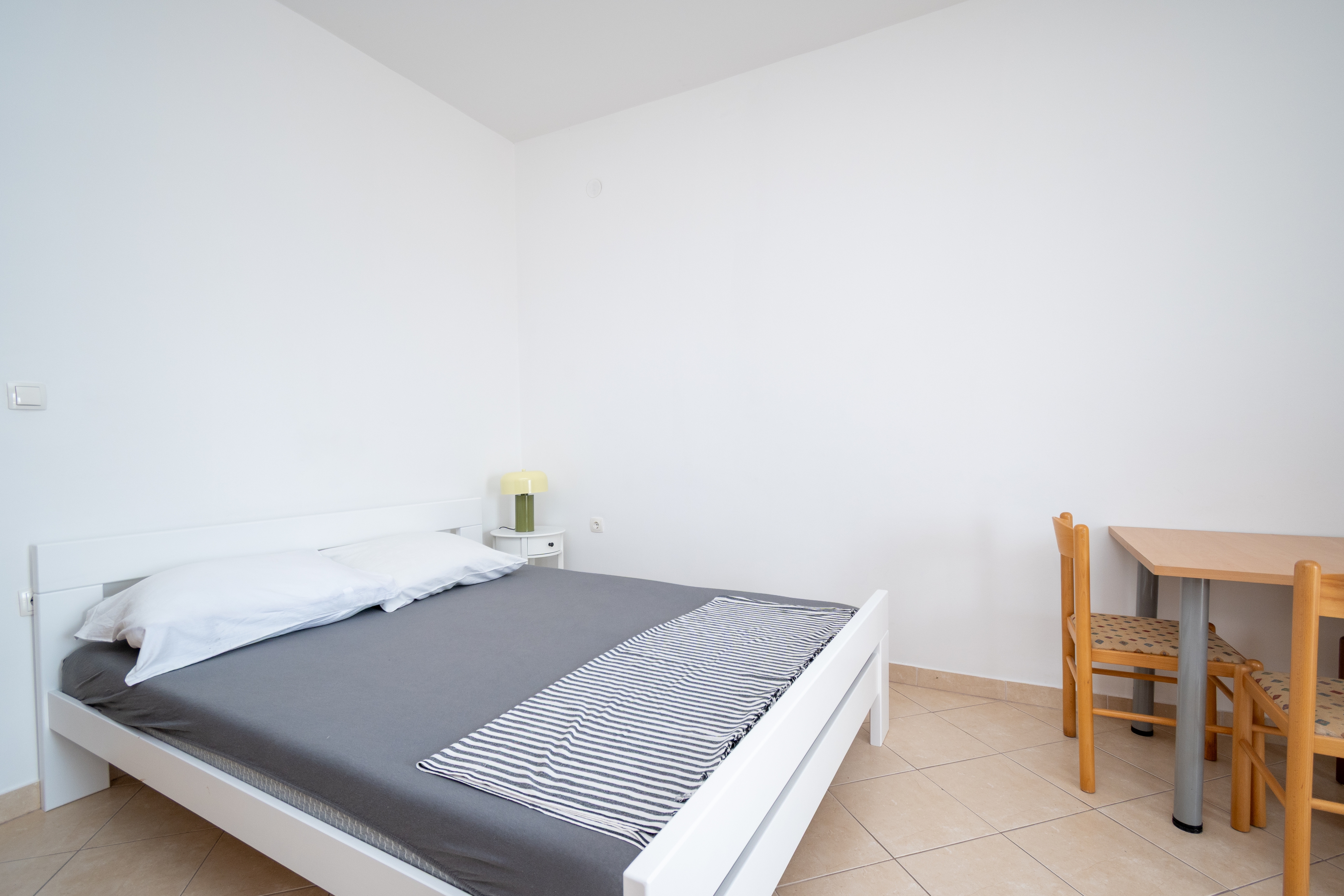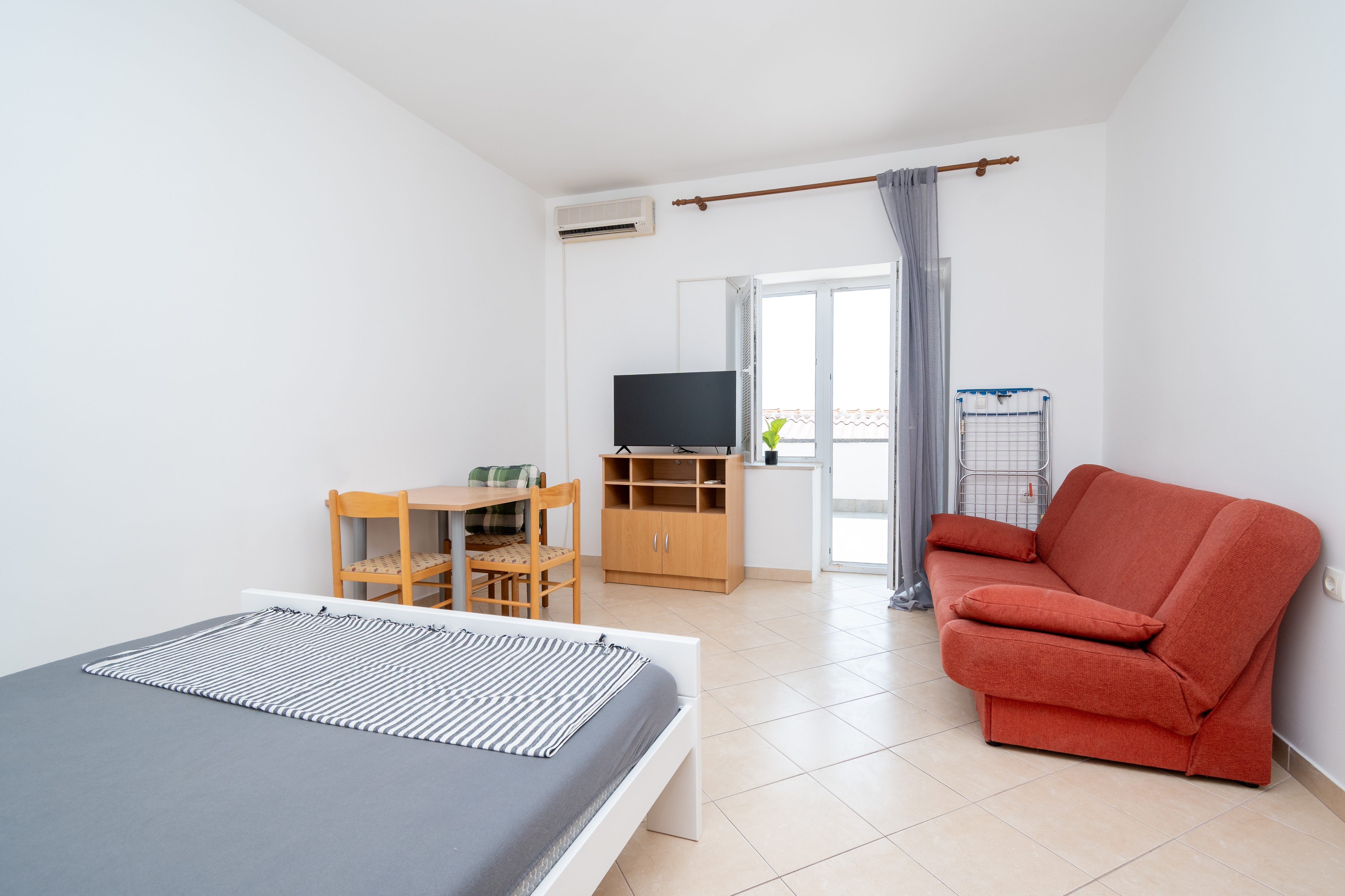 Studio może przyjąć 2 gości. Łóżka znajdują się w sypialniach, których jest 1, na powierzchni 27m2. Goście mają dostęp do tarasu, by korzystać z ciepłych, letnich wieczorów. Z apartamentu typu studio roztacza się widok na morze. Możliwość przygotowywania posiłków poprzez korzystanie ze wspólnego grilla. W trakcie swojego pobytu goście mogą korzystać ze wspólnego basenu. Do kwatery można przyjechać ze zwierzęciem domowym, a usługa jest wliczona w cenę wynajęcia kwatery. W rezerwowanej kwaterze na miejscu jest pobierana kaucja (jej wysokość jest podana na stronie). WLICZONE W CENĘ: taksa pobytowa, sprzątanie końcowe, klimatyzacja, basen, parking, internet, pranie bielizny, zwierzęta domowe, rower, łóżeczko dziecięce, żelazko, deska do prasowania, suszarka do włosów. OBOWIĄZKOWE KOSZTY DODATKOWE: depozyt (200,00 € jednorazowo), dopłata za krótki termin (procent dopłaty w zalezności od liczby noclegów: 30% - 1, 20% - 2, 10% - 3). Dostępność dodatkowych usług w rezerwowanym terminie oraz ich cenę (jeśli nie jest podana) należy sprawdzić wcześniej. Za dodatowe usługi, które nie zostały uwzględnione w kalkulacji ceny, płaci się bezpośrednio właścicielowi obiektu, pod warunkiem śe gość korzysta z tych usług. Zniżki od ceny podstawowej: bezpłatny dzień 21=19 (przy pobycie, trwającym co najmniej 21 dni, trzymujecie dwa bezpłatne dni na pobyt do 31.12.2026).
