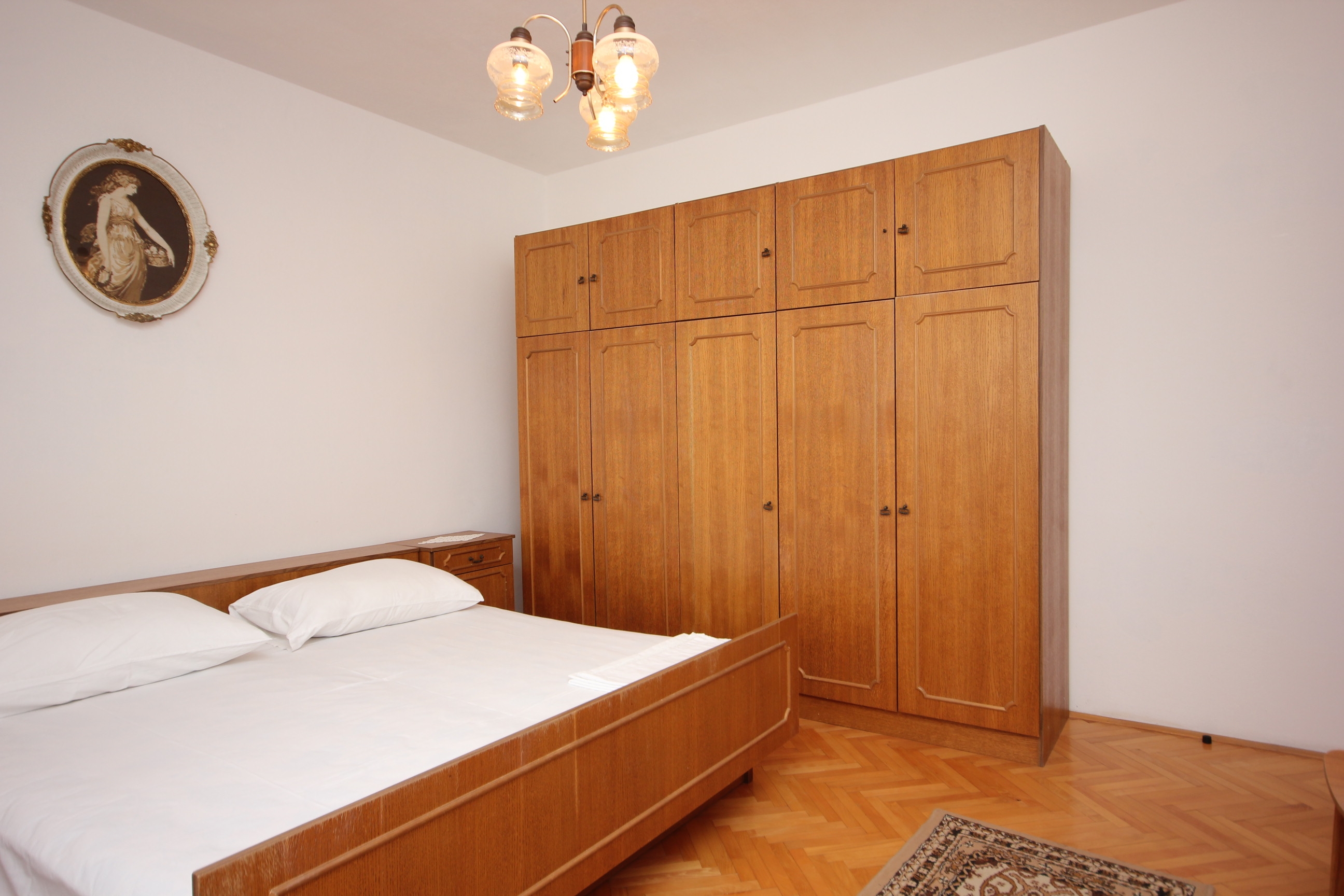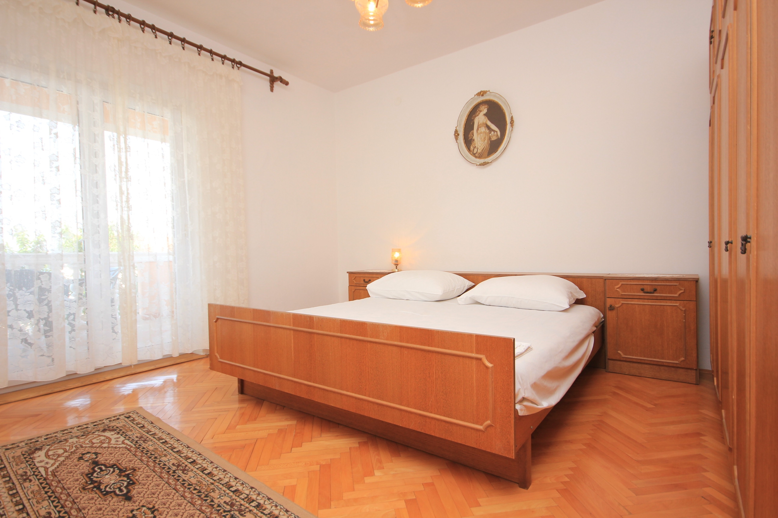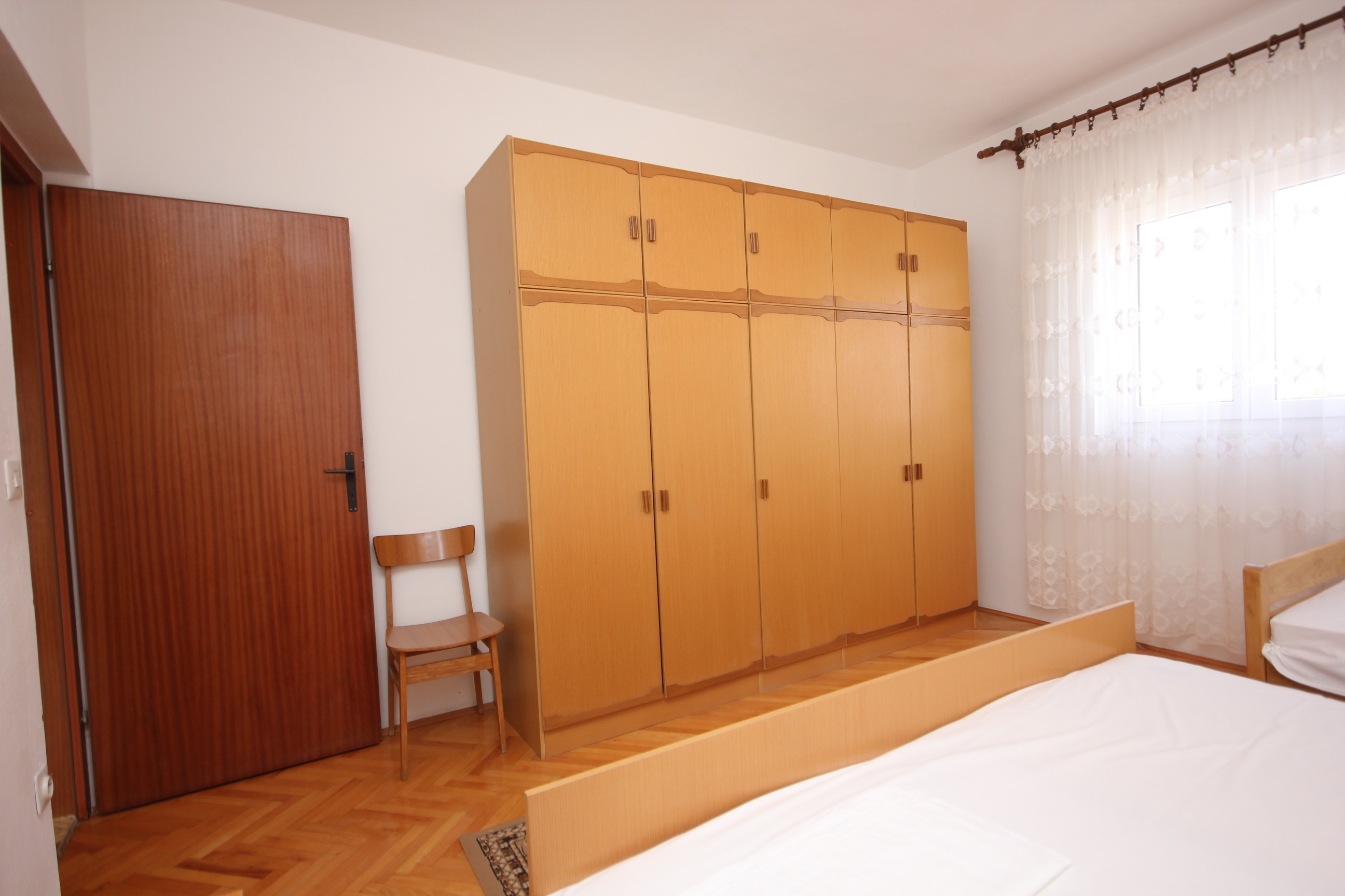 Apartament może przyjąć 5 gości. Łóżka znajdują się w sypialniach, których jest 2, na powierzchni 56m2. Goście mają dostęp do tarasu, by korzystać z ciepłych, letnich wieczorów. Z apartamentu roztacza się widok na morze. Możliwość przygotowywania posiłków poprzez korzystanie ze wspólnego grilla. WLICZONE W CENĘ: taksa pobytowa, sprzątanie końcowe, klimatyzacja, centralne ogrzewanie, parking, internet, pranie bielizny, miejsce do cumowania łodzi. OBOWIĄZKOWE KOSZTY DODATKOWE: dopłata za krótki termin (procent dopłaty w zalezności od liczby noclegów: 30% - 1, 20% - 2, 10% - 3). NIEOBOWIĄZKOWE KOSZTY DODATKOWE: łódź (50,00 € za nocleg). Dostępność dodatkowych usług w rezerwowanym terminie oraz ich cenę (jeśli nie jest podana) należy sprawdzić wcześniej. Za dodatowe usługi, które nie zostały uwzględnione w kalkulacji ceny, płaci się bezpośrednio właścicielowi obiektu, pod warunkiem śe gość korzysta z tych usług.