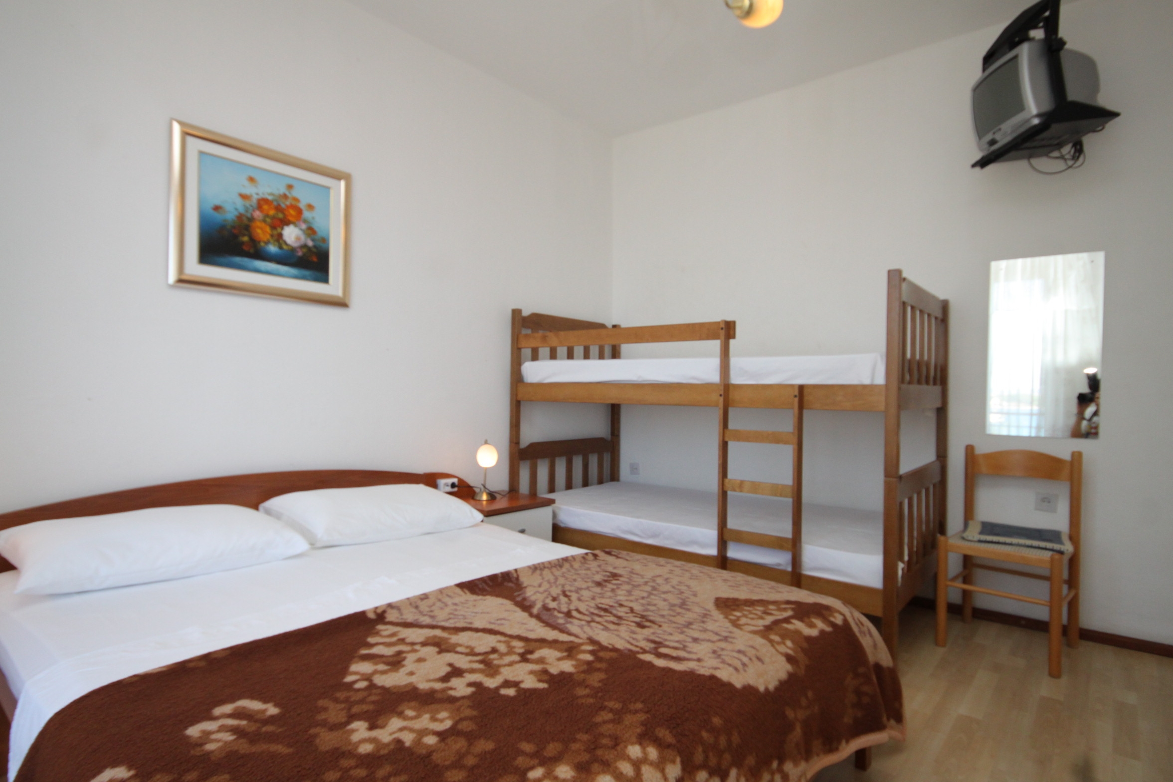 Pokój może przyjąć 2 gości. Łóżka znajdują się w sypialniach, których jest 1, na powierzchni 17m2. Goście mają dostęp do balkonu, by korzystać z ciepłych, letnich wieczorów. Z pokoju roztacza się widok na morze. Rezerwowana kwatera to pokój z własną łazienką, bez możliwości korzystania z kuchni. WLICZONE W CENĘ: taksa pobytowa, sprzątanie końcowe, klimatyzacja, parking, internet, łóżeczko dziecięce, suszarka do włosów. OBOWIĄZKOWE KOSZTY DODATKOWE: dopłata za krótki termin (procent dopłaty w zalezności od liczby noclegów: 30% - 1, 20% - 2, 10% - 3). NIEOBOWIĄZKOWE KOSZTY DODATKOWE: pranie bielizny (2,00 € pranie). Dostępność dodatkowych usług w rezerwowanym terminie oraz ich cenę (jeśli nie jest podana) należy sprawdzić wcześniej. Za dodatowe usługi, które nie zostały uwzględnione w kalkulacji ceny, płaci się bezpośrednio właścicielowi obiektu, pod warunkiem śe gość korzysta z tych usług. Zniżki od ceny podstawowej: bezpłatny dzień 14=13 (przy pobycie, trwającym co najmniej 14 dni, otrzymujecie jeden bezpłatny dzień na pobyt do 31.12.2026).