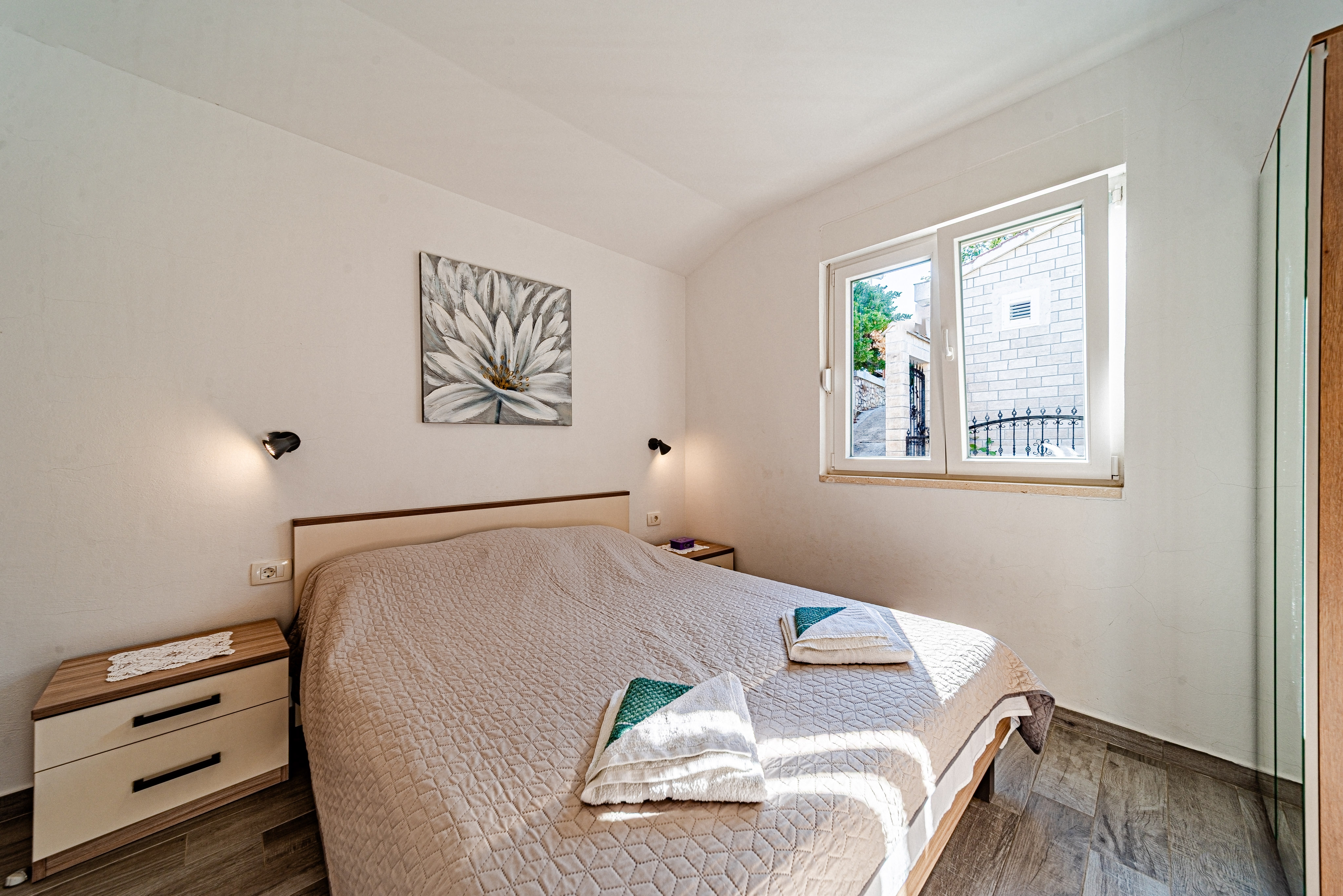Obiekt 24805 w miejscowości Borje, Pelješac - Południowa Dalmacja jest oddalony 150 m od morza. Plaża najbliższa obiektowi jest żwirowa. Ten obiekt znajduje się w kategorii "Obiekty na spokojny wypoczynek". Ponieważ w obiekcie nie ma innych apartamentów i pokojów, w czasie swoich wakacji będą Państwo jedynymi gośćmi w obiekcie. Gospodarze nie będą przebywać w obiekcie w czasie Państwa pobytu. Właściciel nie ma obowiązku przyjąć dodatkowych niezgłoszonych osób ani zwierząt domowych, dlatego też trzeba je wcześniej zgłosić.ZAWARTOŚĆ Teren wokół domu (Uporządkowane), Podwórko (20m2, Miejsce do siedzenia), WiFi Internet, Suszarka do włosów, Żelazko LOKALIZACJA I DOSTĘP Obiekt nie znajduje się przy drodze Pomiędzy obiektem i plażą znajduje się lokalna droga Możliwość dojazdu samochodem: Tak, Wąska ulica: 50 m Obiekt znajduje się w relatywnie cichej okolicy Obiekt jest częściowo otoczony zielenią ODLEGŁOŚCI Morze: 150 m Plaża: 400 m Centrum: 9 km Sklep: 7 km Pierwsza pomoc: 9 km Apteka: 8,5 km Bankomat: 5 km Informacje turystyczne: 8,5 km Stacja benzynowa: 7 km Targ: 9 km