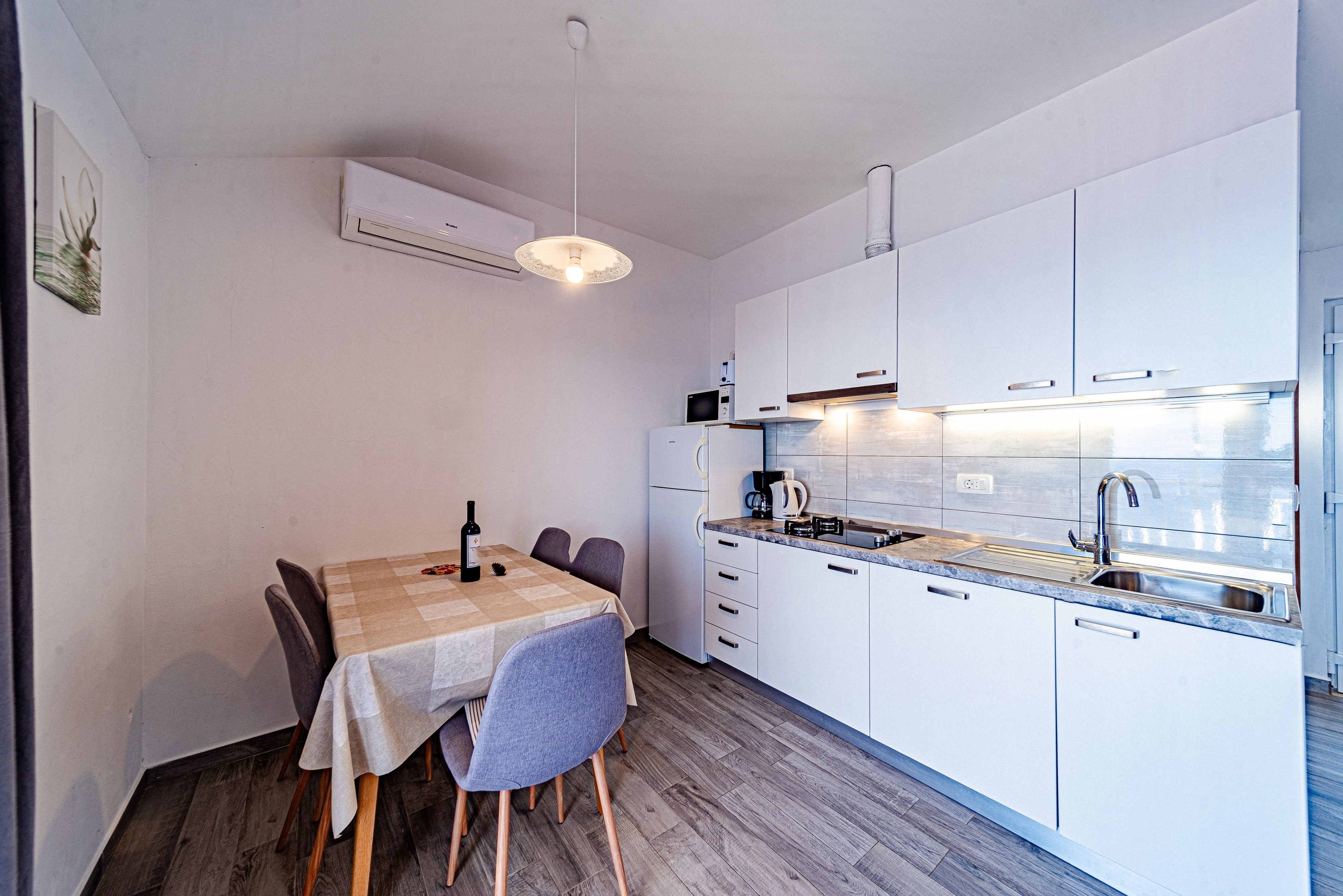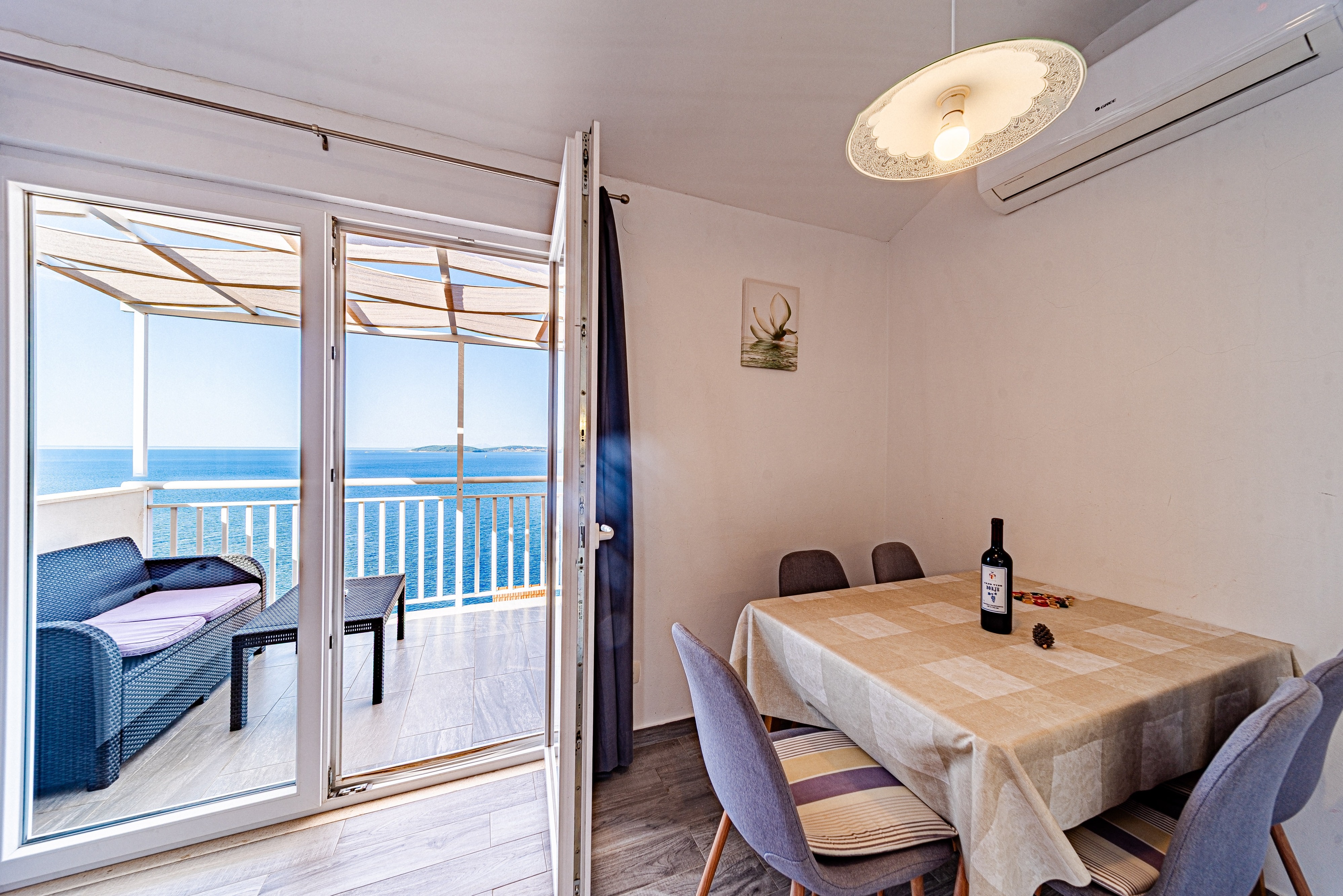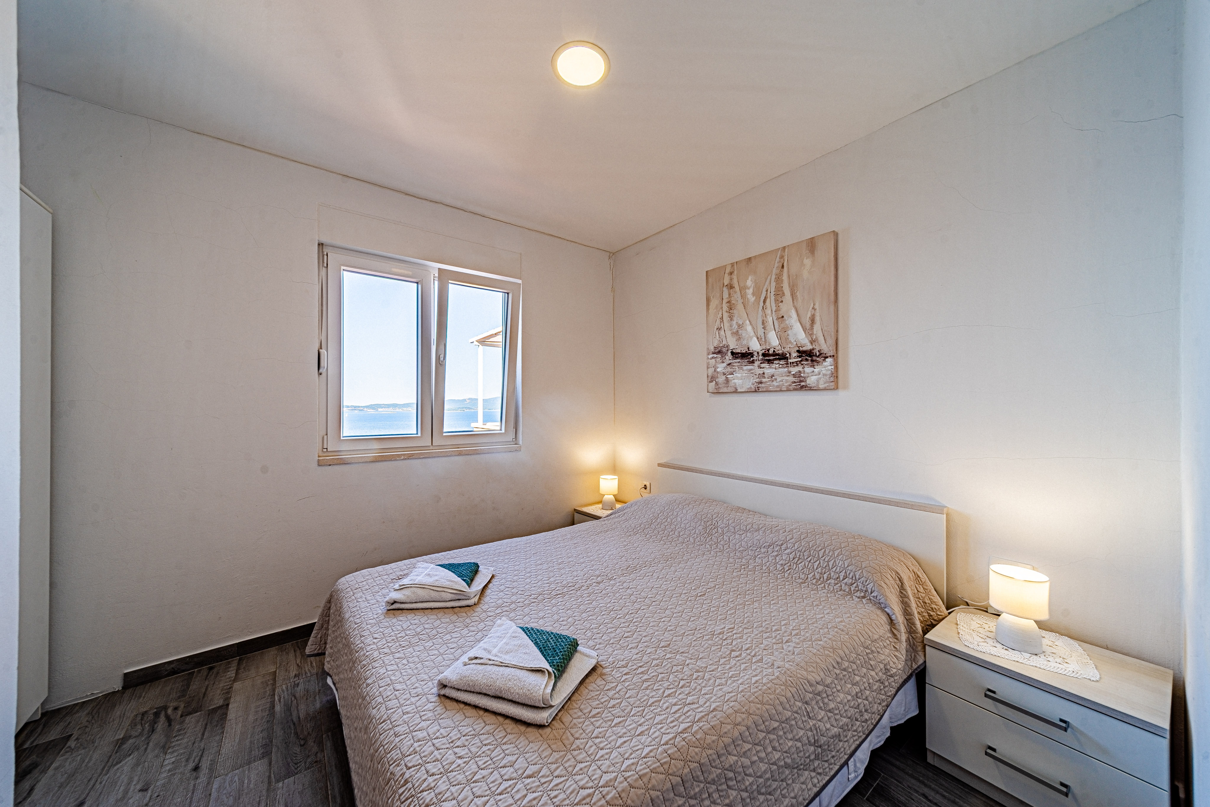 Dom może przyjąć 4 gości. Łóżka znajdują się w sypialniach, których jest 2, na powierzchni 48m2. Goście mają dostęp do tarasu, by korzystać z ciepłych, letnich wieczorów. Z domu wakacyjnego roztacza się widok na morze. Grill jest dostępny tylko do użytku gości z tej kwatery. WLICZONE W CENĘ: taksa pobytowa, sprzątanie końcowe, klimatyzacja, internet, żelazko, suszarka do włosów. Dostępność dodatkowych usług w rezerwowanym terminie oraz ich cenę (jeśli nie jest podana) należy sprawdzić wcześniej. Za dodatowe usługi, które nie zostały uwzględnione w kalkulacji ceny, płaci się bezpośrednio właścicielowi obiektu, pod warunkiem śe gość korzysta z tych usług.
