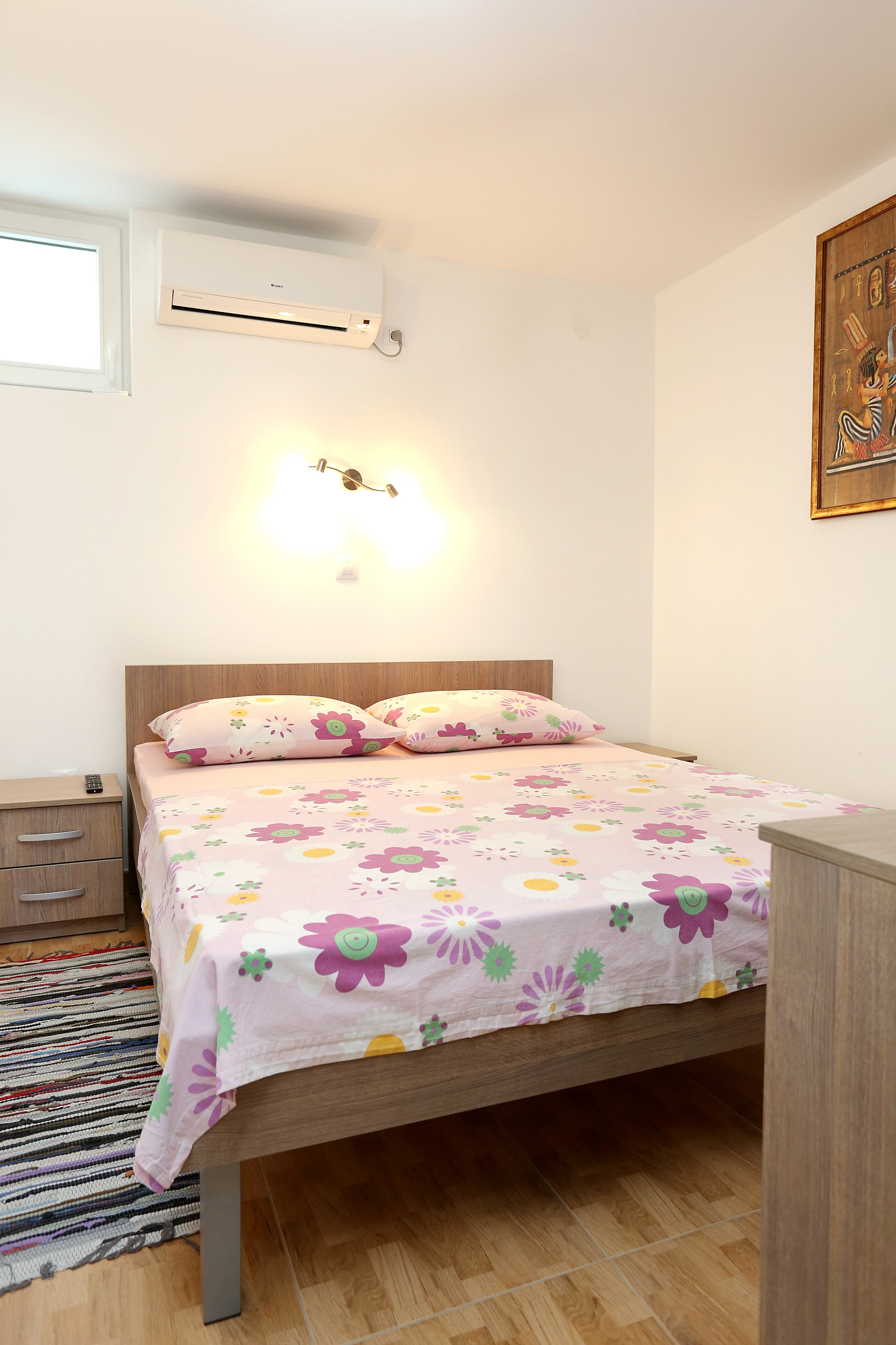 Apartament może przyjąć 2 gości. Łóżka znajdują się w sypialniach, których jest 1, na powierzchni 18m2. Z apartamentu roztacza się widok na morze. Możliwość przygotowywania posiłków poprzez korzystanie ze wspólnego grilla. Rezerwowana kwatera ma taras wspólny z inną kwaterą. WLICZONE W CENĘ: taksa pobytowa, sprzątanie końcowe, klimatyzacja, parking, internet, miejsce do cumowania łodzi, żelazko, deska do prasowania, suszarka do włosów, leżaki. OBOWIĄZKOWE KOSZTY DODATKOWE: dopłata za krótki termin (procent dopłaty w zalezności od liczby noclegów: 30% - 1, 20% - 2, 10% - 3). Dostępność dodatkowych usług w rezerwowanym terminie oraz ich cenę (jeśli nie jest podana) należy sprawdzić wcześniej. Za dodatowe usługi, które nie zostały uwzględnione w kalkulacji ceny, płaci się bezpośrednio właścicielowi obiektu, pod warunkiem śe gość korzysta z tych usług.