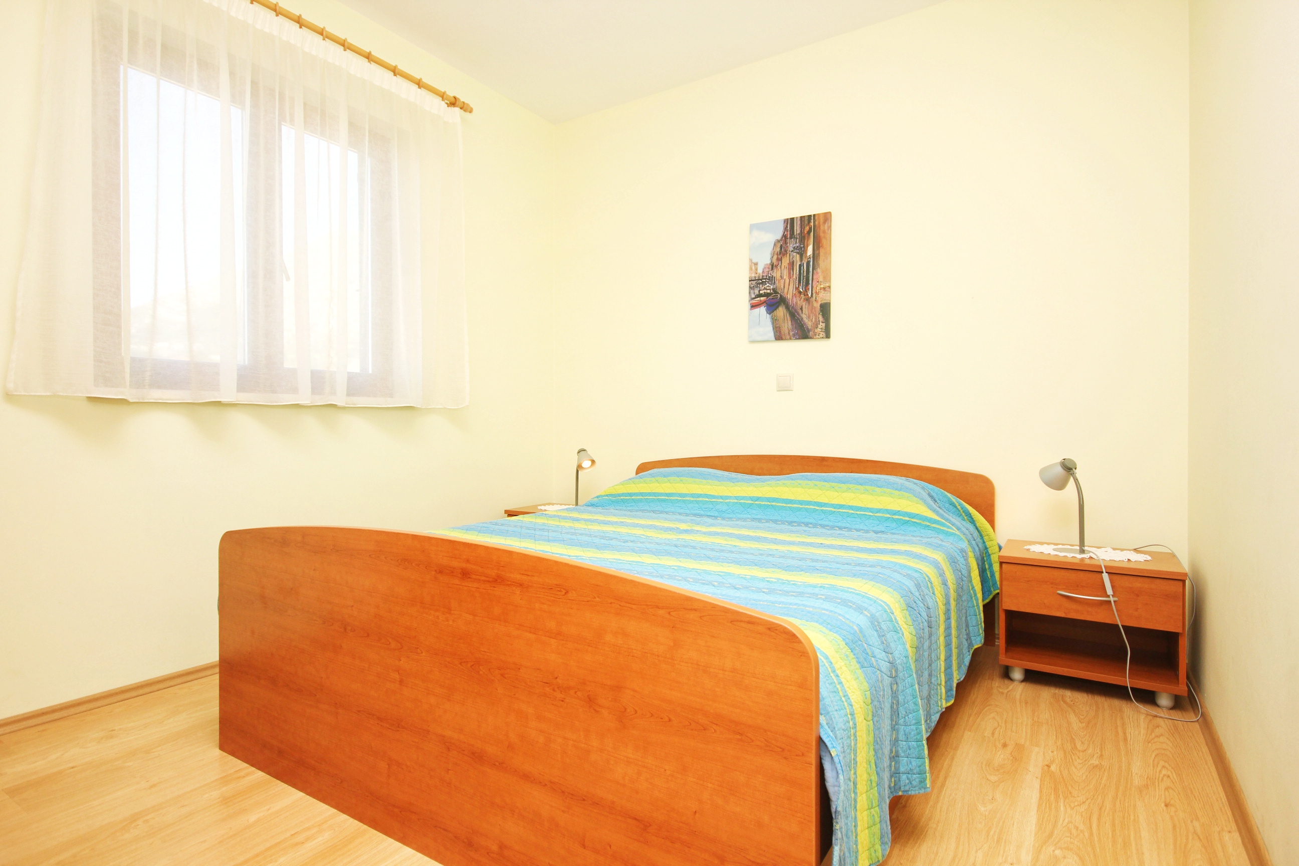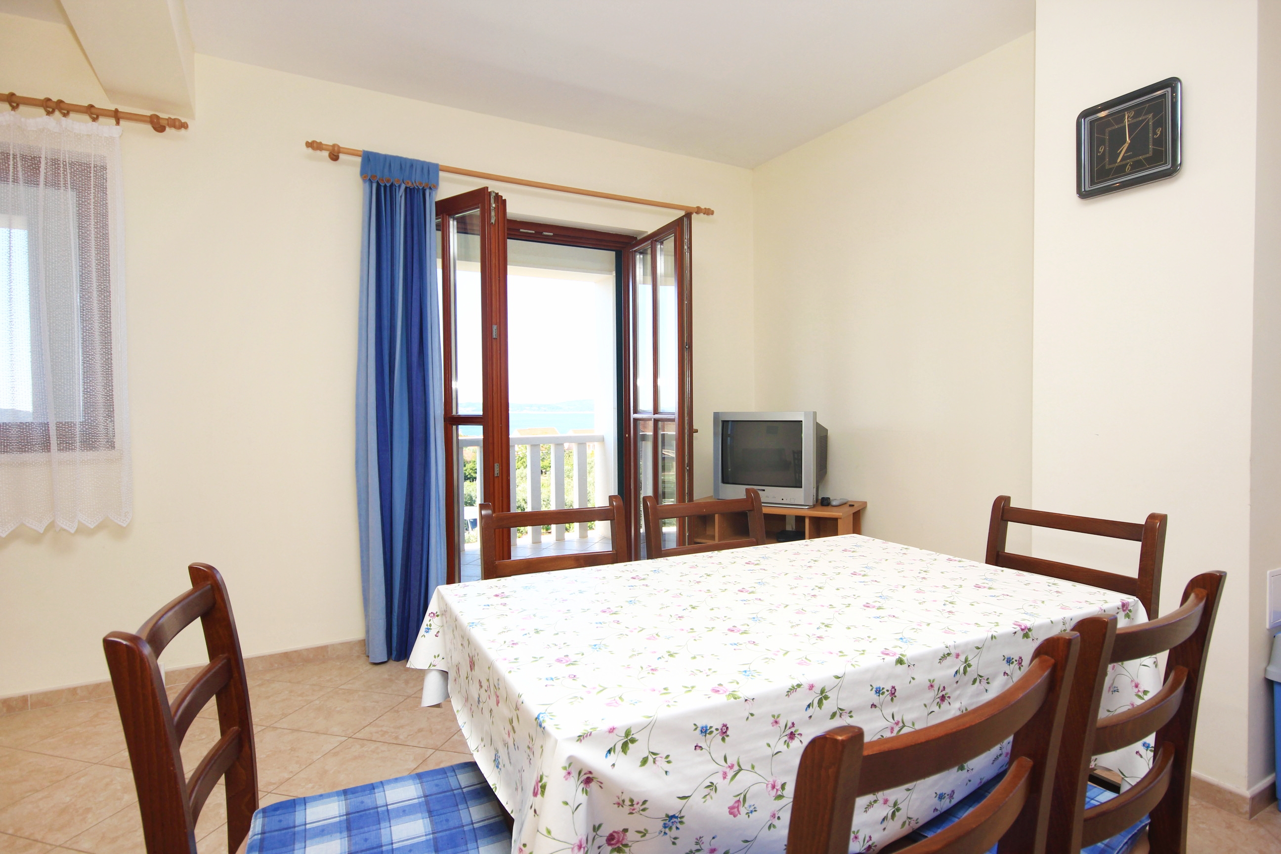 Apartament może przyjąć 5 gości. Łóżka znajdują się w sypialniach, których jest 2, oraz w pokoju dziennym, na powierzchni 58m2. Goście mają dostęp do tarasu, by korzystać z ciepłych, letnich wieczorów. Z apartamentu roztacza się widok na morze. Możliwość przygotowywania posiłków poprzez korzystanie ze wspólnego grilla. WLICZONE W CENĘ: taksa pobytowa, sprzątanie końcowe, klimatyzacja, parking, internet, żelazko, deska do prasowania. OBOWIĄZKOWE KOSZTY DODATKOWE: dopłata za krótki termin (procent dopłaty w zalezności od liczby noclegów: 30% - 1, 20% - 2, 10% - 3). Dostępność dodatkowych usług w rezerwowanym terminie oraz ich cenę (jeśli nie jest podana) należy sprawdzić wcześniej. Za dodatowe usługi, które nie zostały uwzględnione w kalkulacji ceny, płaci się bezpośrednio właścicielowi obiektu, pod warunkiem śe gość korzysta z tych usług.