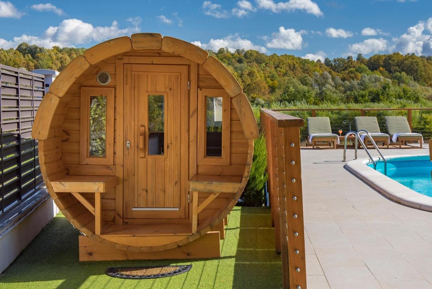 Luksuzna drvena kuća Babylonica sa bazenom,teniskim terenom i wellnesom