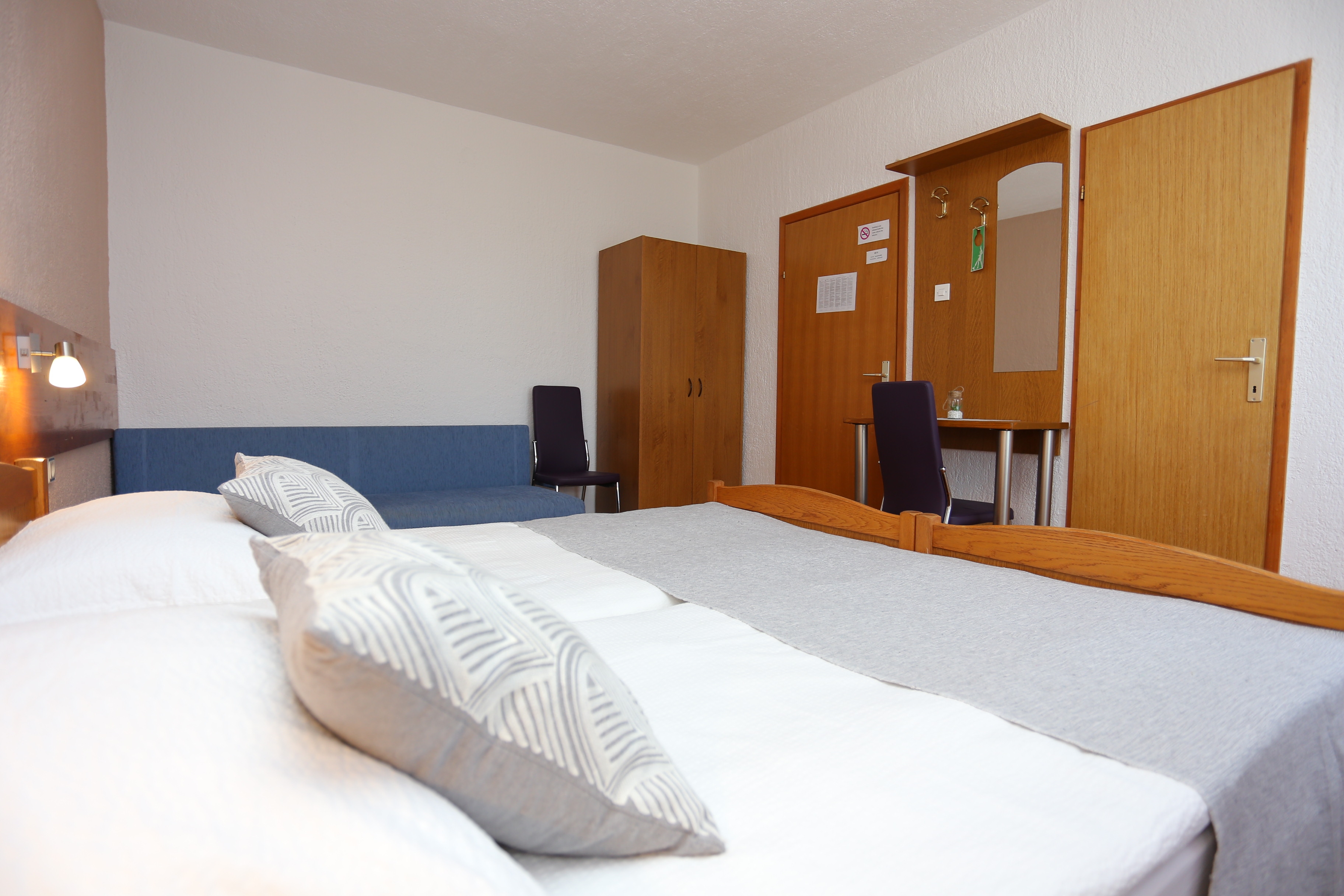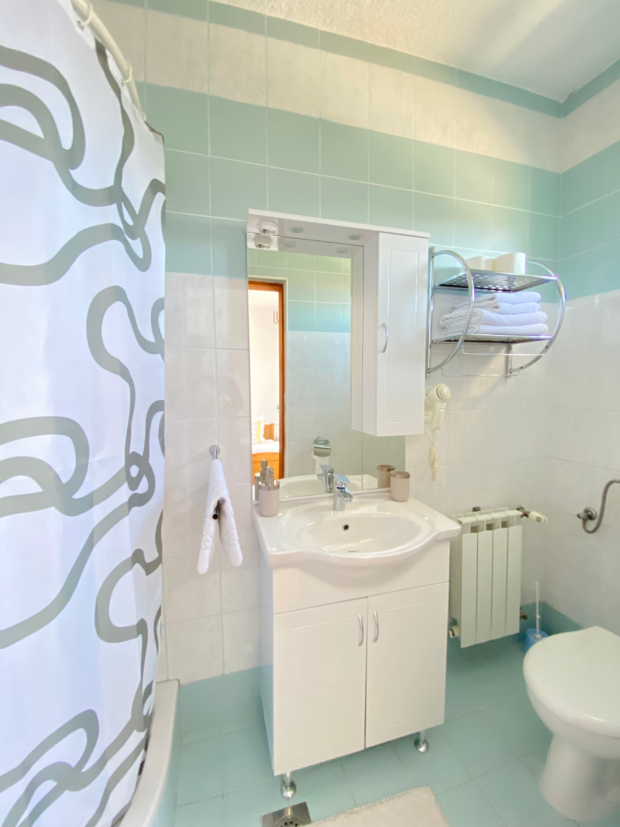 Pokój może przyjąć 2 gości. Łóżka znajdują się w sypialniach, których jest 1, na powierzchni 19m2. Goście mają dostęp do balkonu, by korzystać z ciepłych, letnich wieczorów. W kwaterze dozwolony jest pobyt zwierzęcia domowego, za dopłatą. Rezerwowana kwatera to pokój z własną łazienką, bez możliwości korzystania z kuchni. WLICZONE W CENĘ: taksa pobytowa, sprzątanie końcowe, klimatyzacja, centralne ogrzewanie, parking, internet, żelazko, deska do prasowania, suszarka do włosów. NIEOBOWIĄZKOWE KOSZTY DODATKOWE: pranie bielizny (5,00 € pranie), zwierzęta domowe (10,00 € za nocleg). Dostępność dodatkowych usług w rezerwowanym terminie oraz ich cenę (jeśli nie jest podana) należy sprawdzić wcześniej. Za dodatowe usługi, które nie zostały uwzględnione w kalkulacji ceny, płaci się bezpośrednio właścicielowi obiektu, pod warunkiem śe gość korzysta z tych usług. Zniżki od ceny podstawowej: bezpłatny dzień 14=13 (przy pobycie, trwającym co najmniej 14 dni, otrzymujecie jeden bezpłatny dzień na pobyt do 31.12.2026).