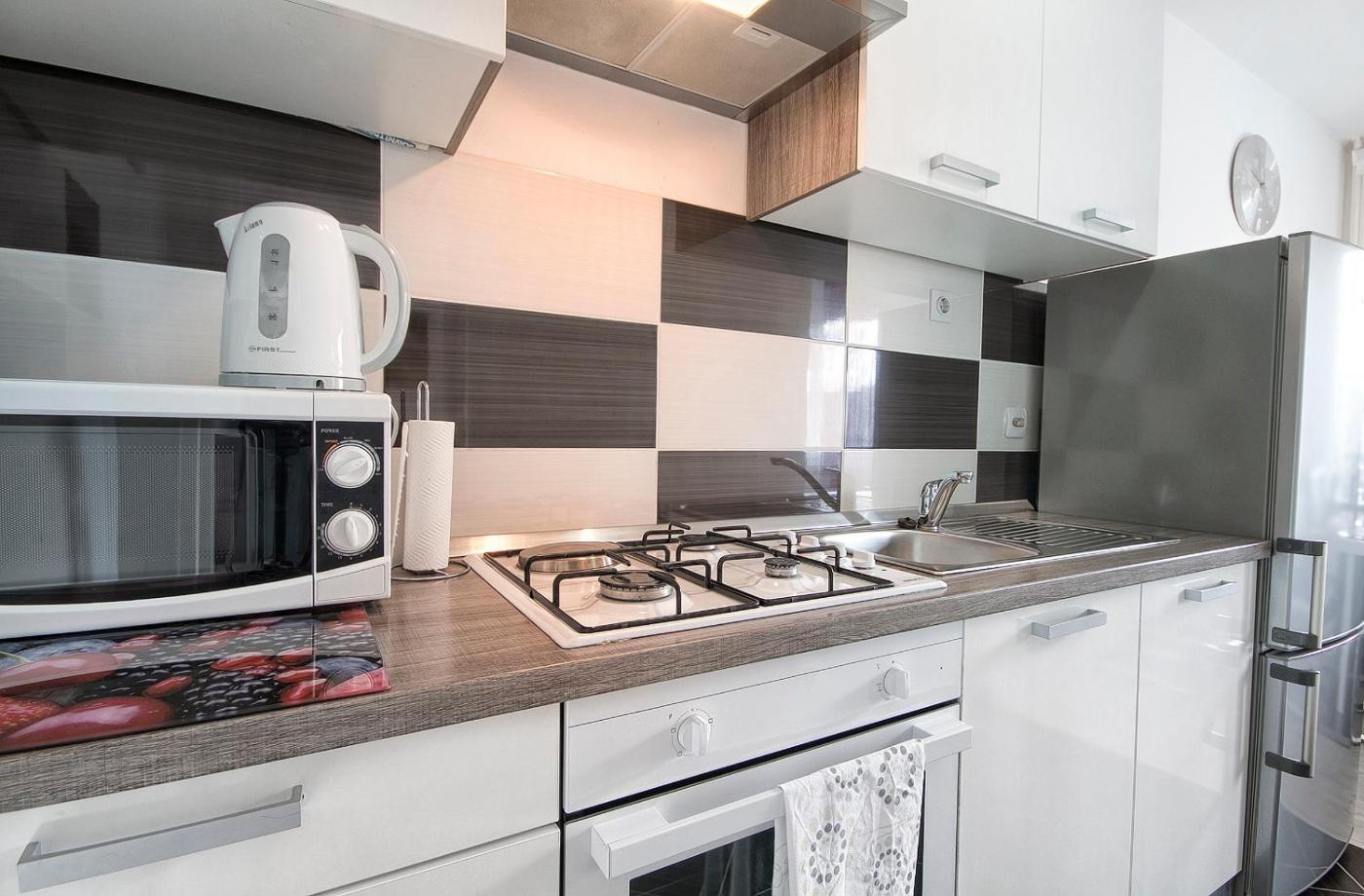 Apartament typu studio. Boasting a private entrance, this air-conditioned apartment features 1 living room, 1 separate bedroom and 1 bathroom with a shower and a hairdryer. Guests can make meals in the kitchen that has a stovetop, a refrigerator, kitchenware and an oven. The apartment features a flat-screen TV with cable channels, a washing machine, soundproof walls, a seating area as well as mountain views. The unit has 2 beds. Apartament - 4 osobowy. Powierzchnia pokoju ok.: 42 mkw.